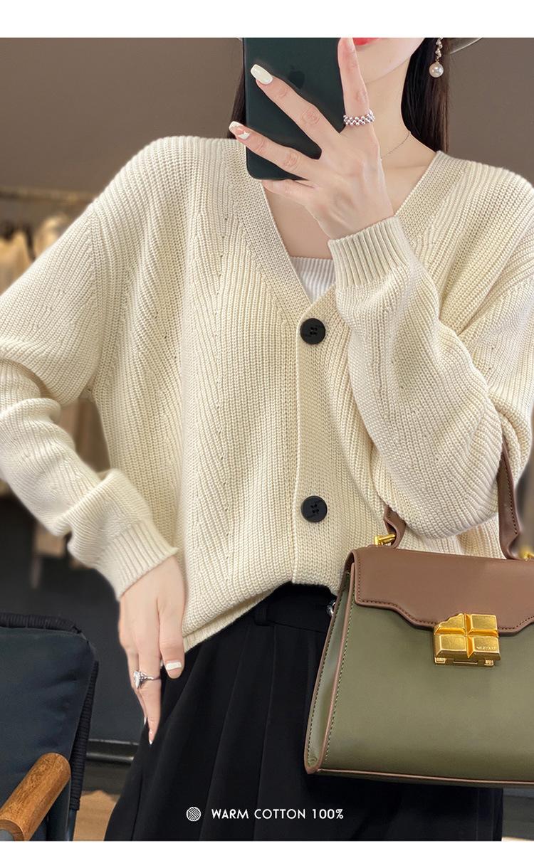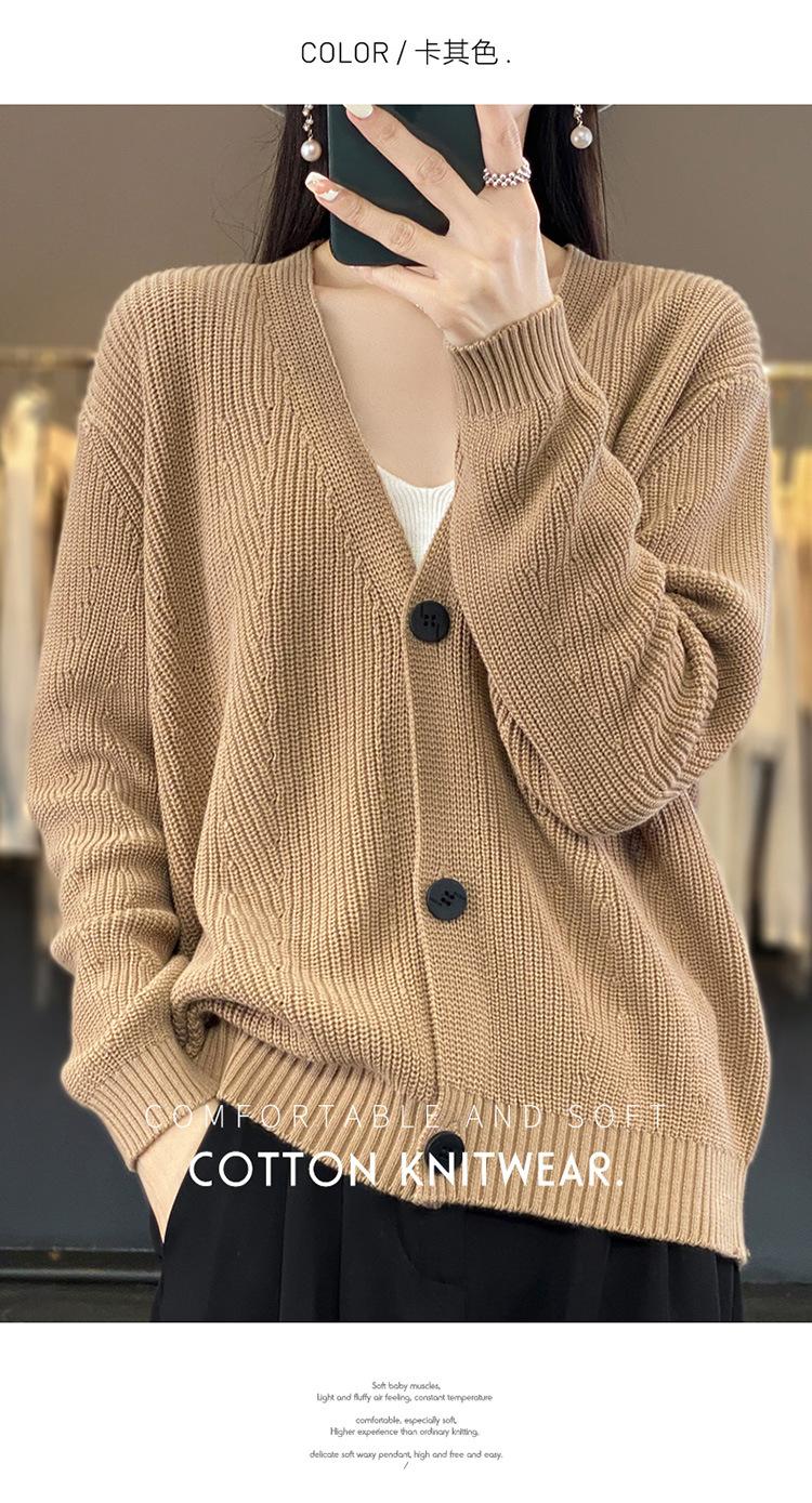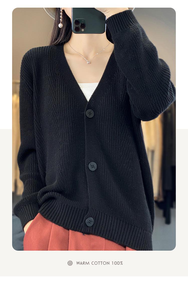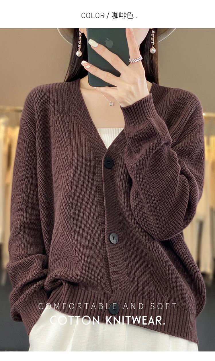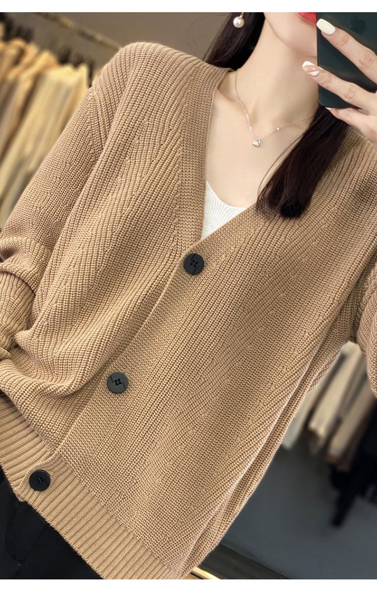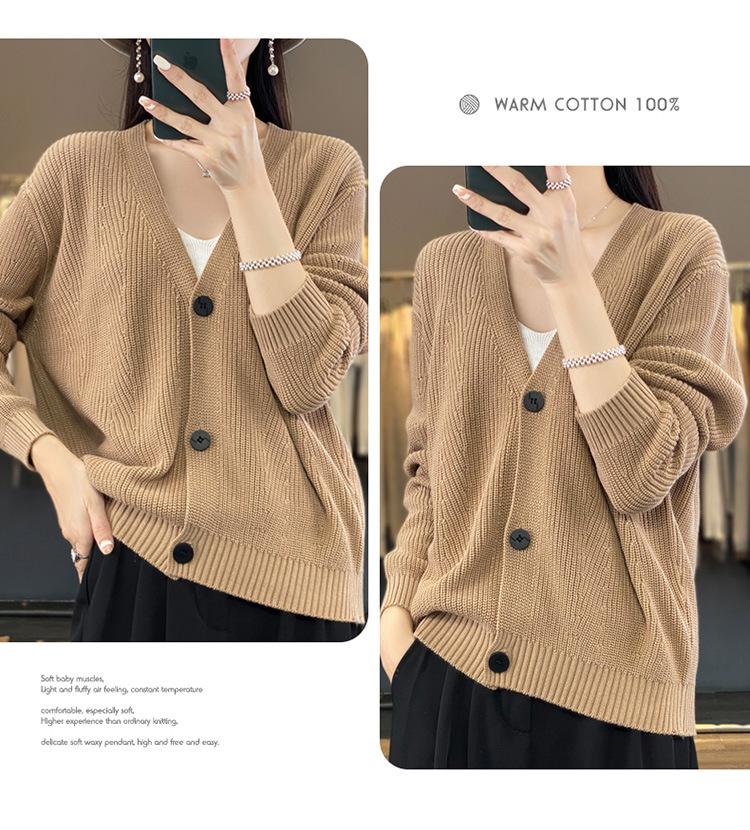 Suéter suave Nuo con cuello en V, cárdigan de punto para mujer, otoño e invierno 2023, nuevo abrigo holgado de hilo de algodón grueso de estilo perezoso