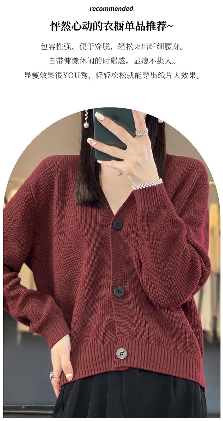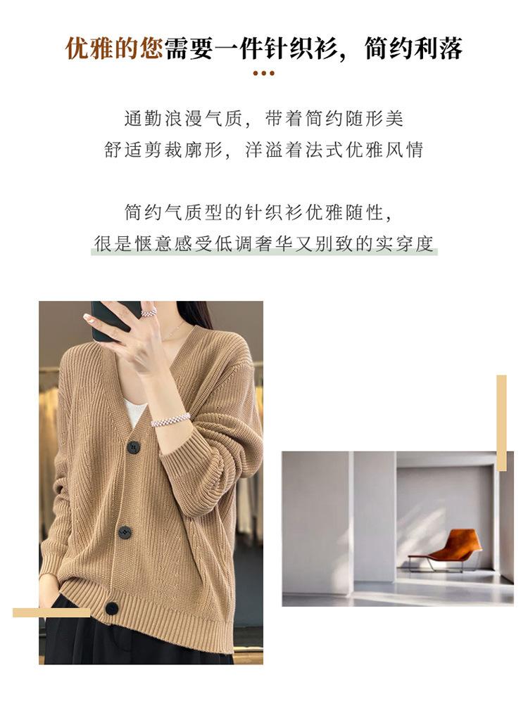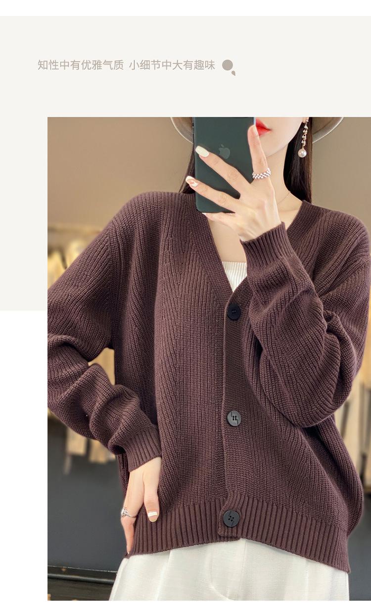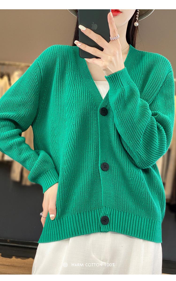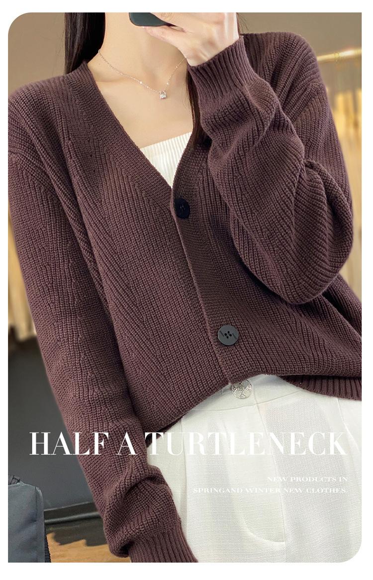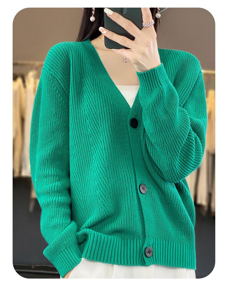 Suéter suave Nuo con cuello en V, cárdigan de punto para mujer, otoño e invierno 2023, nuevo abrigo holgado de hilo de algodón grueso de estilo perezoso