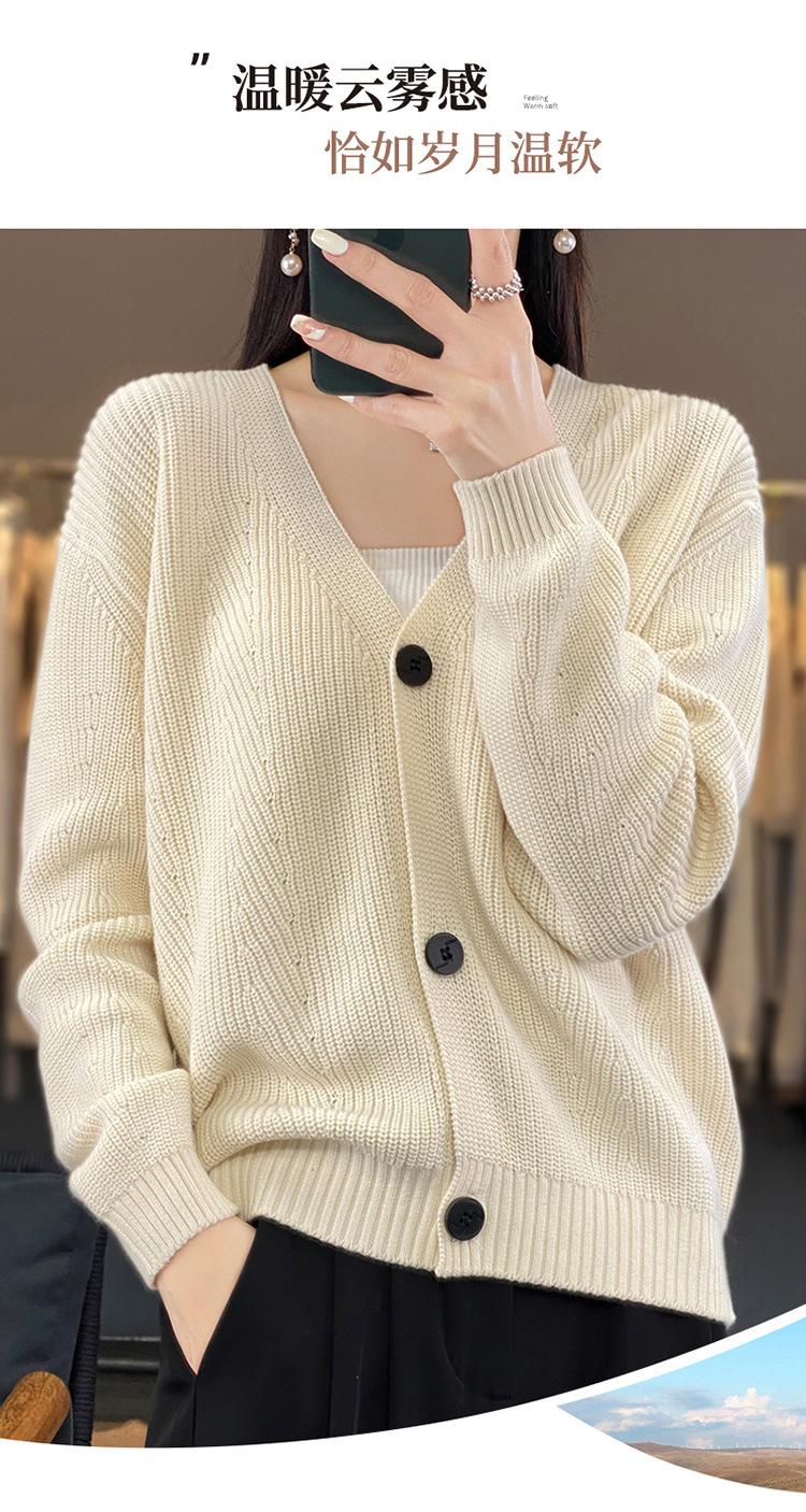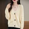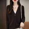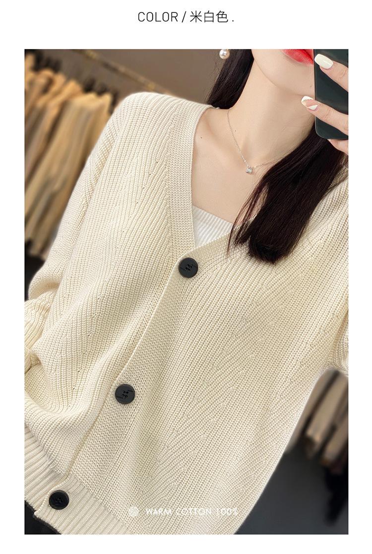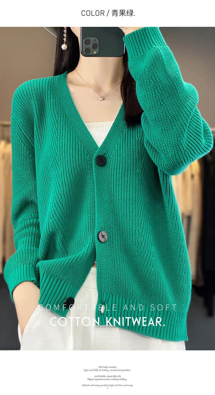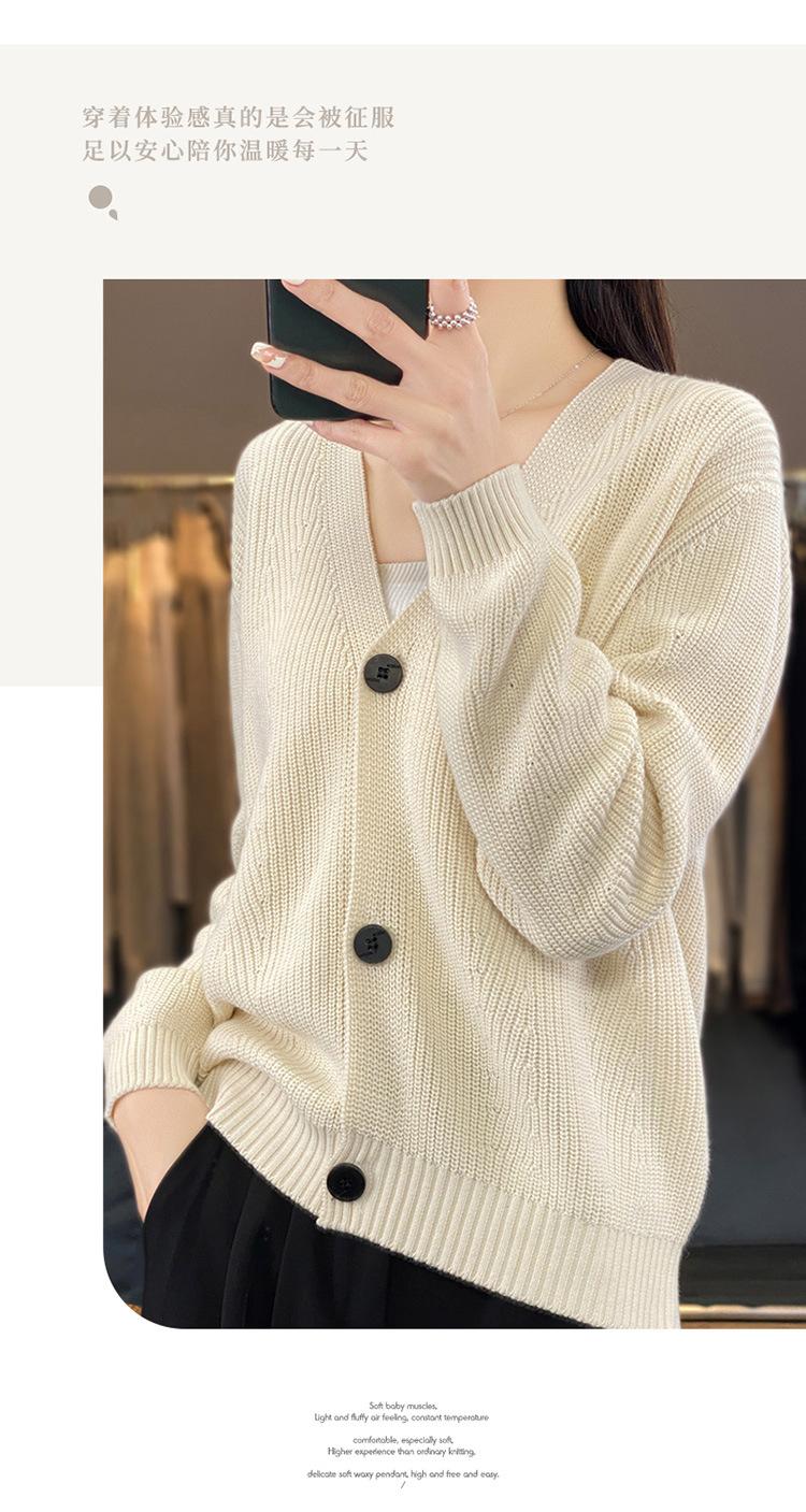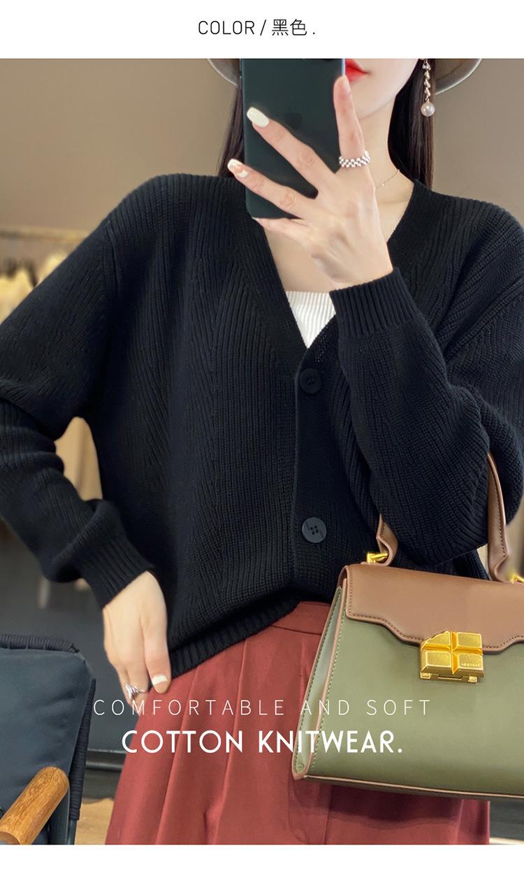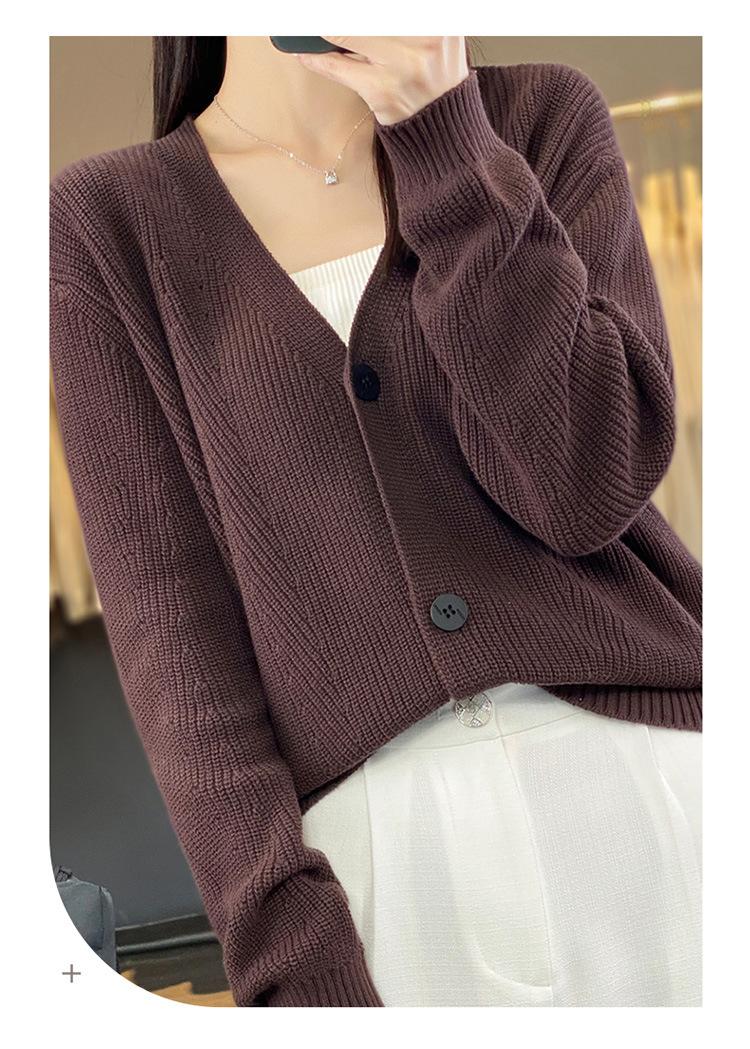 Suéter suave Nuo con cuello en V, cárdigan de punto para mujer, otoño e invierno 2023, nuevo abrigo holgado de hilo de algodón grueso de estilo perezoso