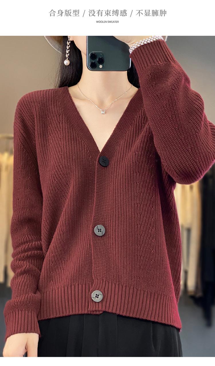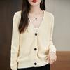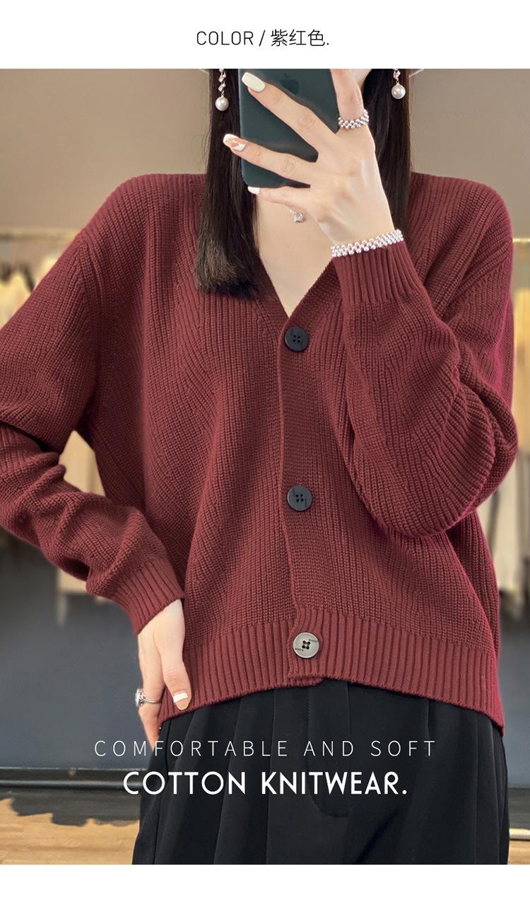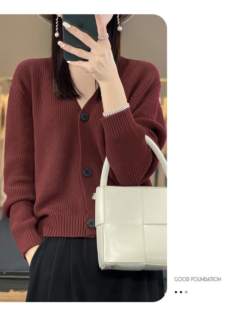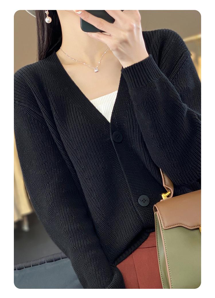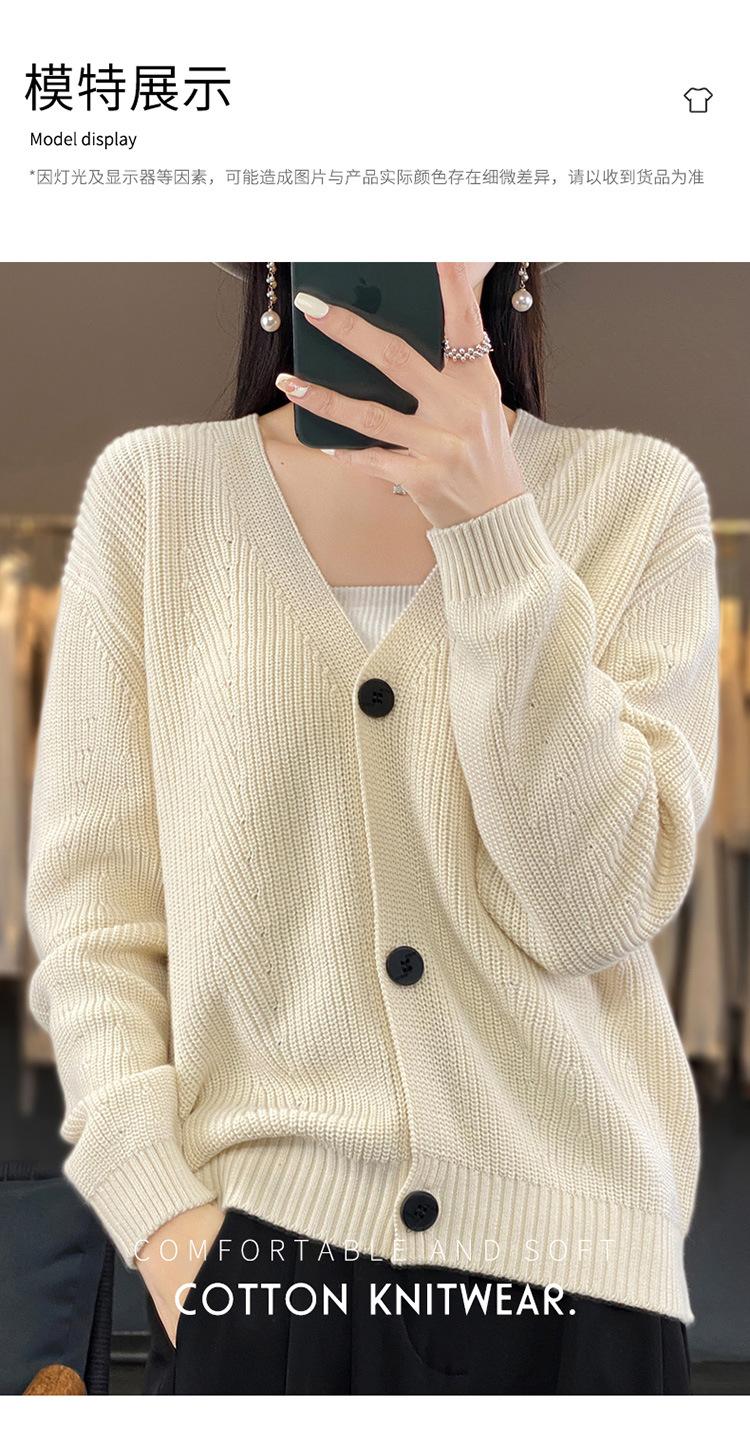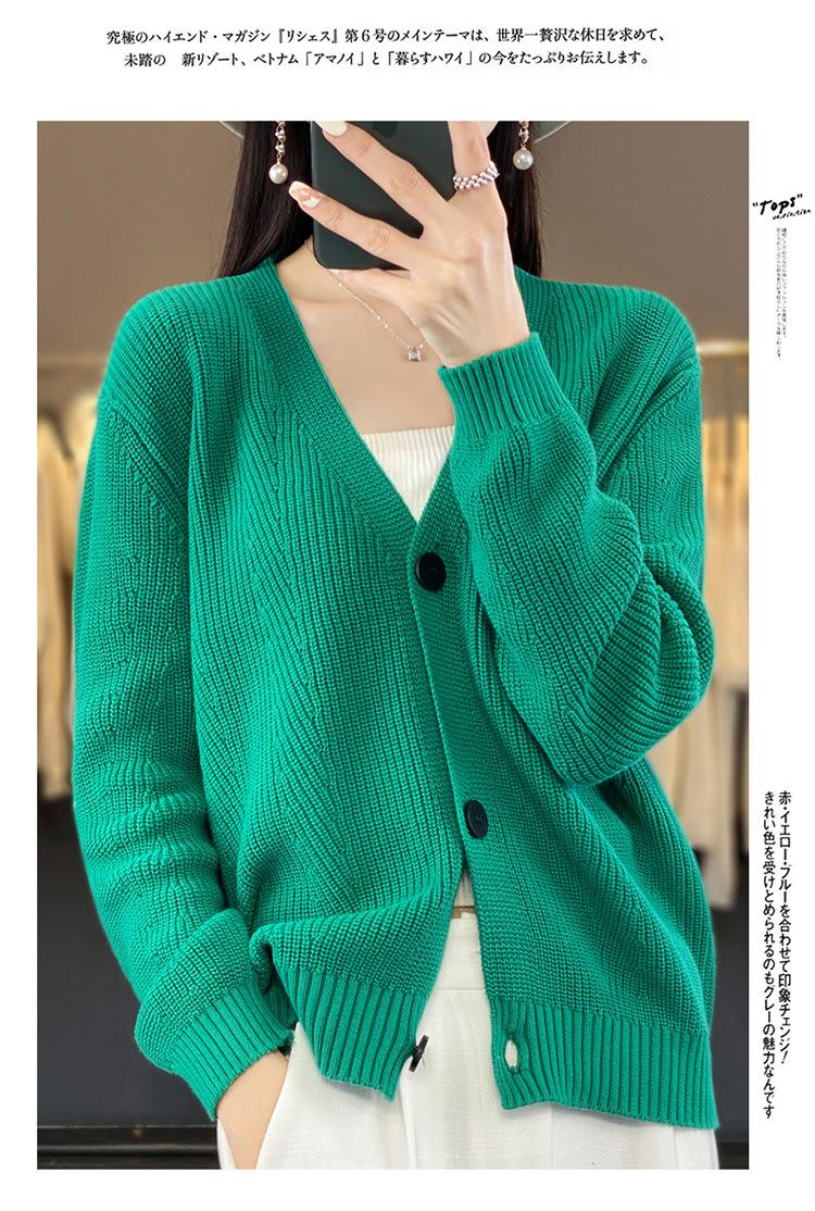 Suéter suave Nuo con cuello en V, cárdigan de punto para mujer, otoño e invierno 2023, nuevo abrigo holgado de hilo de algodón grueso de estilo perezoso