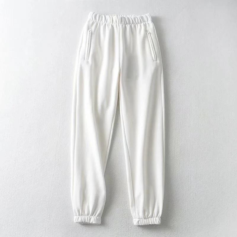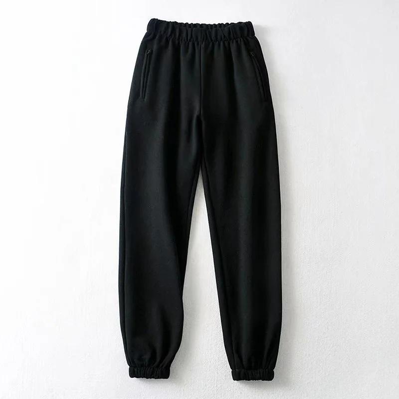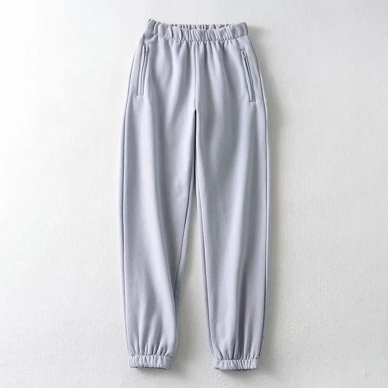 Pantalones Deportivos Grises para Mujer 2020 Otoño e Invierno Nuevos Pantalones Gruesos con Forro Polar Casual Bolsillo Cremallera Pantalones Hallen