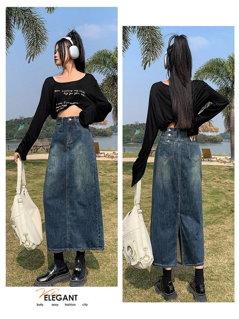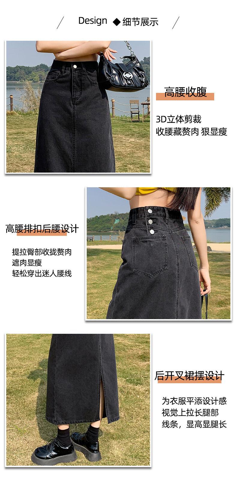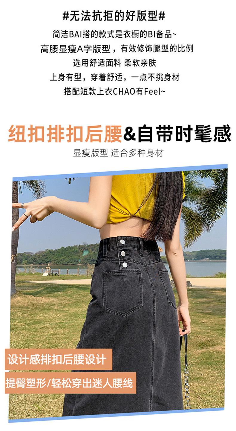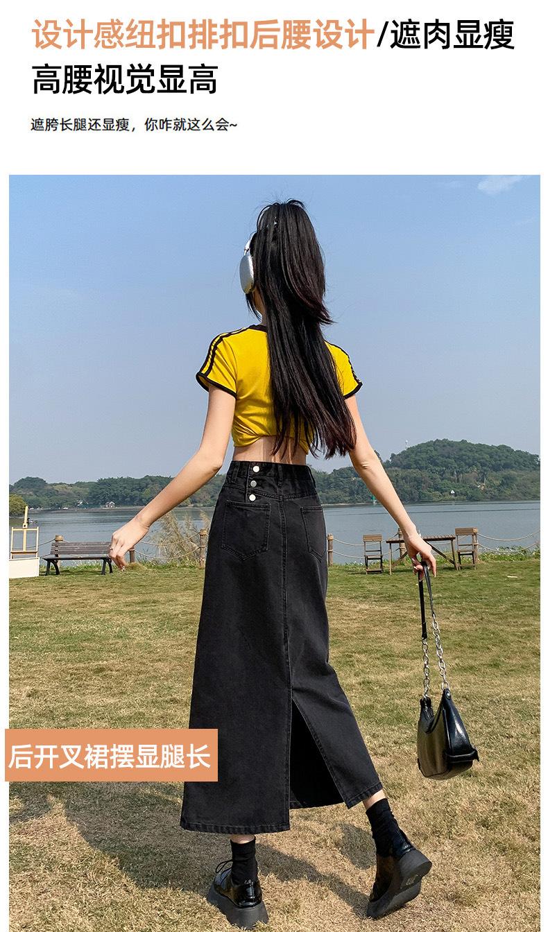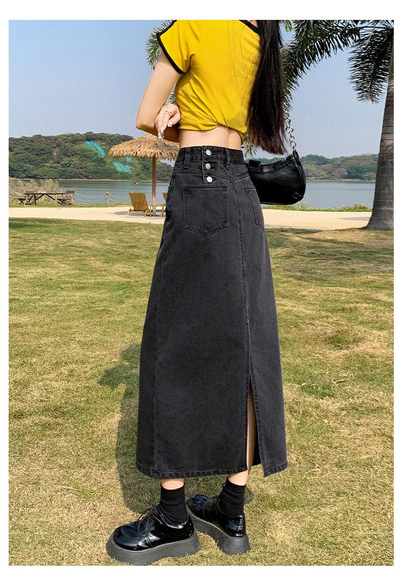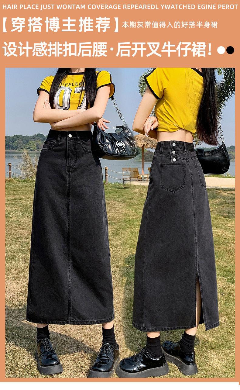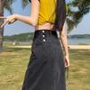 Falda vaquera de cintura alta con botones para mujer, primavera y verano 2024, nueva falda de corte A con abertura de longitud media y caderas adelgazantes.