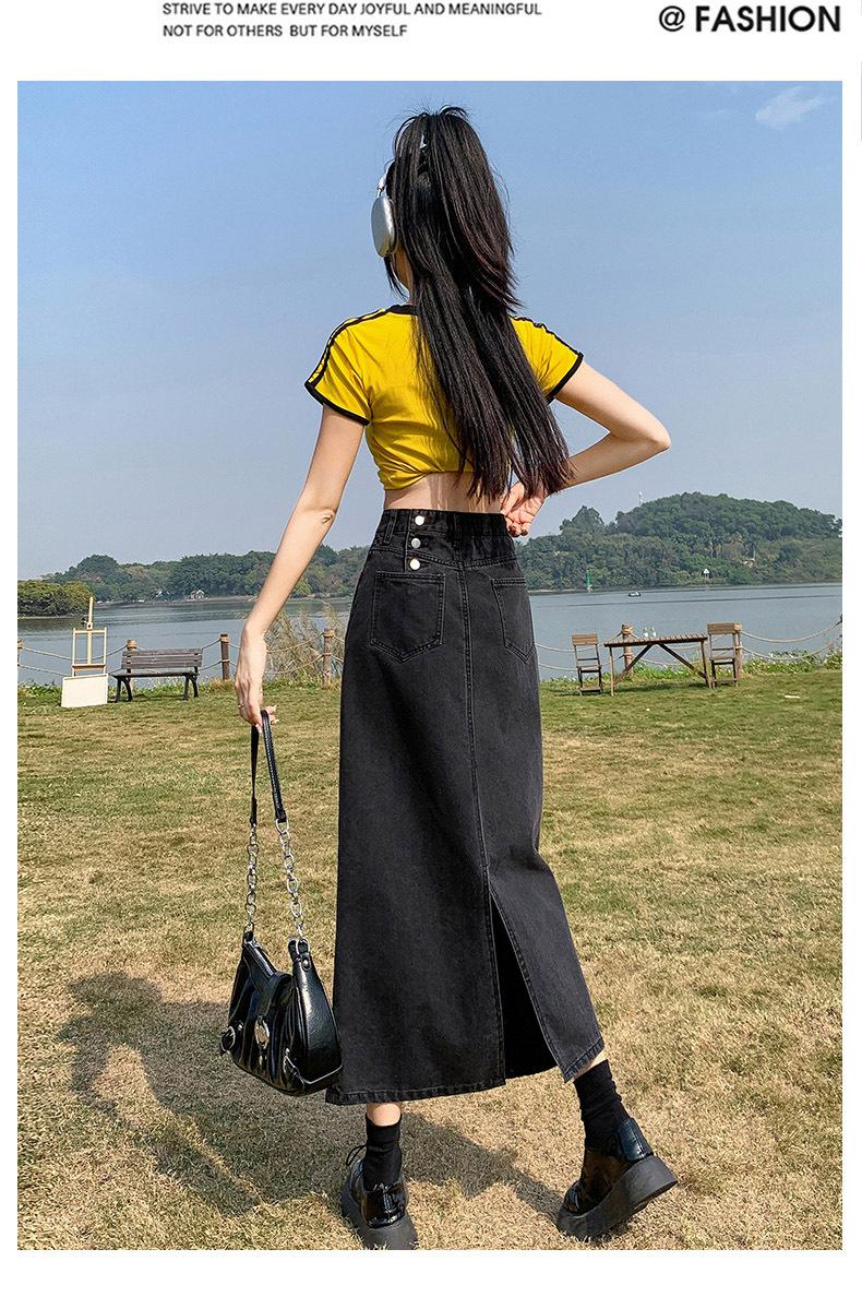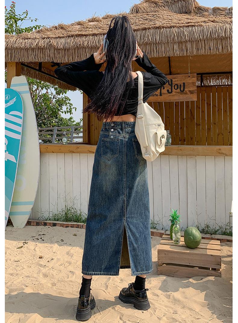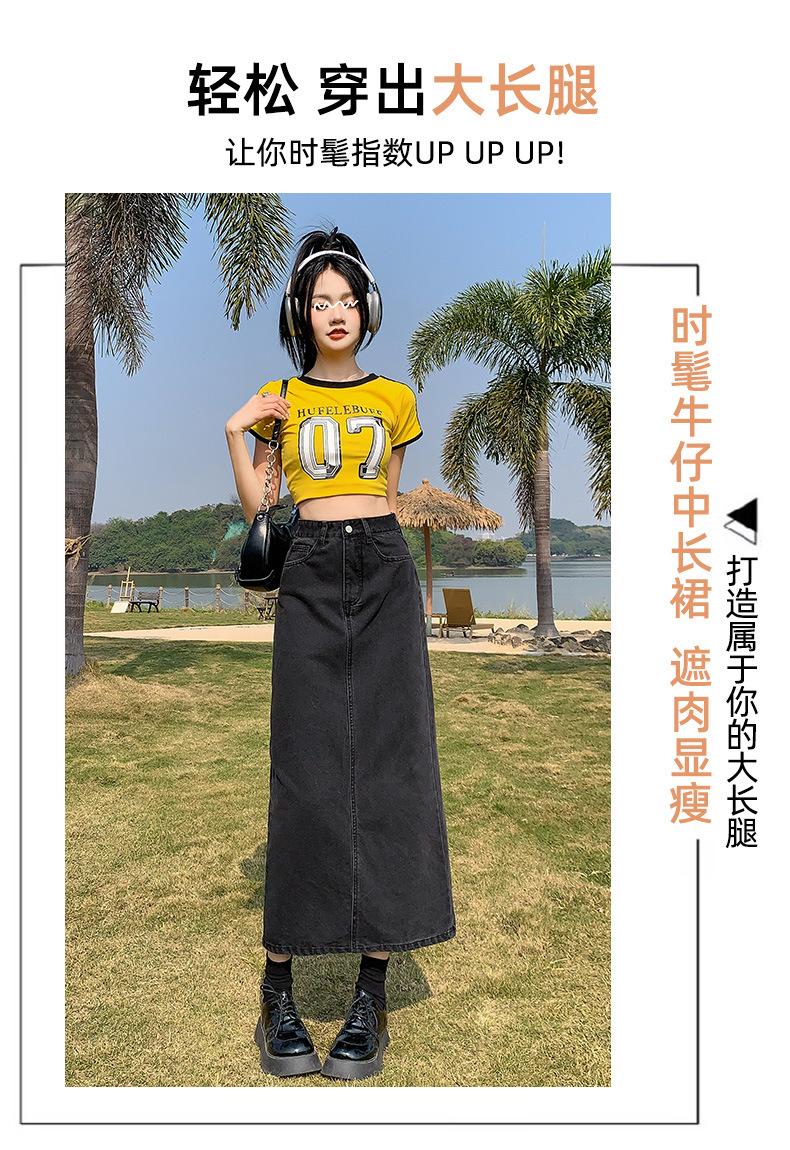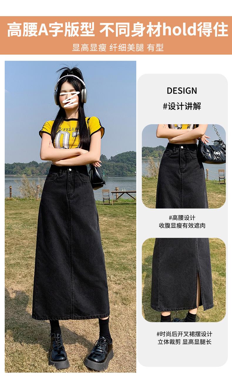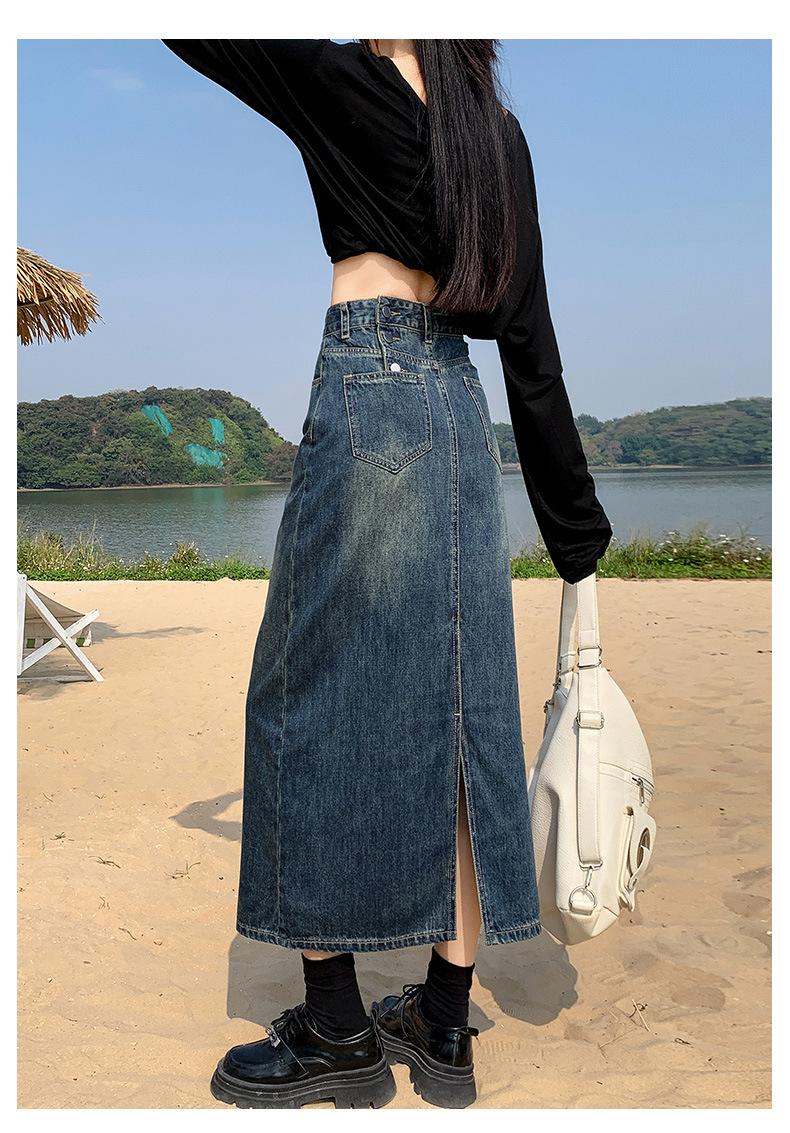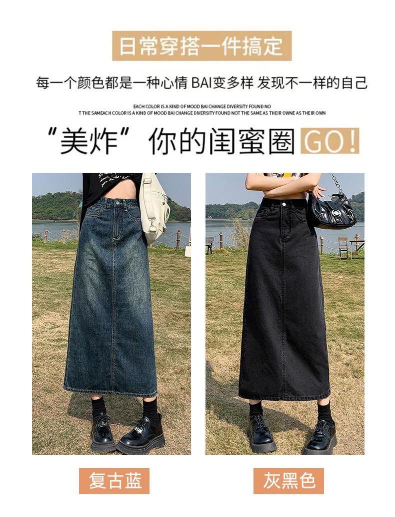 Falda vaquera de cintura alta con botones para mujer, primavera y verano 2024, nueva falda de corte A con abertura de longitud media y caderas adelgazantes.
