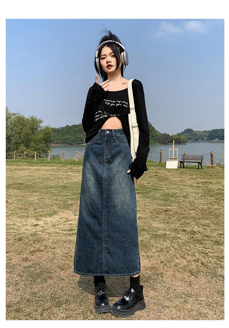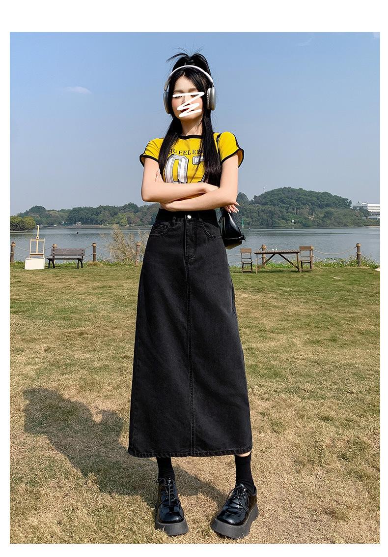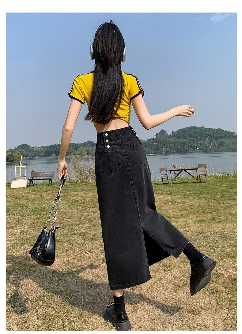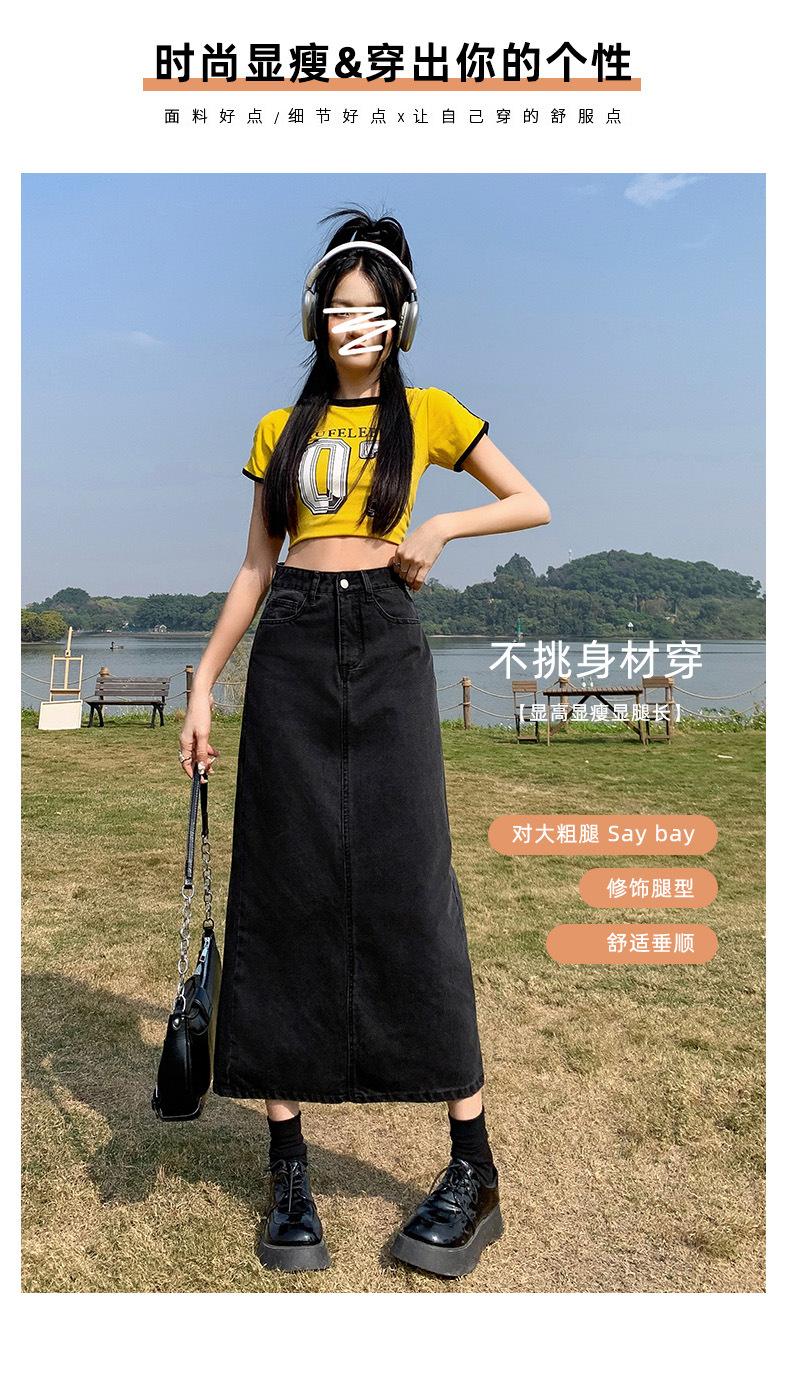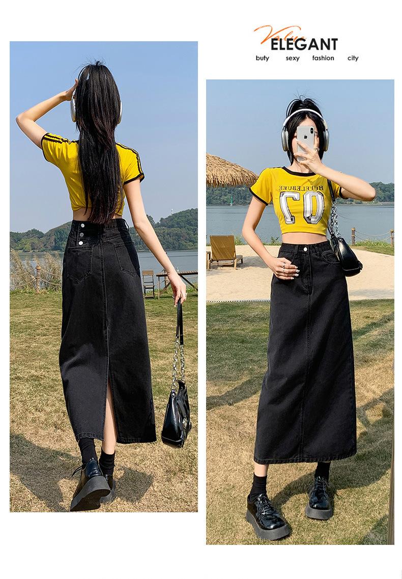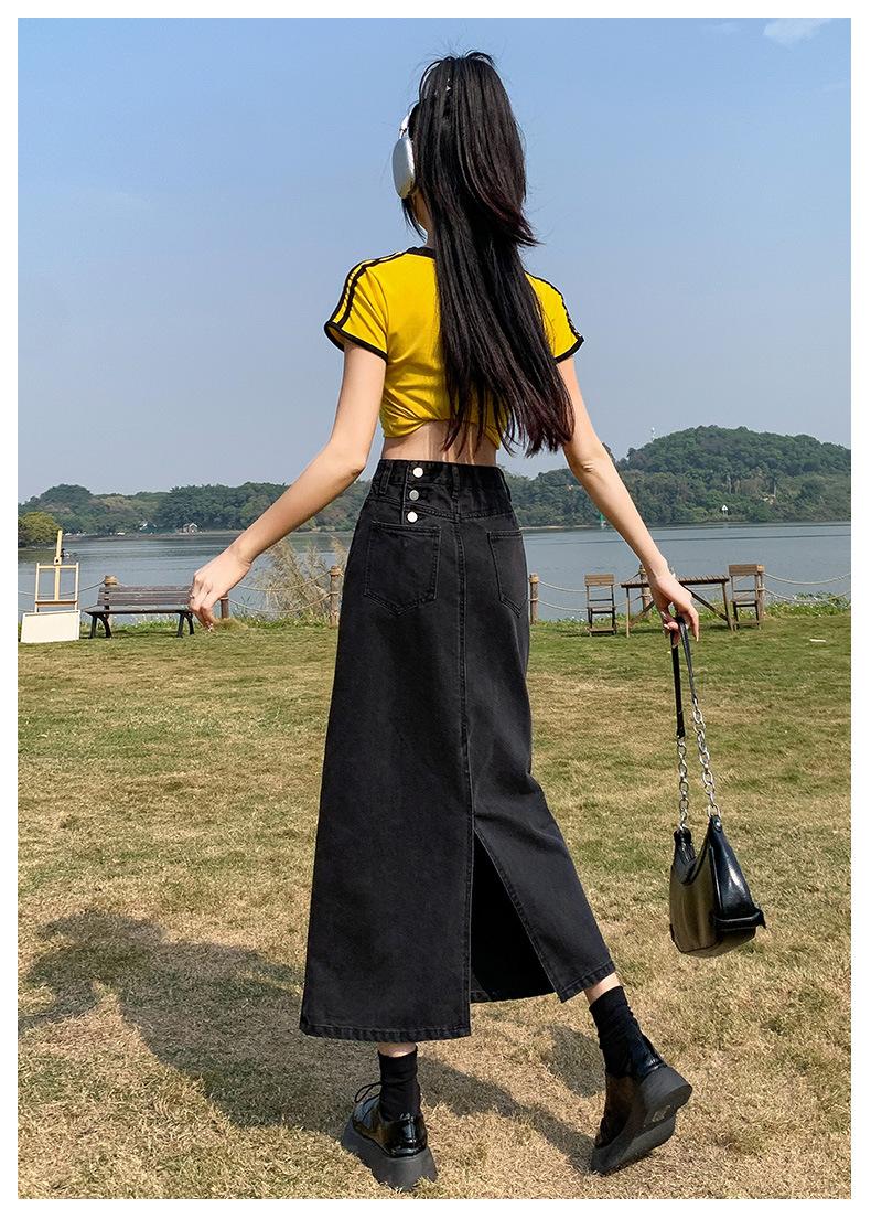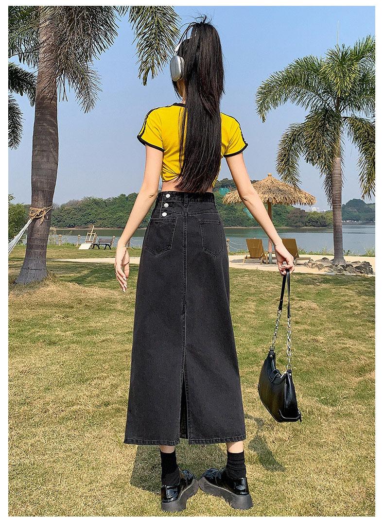 Falda vaquera de cintura alta con botones para mujer, primavera y verano 2024, nueva falda de corte A con abertura de longitud media y caderas adelgazantes.