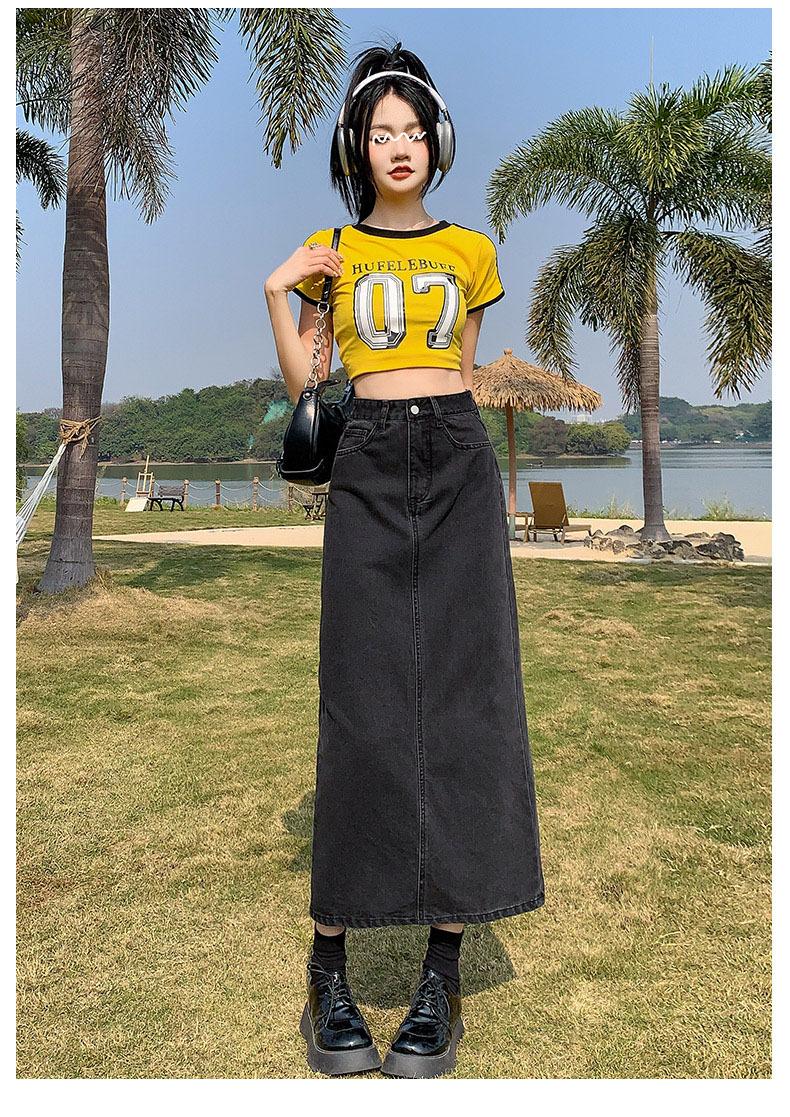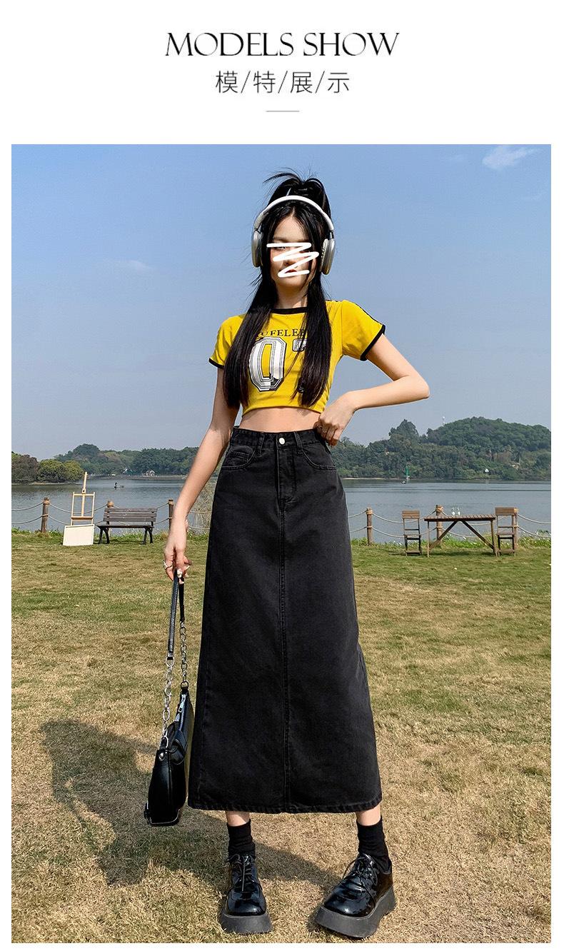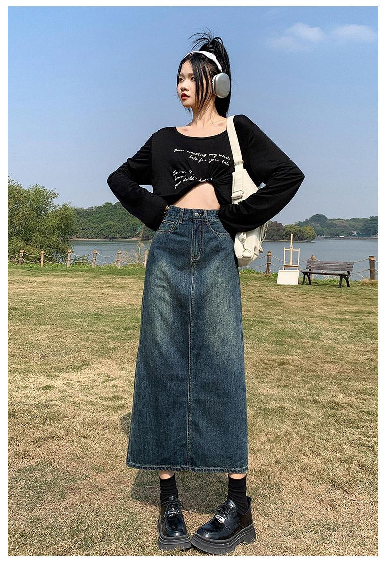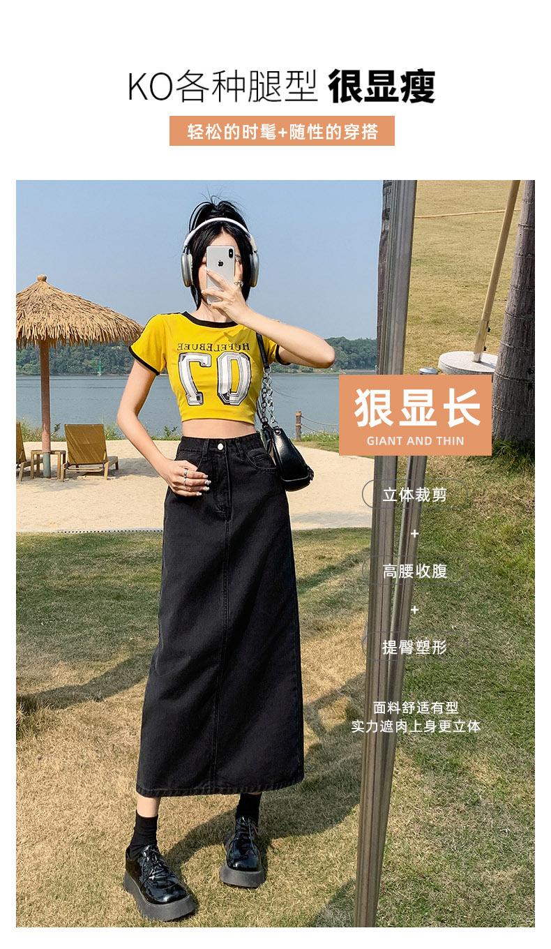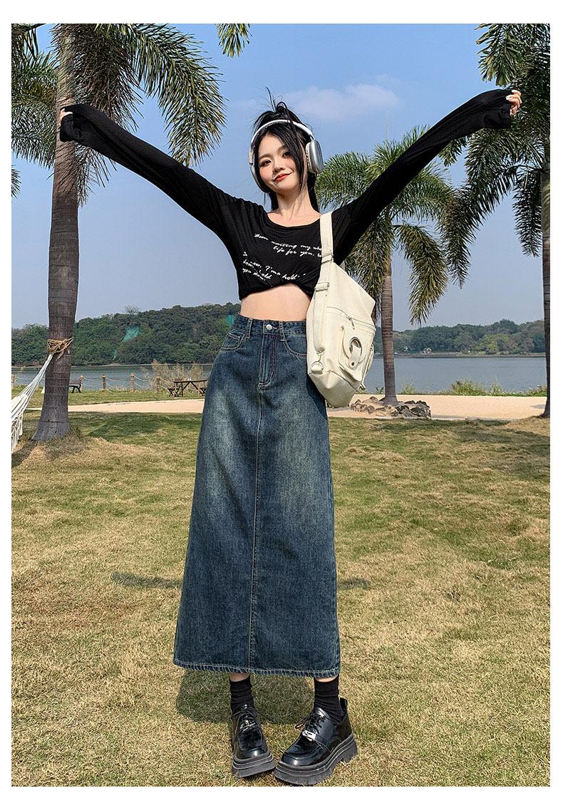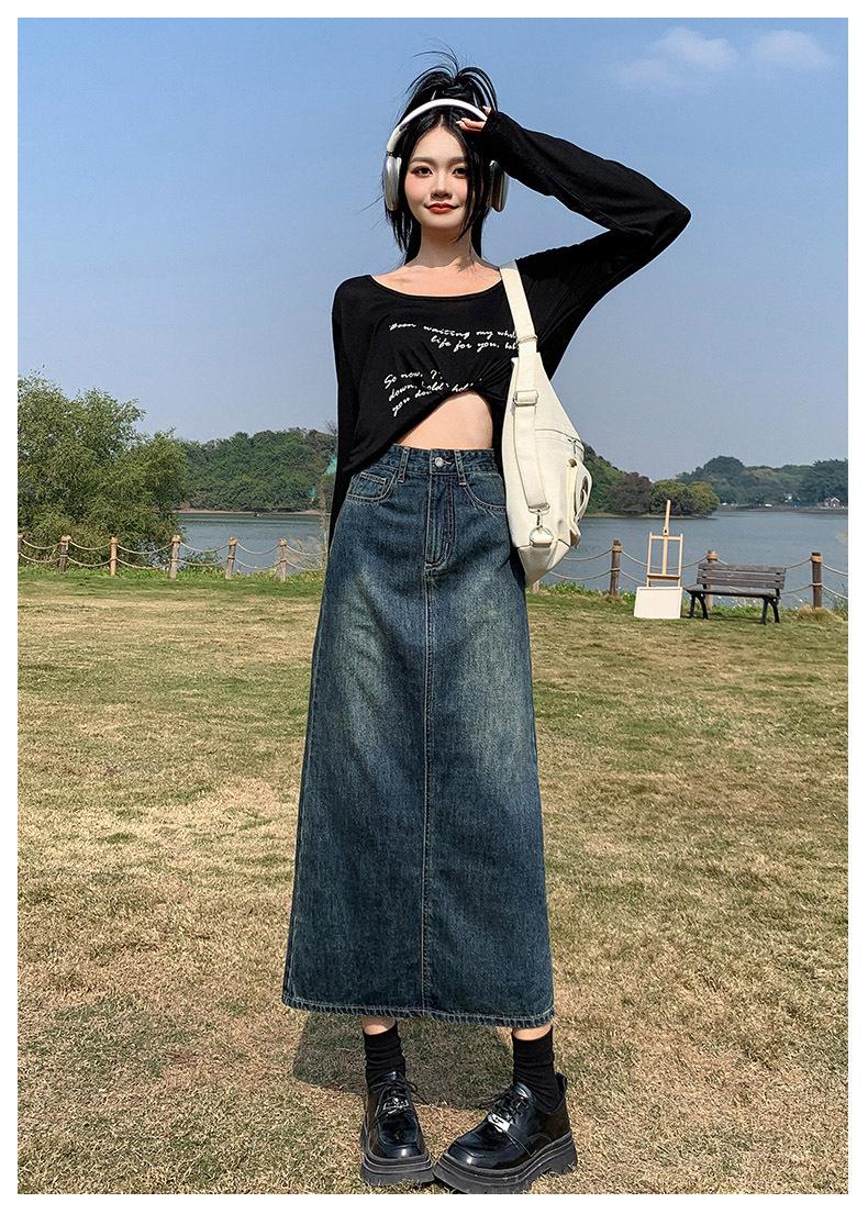 Falda vaquera de cintura alta con botones para mujer, primavera y verano 2024, nueva falda de corte A con abertura de longitud media y caderas adelgazantes.