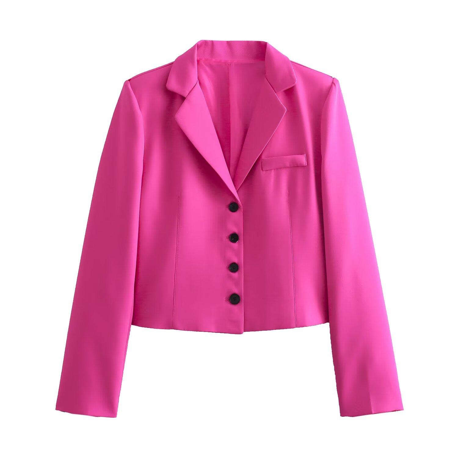 Transfronterizo 2024 Verano Nuevo Estilo Europeo y Americano Color Sólido Ajustado Cruzado Corto Casual Chaqueta de Traje B481218