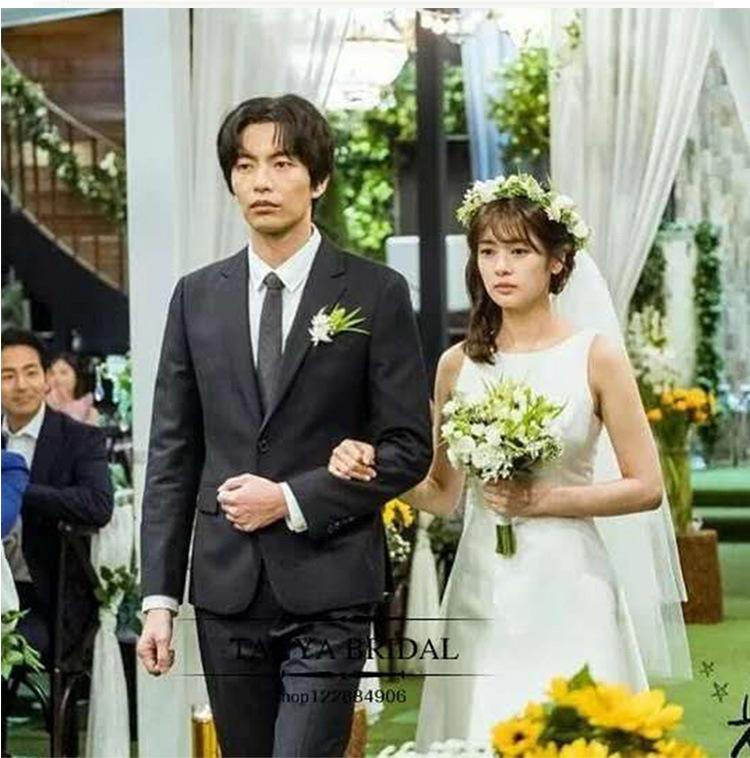 Vestido de Novia Ligero 2025 Nuevo Estilo Satén Ligero Sencillo y Elegante Largo hasta el Suelo Fotografía de Viaje Boda al Aire Libre Foto Vestido Abullonado