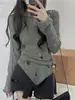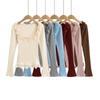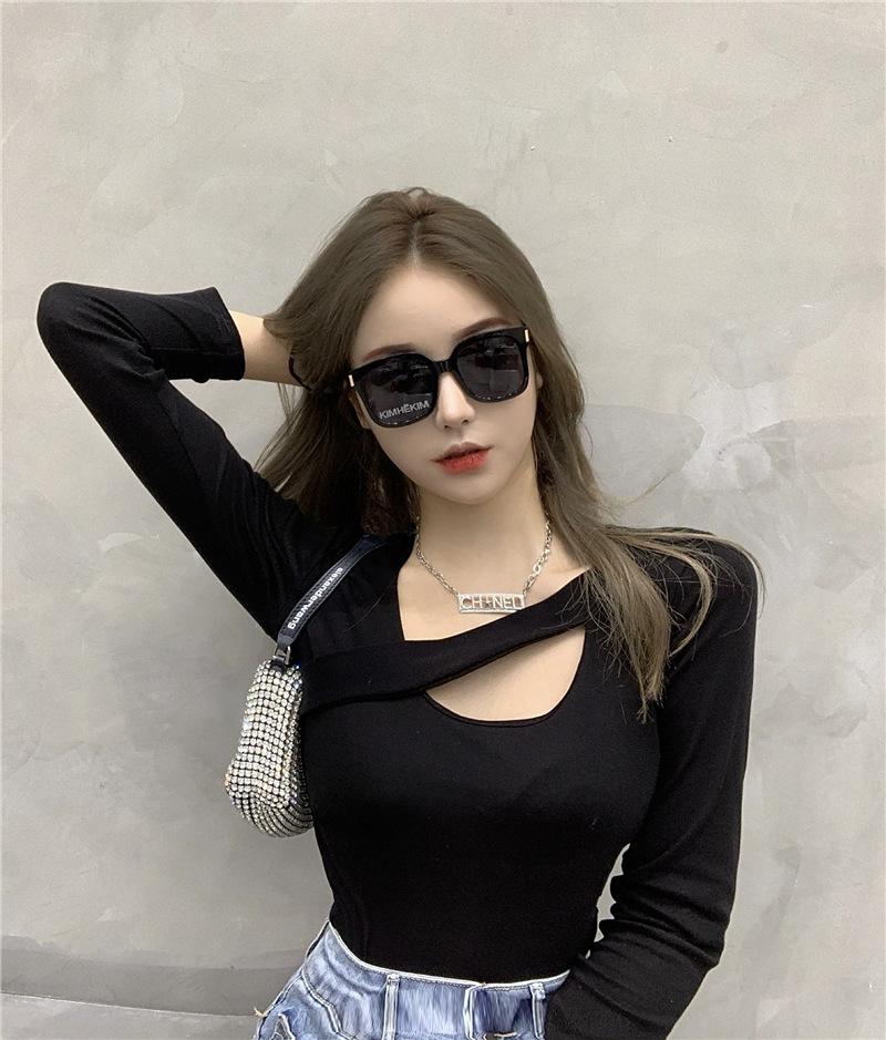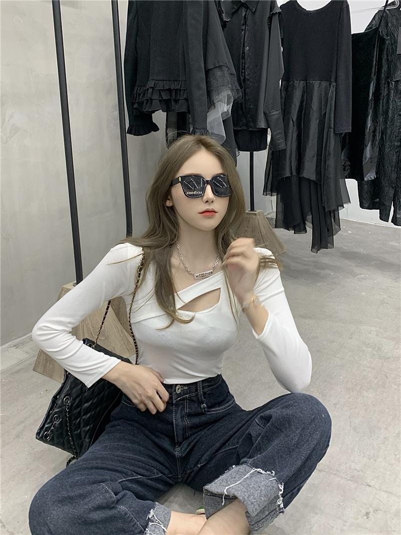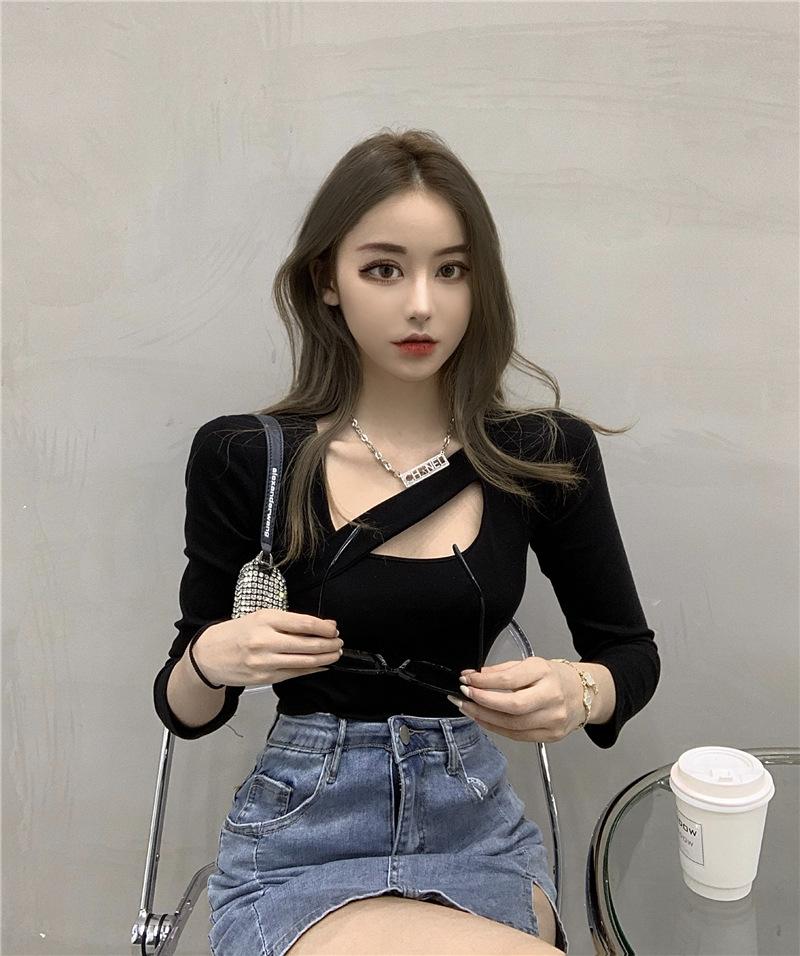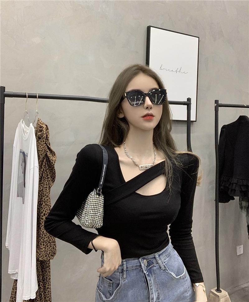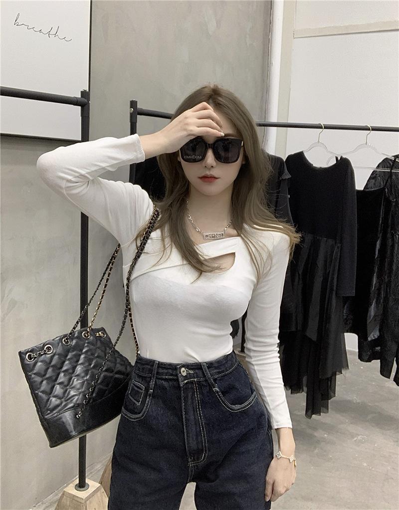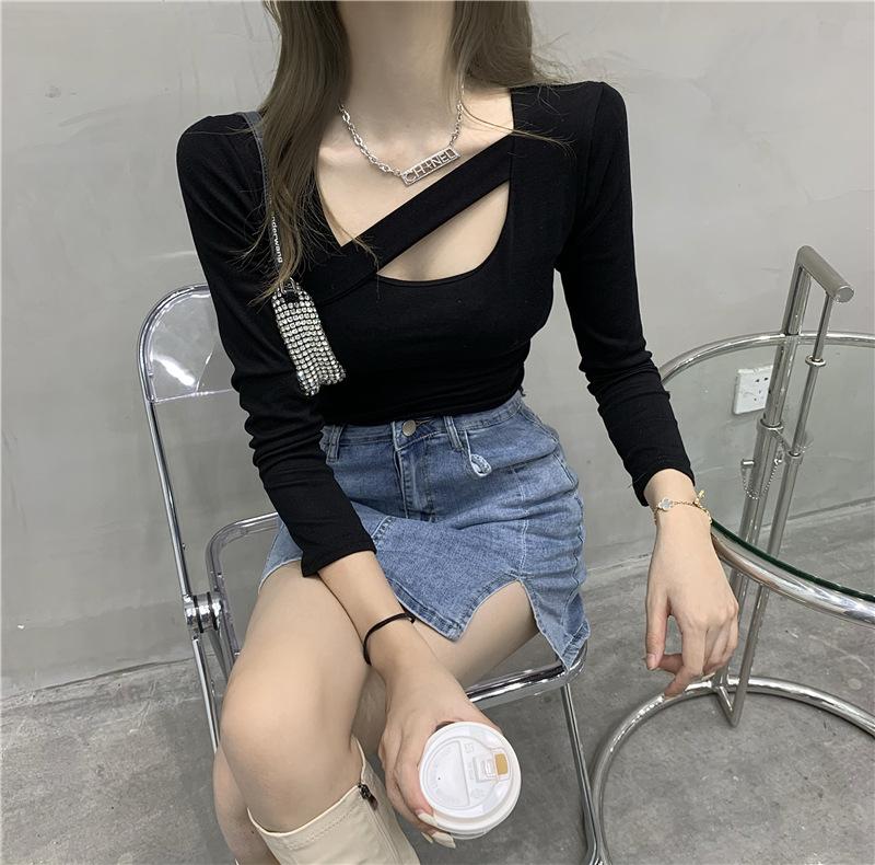 2025 Otoño Nuevo Diseño Sentido Camiseta Calada Color Sólido Versátil Ajuste Slim Manga Larga Top para Mujer Trendy
