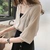 Compra 2023 Nueva ropa de mujer, camisa coreana holgada de gasa de talla grande, blusa de manga de siete puntos para mujer, camisa básica sencilla que combina con todo al por mayor en Joom.pro