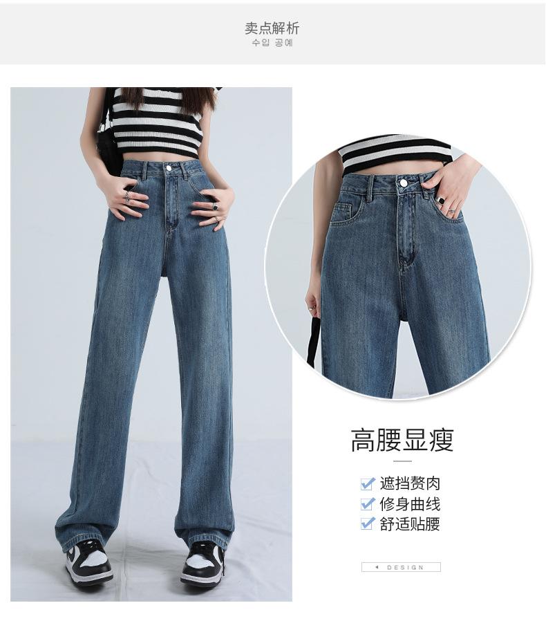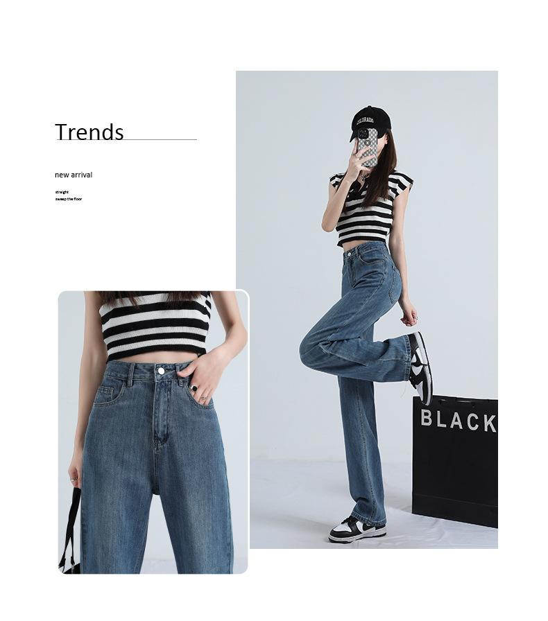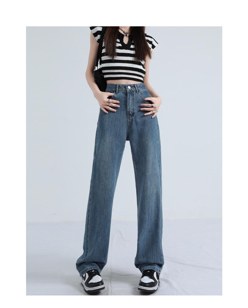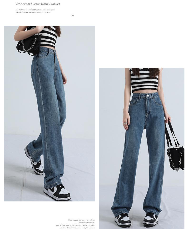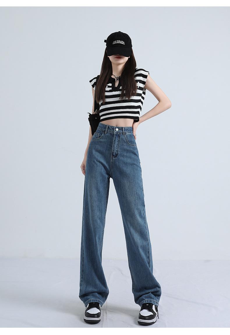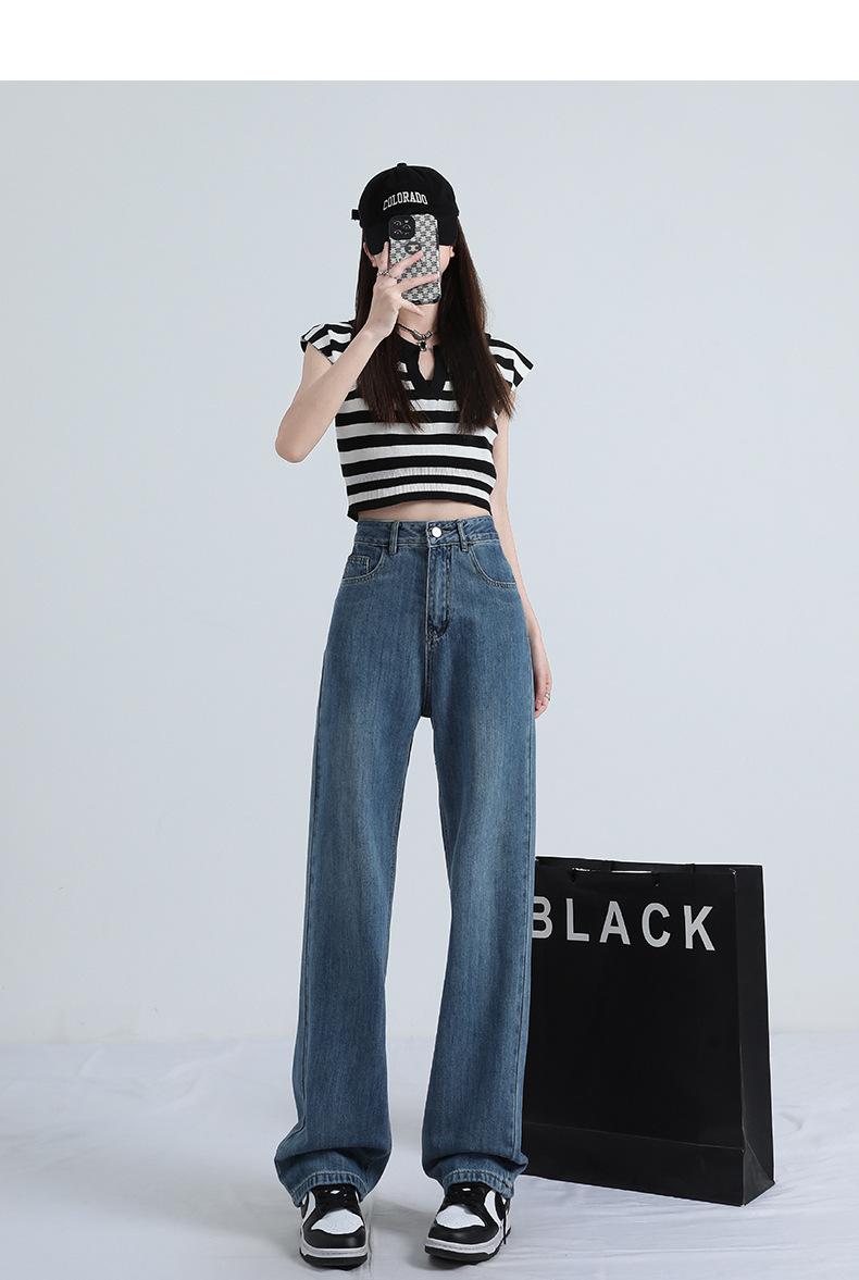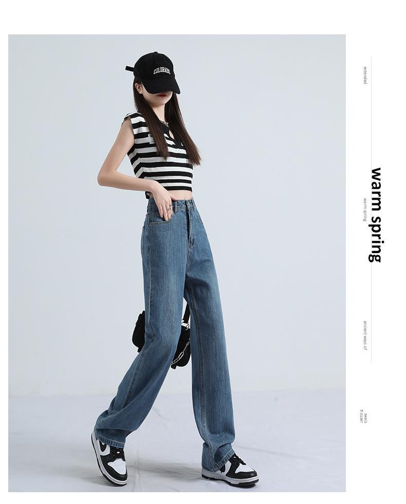 Compra Vaqueros rectos azules retro para mujer, novedad primavera 2023, holgados, adelgazantes, de cintura alta, con pierna ancha y fregona pequeña al por mayor en Joom.pro