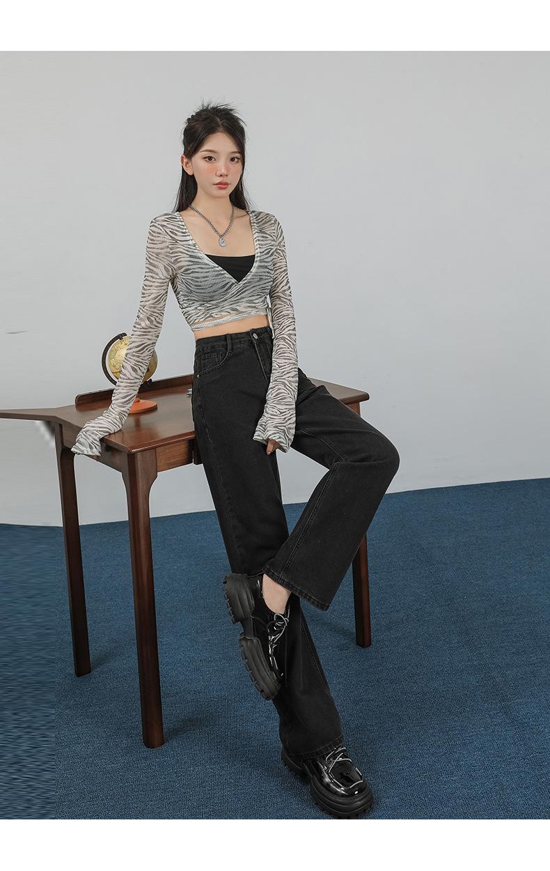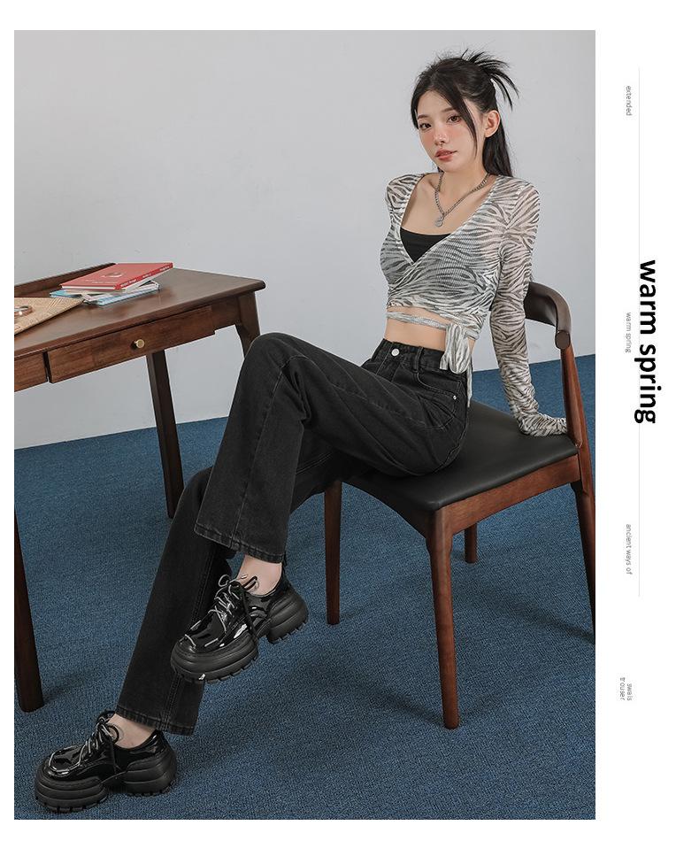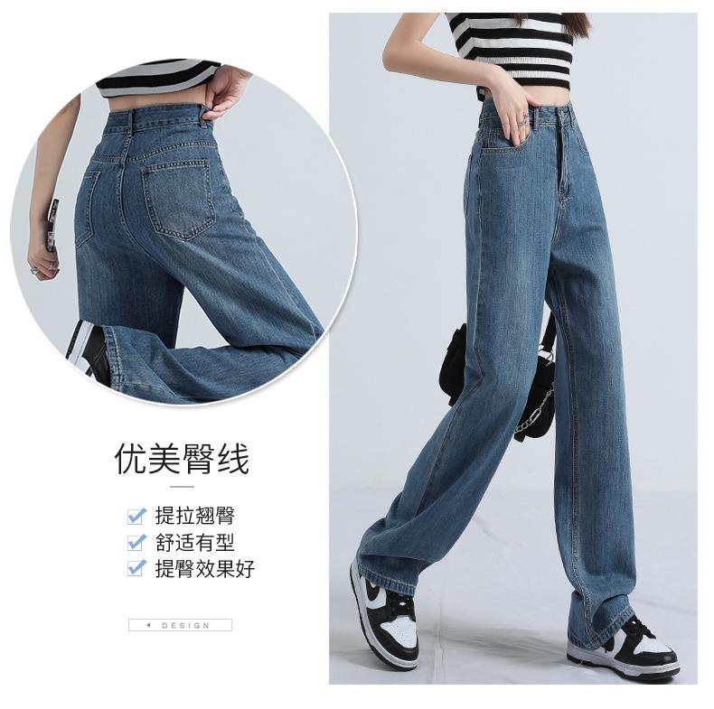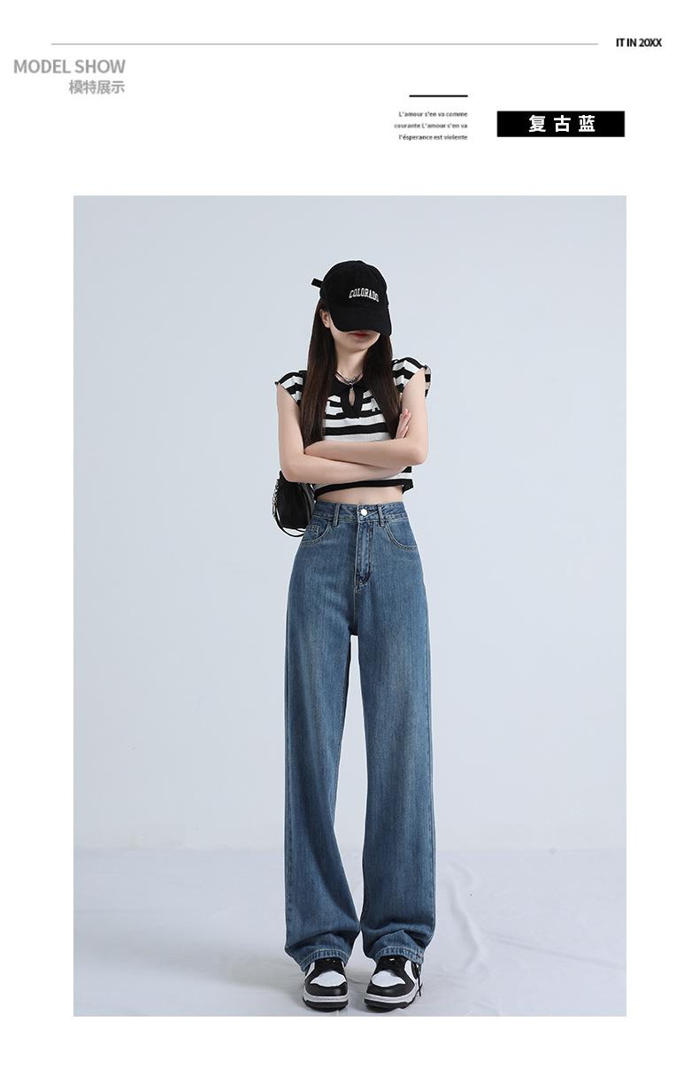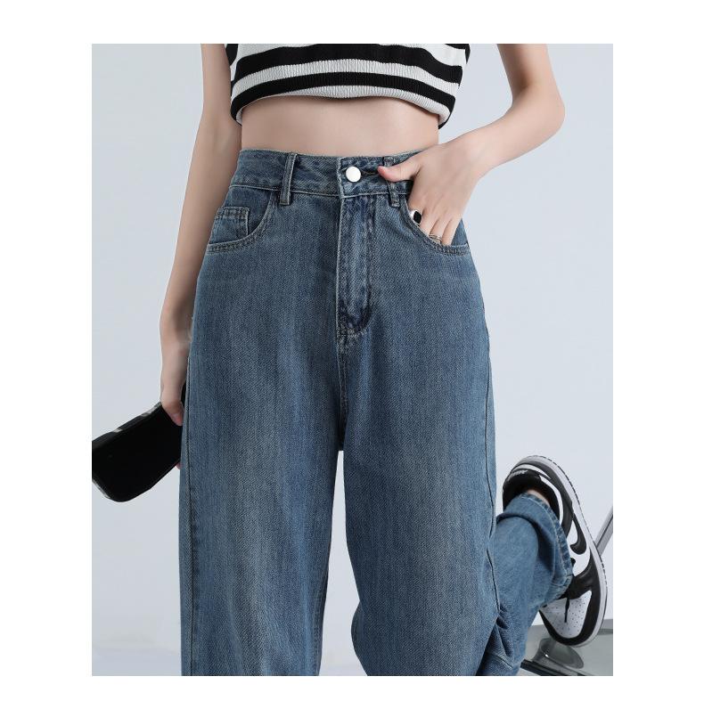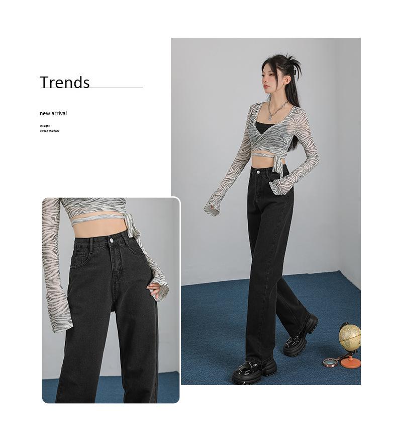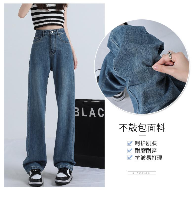 Compra Vaqueros rectos azules retro para mujer, novedad primavera 2023, holgados, adelgazantes, de cintura alta, con pierna ancha y fregona pequeña al por mayor en Joom.pro