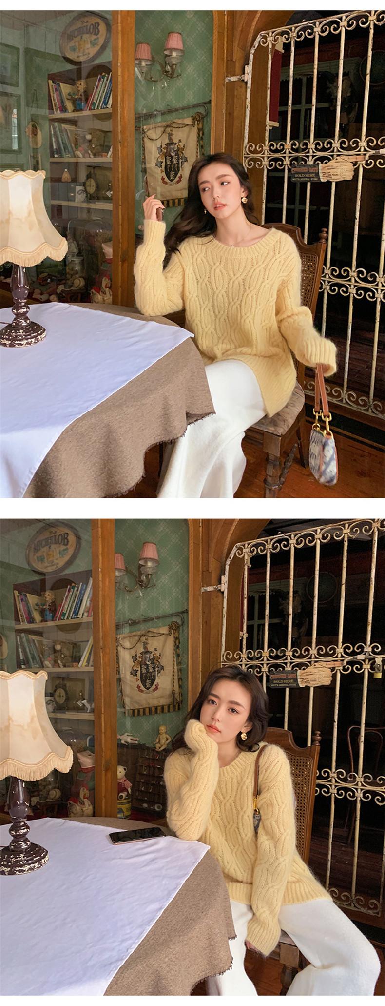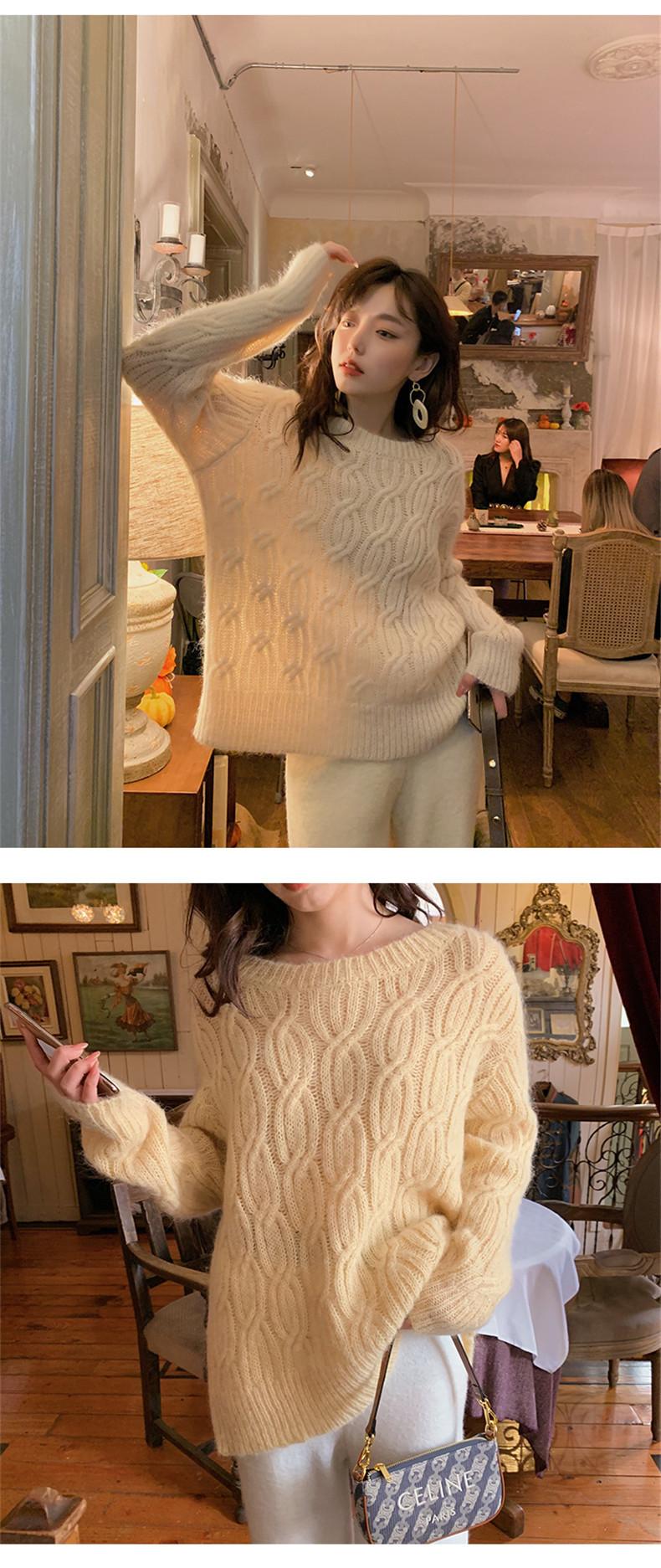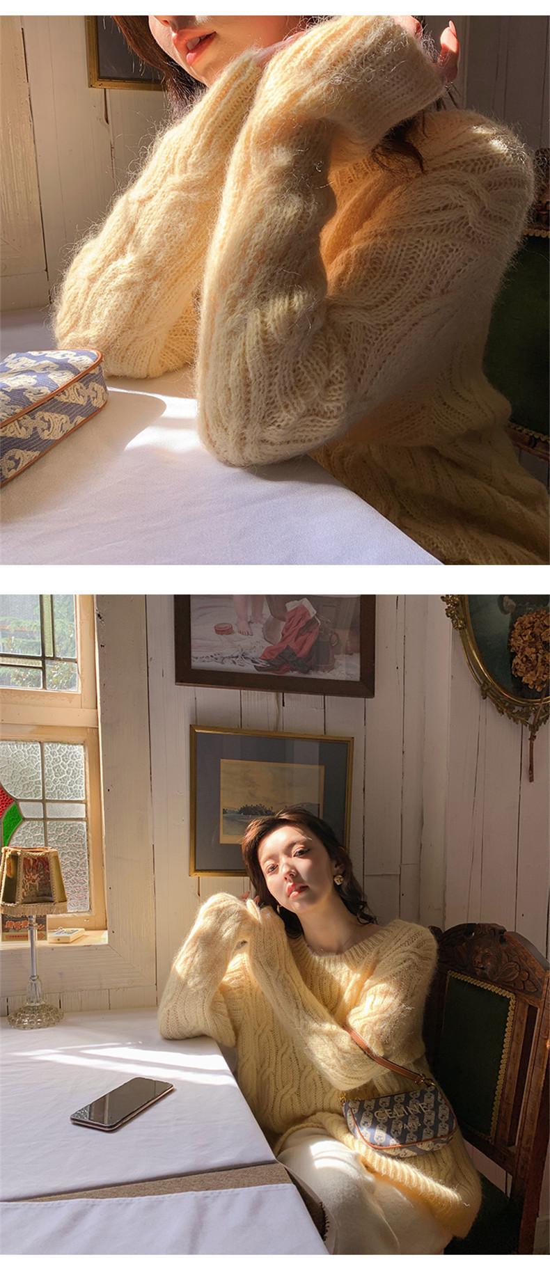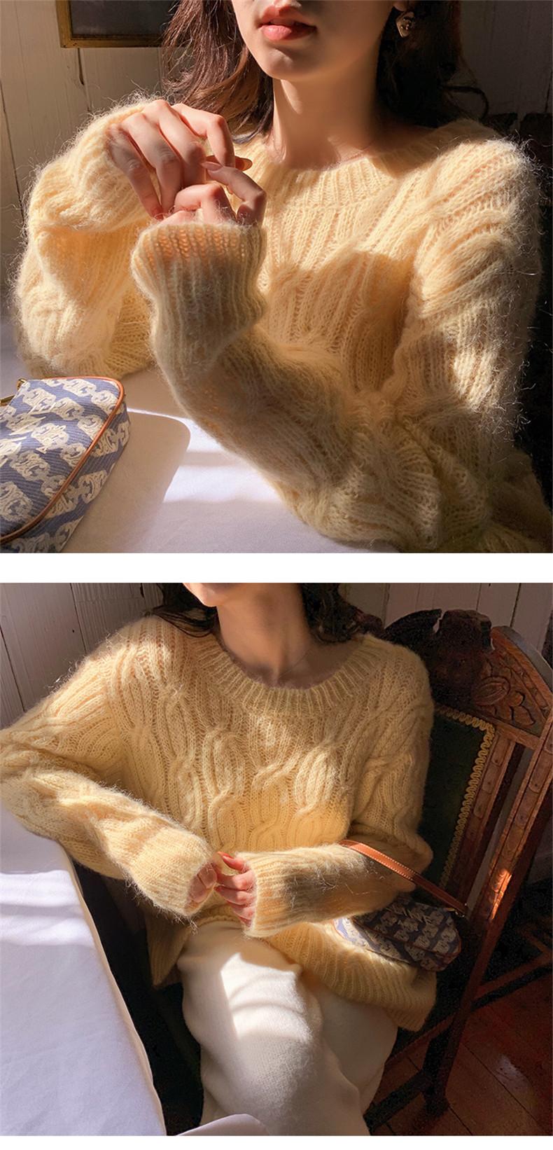 Suéter de punto suave para mujer, otoño e invierno, nuevo estilo holgado, suave y encerado, ropa exterior holgada con cuello redondo, ropa de mohair para mujer