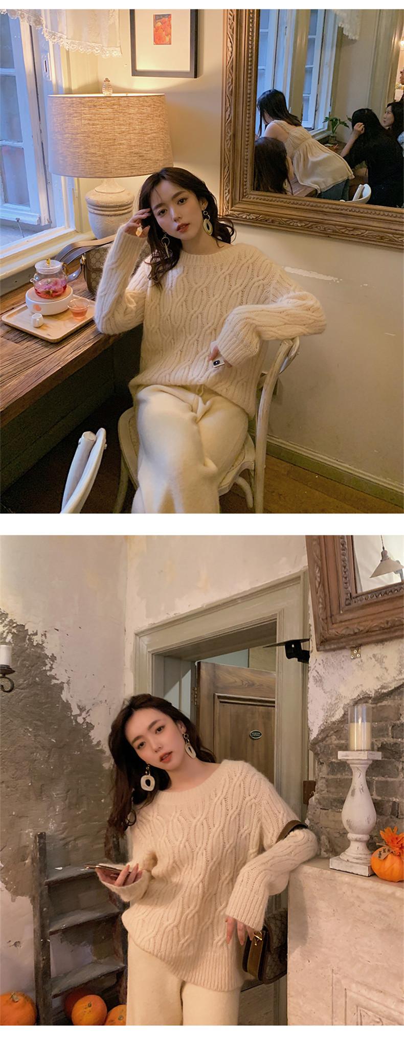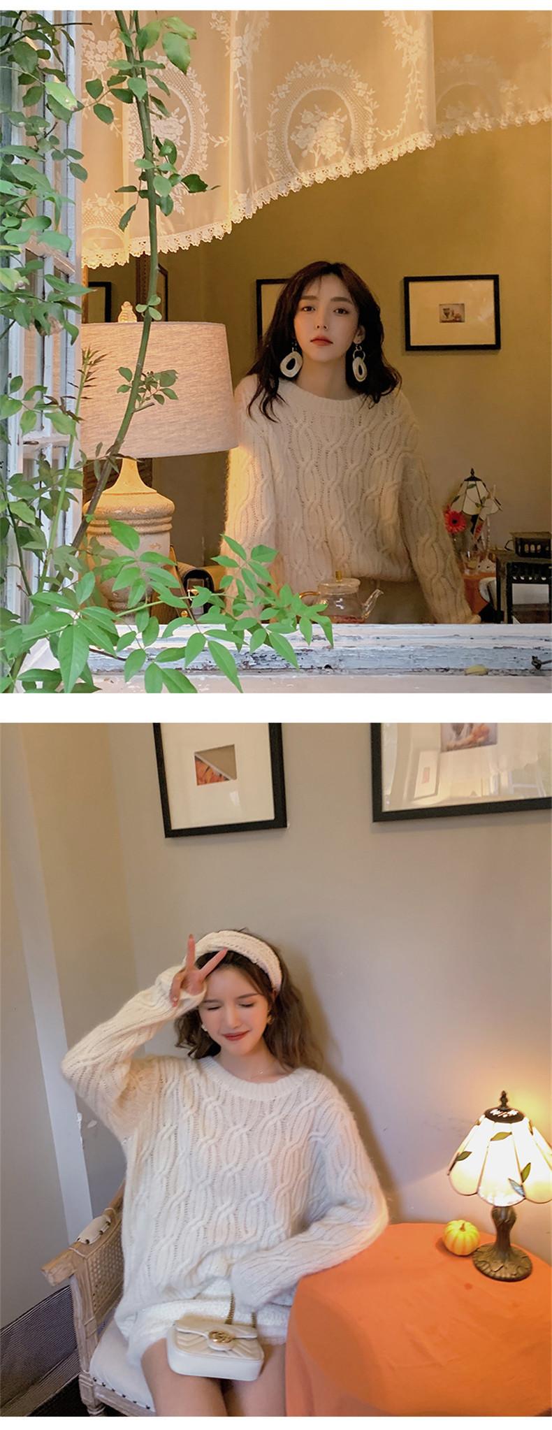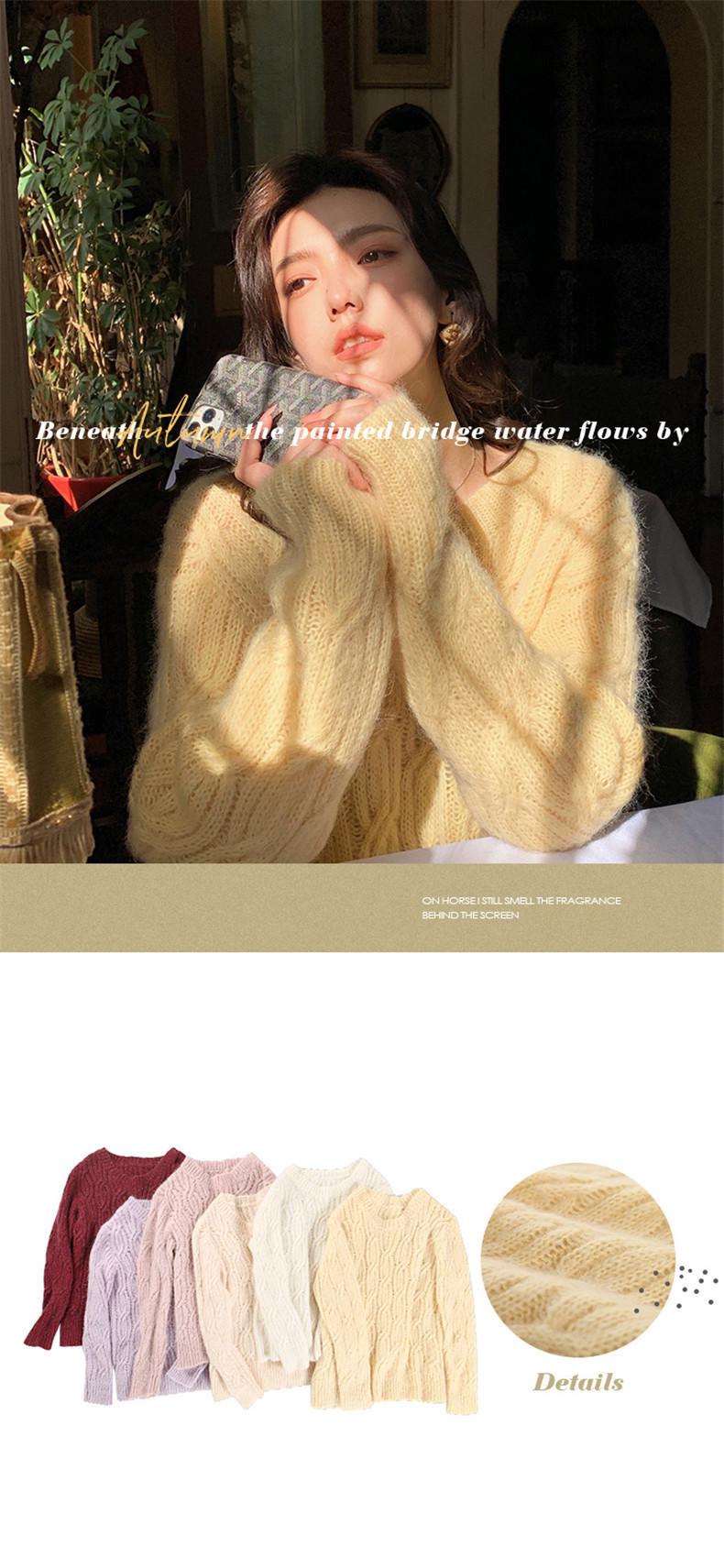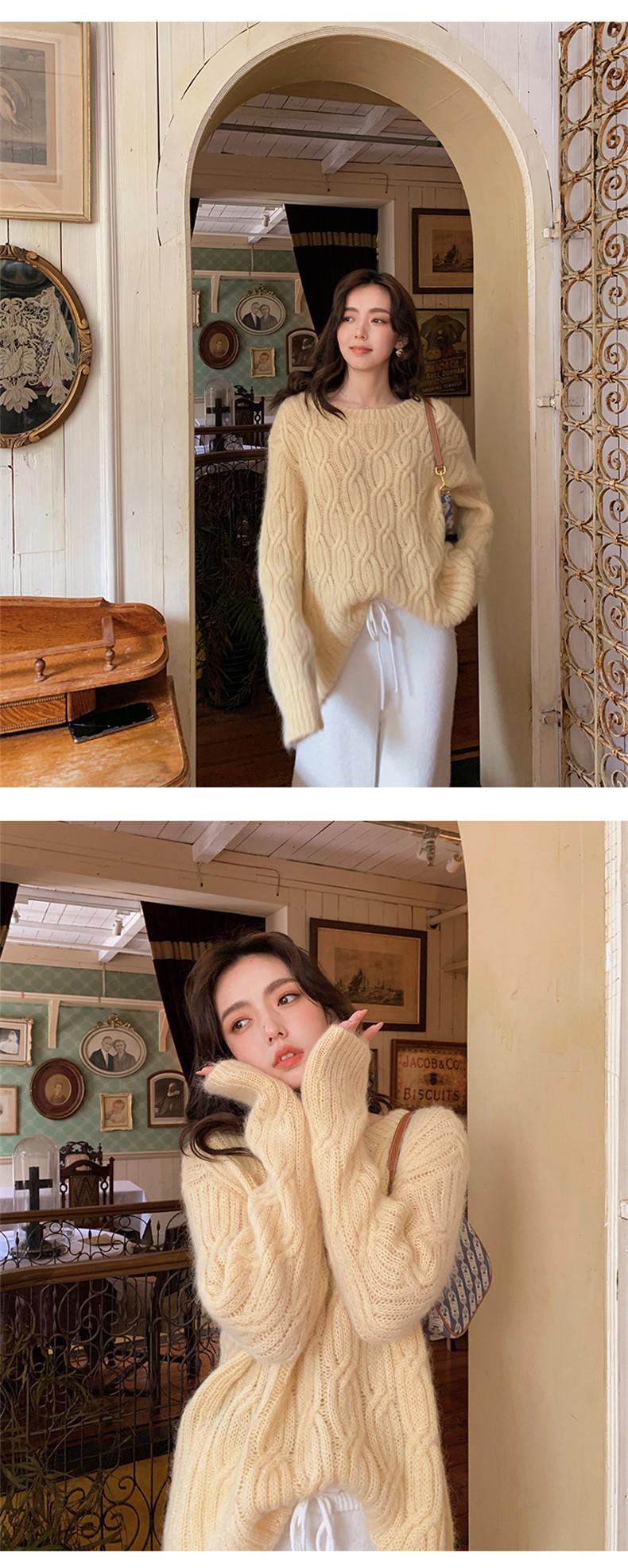 Suéter de punto suave para mujer, otoño e invierno, nuevo estilo holgado, suave y encerado, ropa exterior holgada con cuello redondo, ropa de mohair para mujer