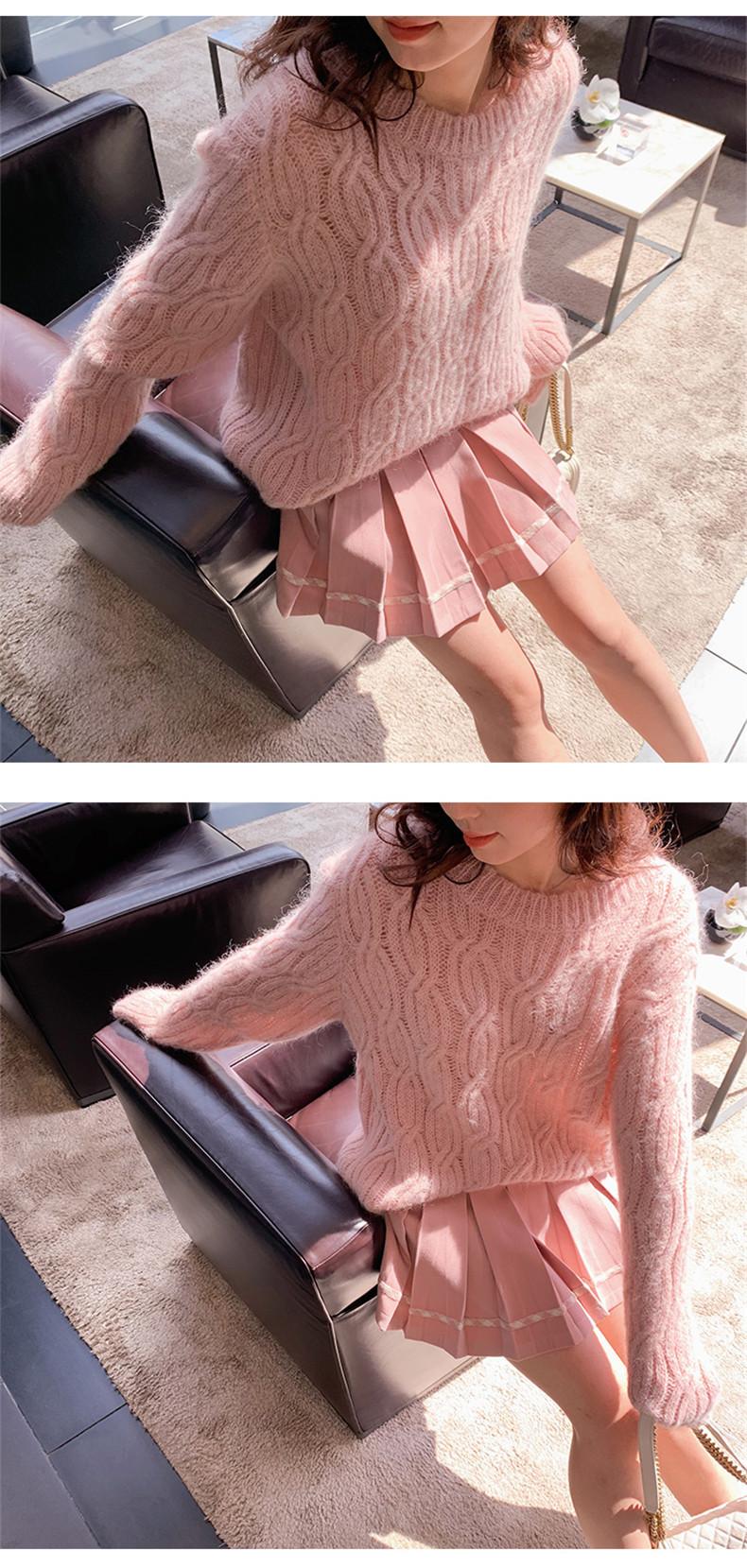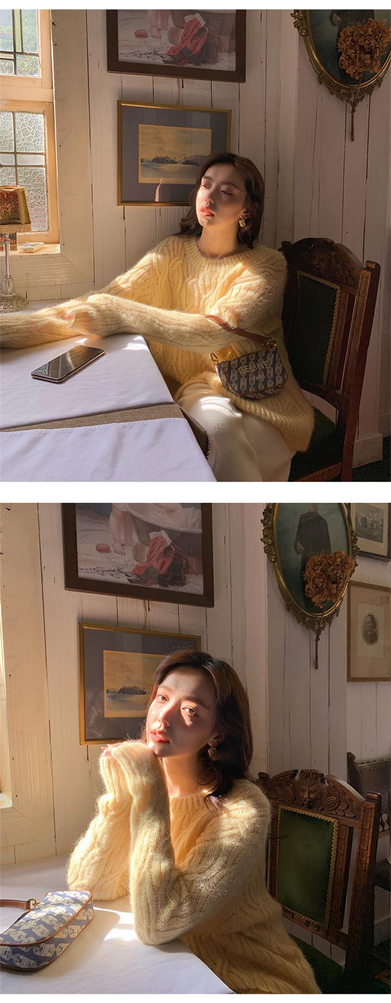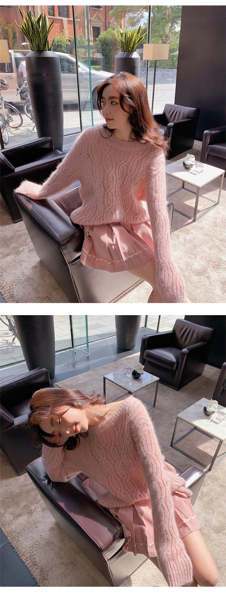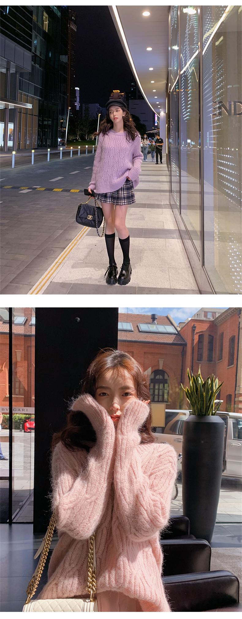 Suéter de punto suave para mujer, otoño e invierno, nuevo estilo holgado, suave y encerado, ropa exterior holgada con cuello redondo, ropa de mohair para mujer