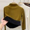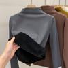 Camiseta Base Gruesa con Cuello Alto y Forro Polar para Mujer para Otoño e Invierno, Top Térmico de Terciopelo Ajustado Todo en Uno, Camiseta de Manga Larga para Mujer, Moderna
