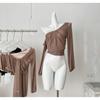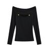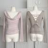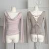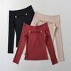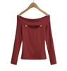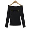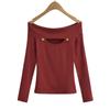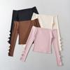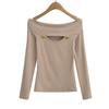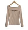 Top sexy de chica caliente pura con hombros descubiertos y calado de manga larga para mujer 2024 Primavera Nuevo top camiseta ajustada adelgazante