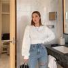 Primavera y Otoño 2025 Estilo Coreano Nuevo Moda Casual Más Fácil de Combinar Slim Holgado Reductor de Edad Sudadera Corta de Cintura Alta Mujeres Agencia de Compras