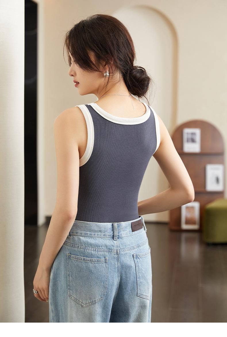 Camisola para Mujer Otoño e Invierno Nueva Base Interior Ajustada Adelgazante Sin Mangas Top Espalda Hermosa Ropa Exterior Tejido de Punto Ropa de Mujer