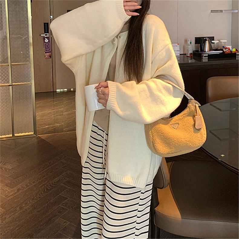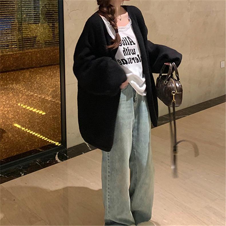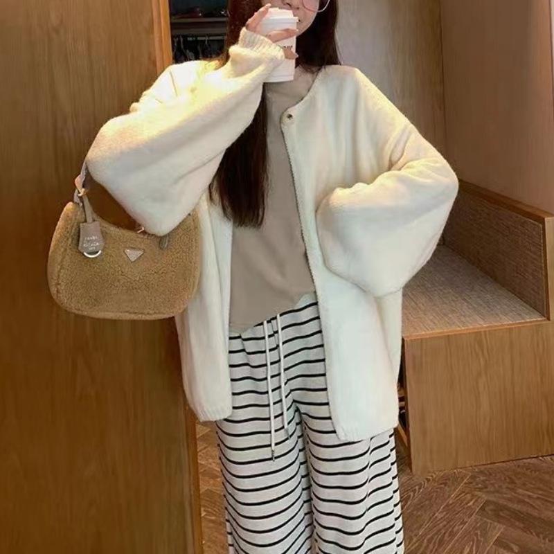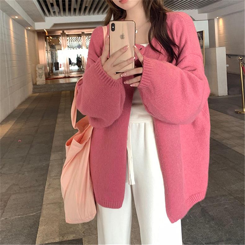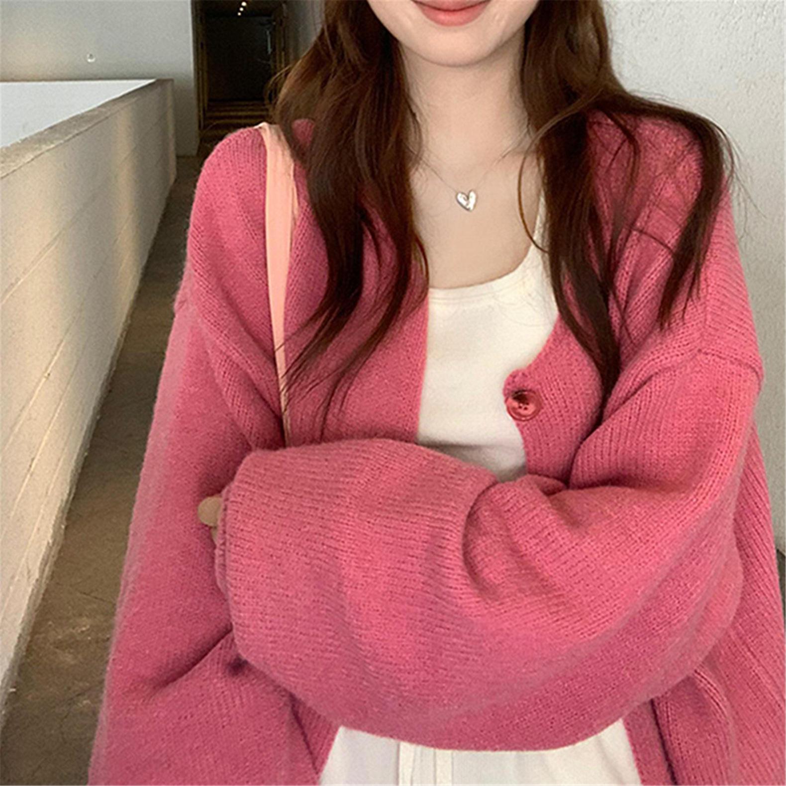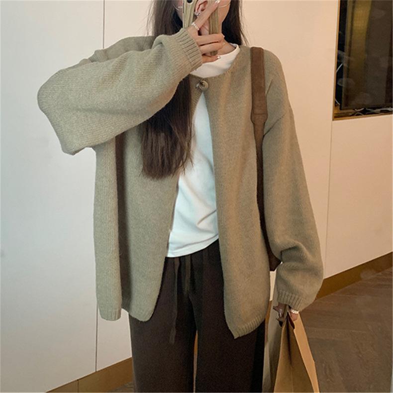 Chaqueta Suéter de Cuello Redondo para Mujer 2025 Estilo Coreano Otoño e Invierno Estilo Relajado Suelta y Versátil Color Sólido Cárdigan de Punto para Mujer con Un Botón