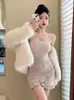 Vestido ajustado y sexy de puro deseo para mujer, falda de otoño con dobladillo de encaje floral, cintura ajustada, borde de cadera