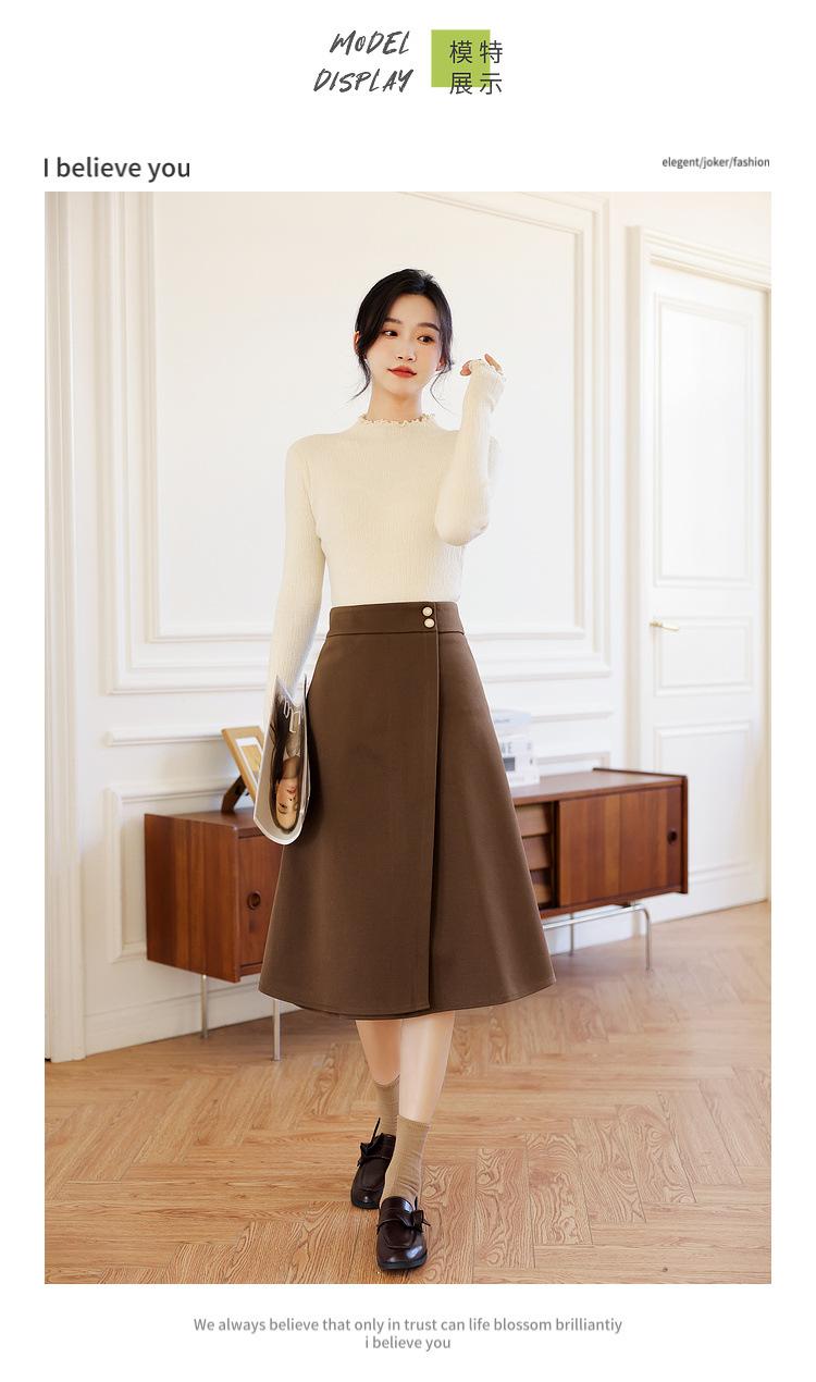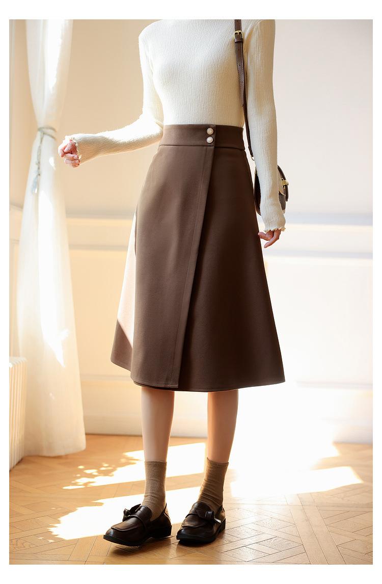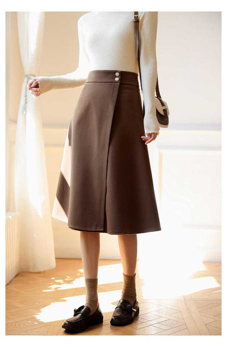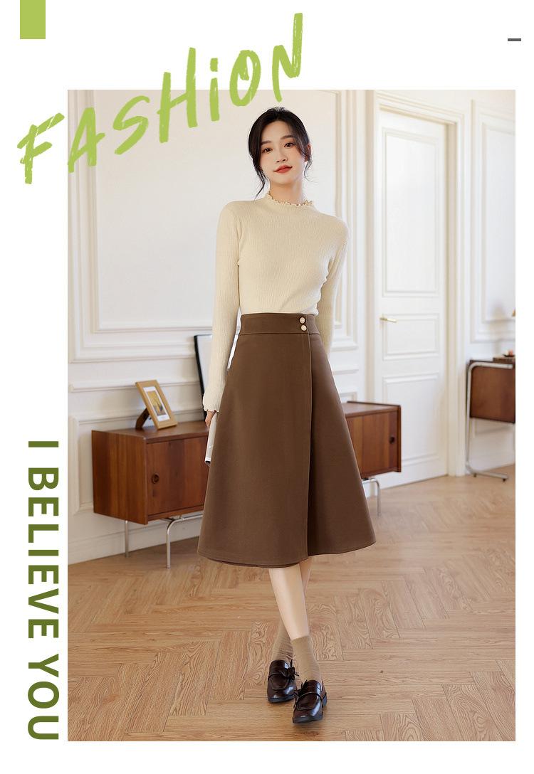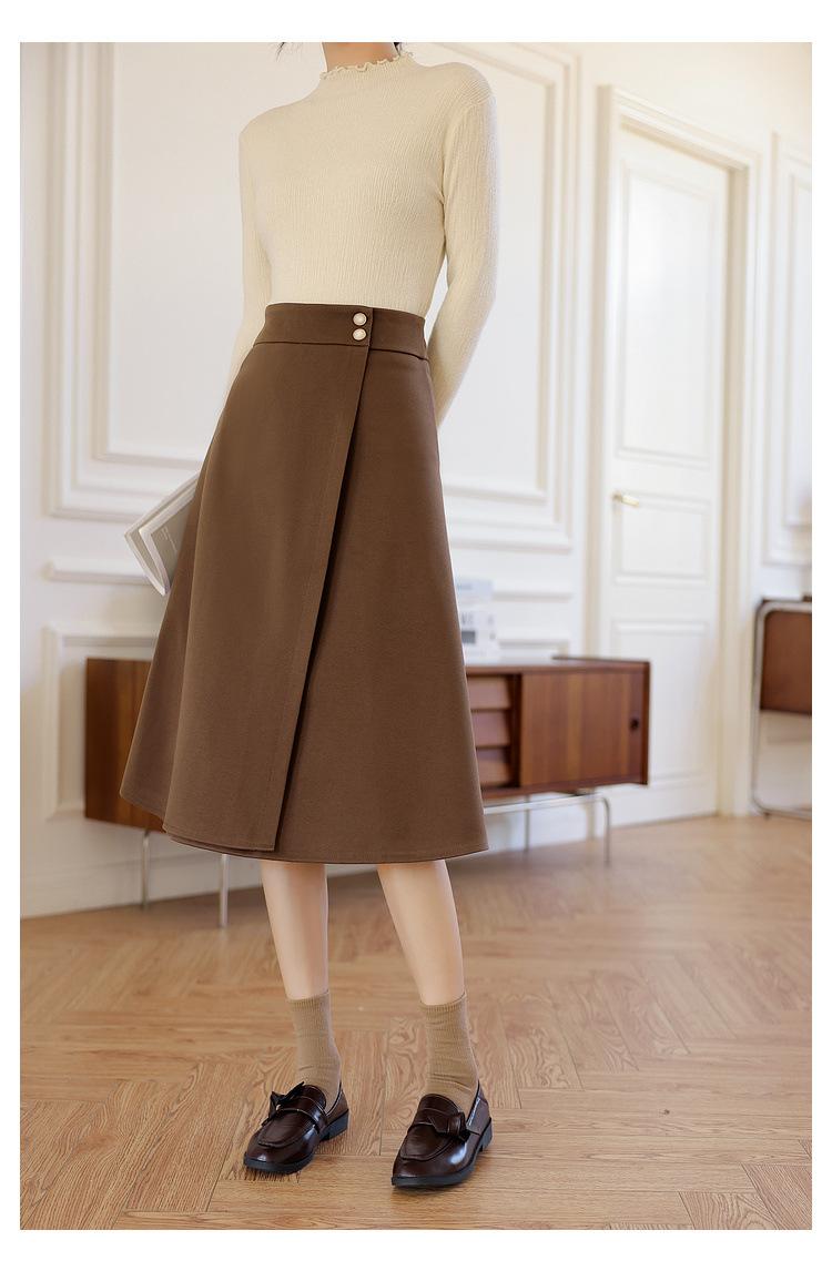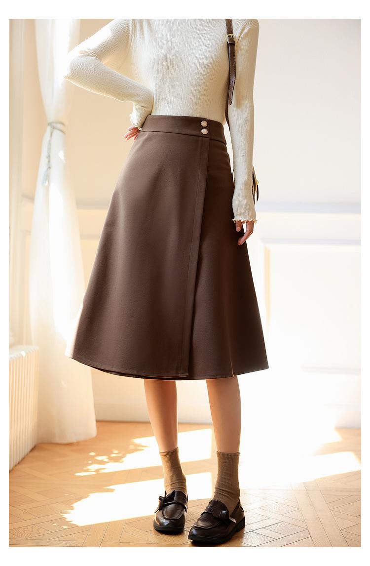 Falda de Lana Midi 2025 Invierno Nuevo Estilo Pequeña Cintura Alta Cubre Imperfecciones Look Adelgazante Línea A Dobladillo Amplio Falda Paraguas