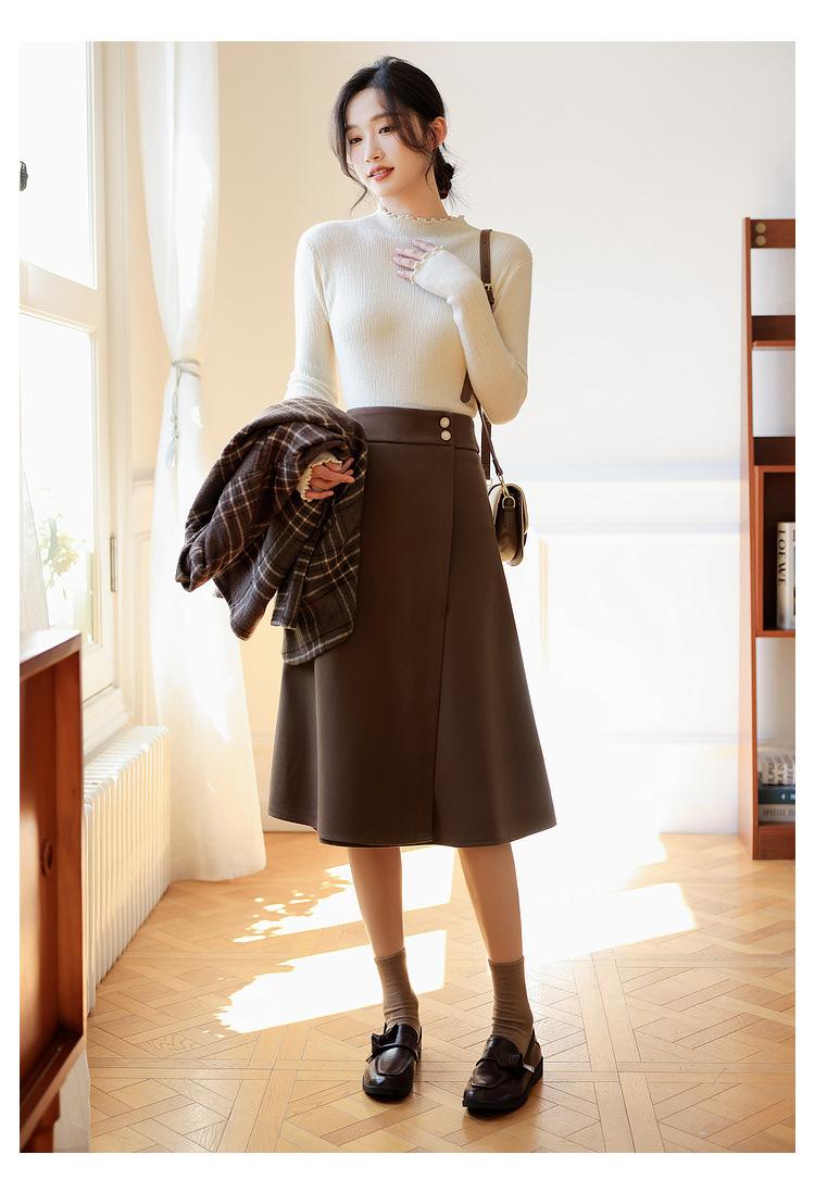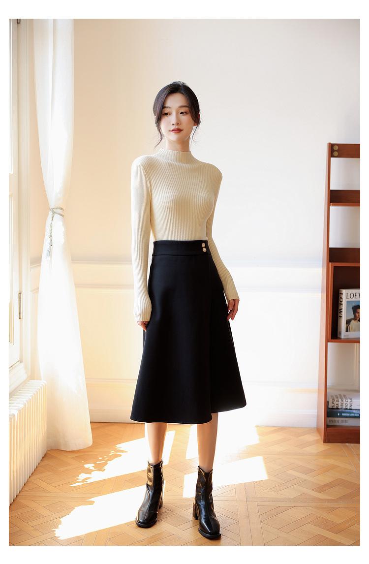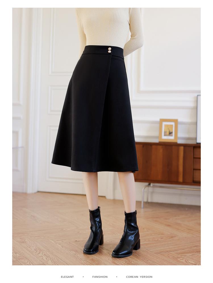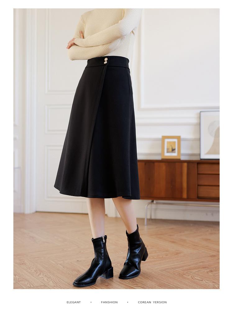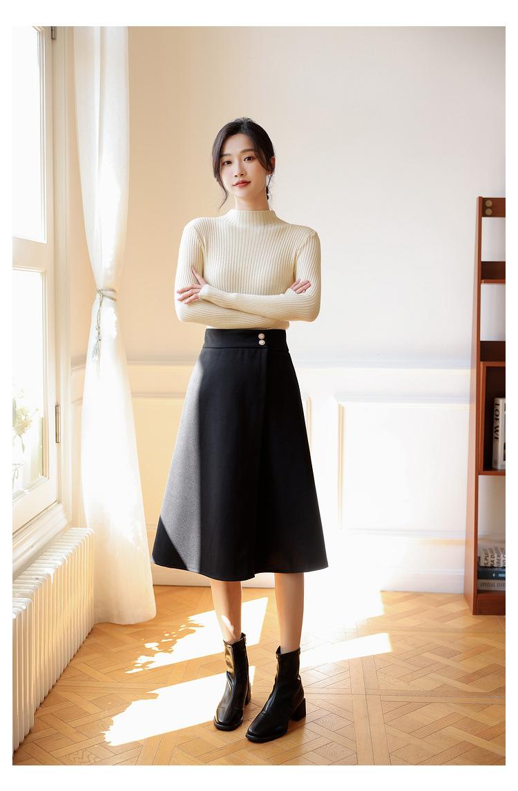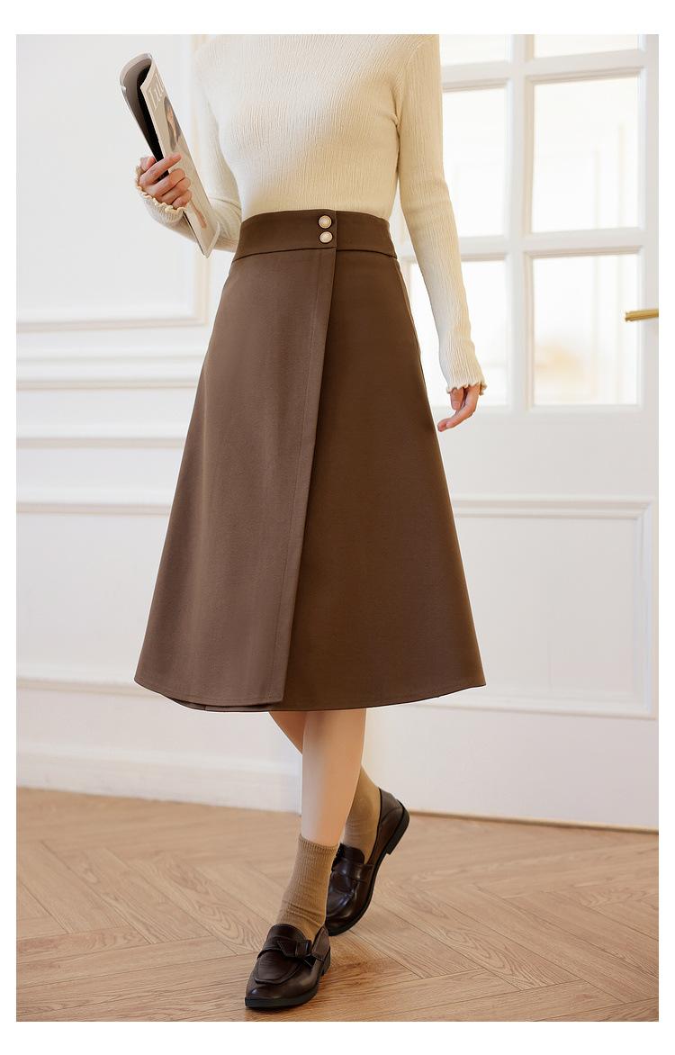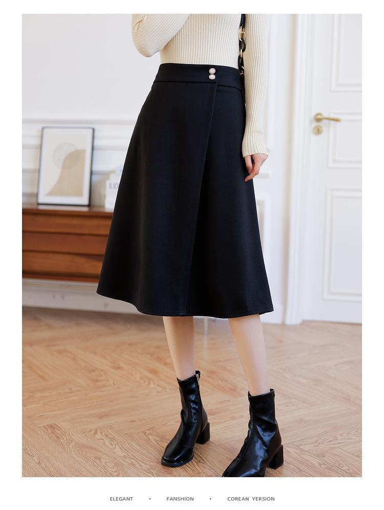 Falda de Lana Midi 2025 Invierno Nuevo Estilo Pequeña Cintura Alta Cubre Imperfecciones Look Adelgazante Línea A Dobladillo Amplio Falda Paraguas