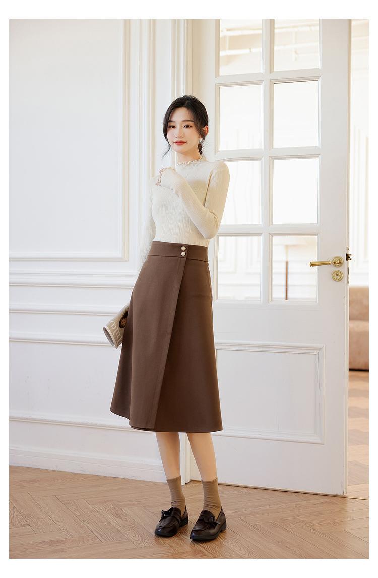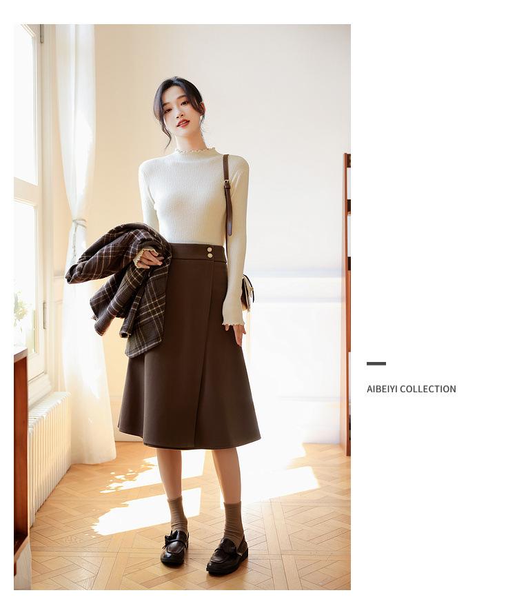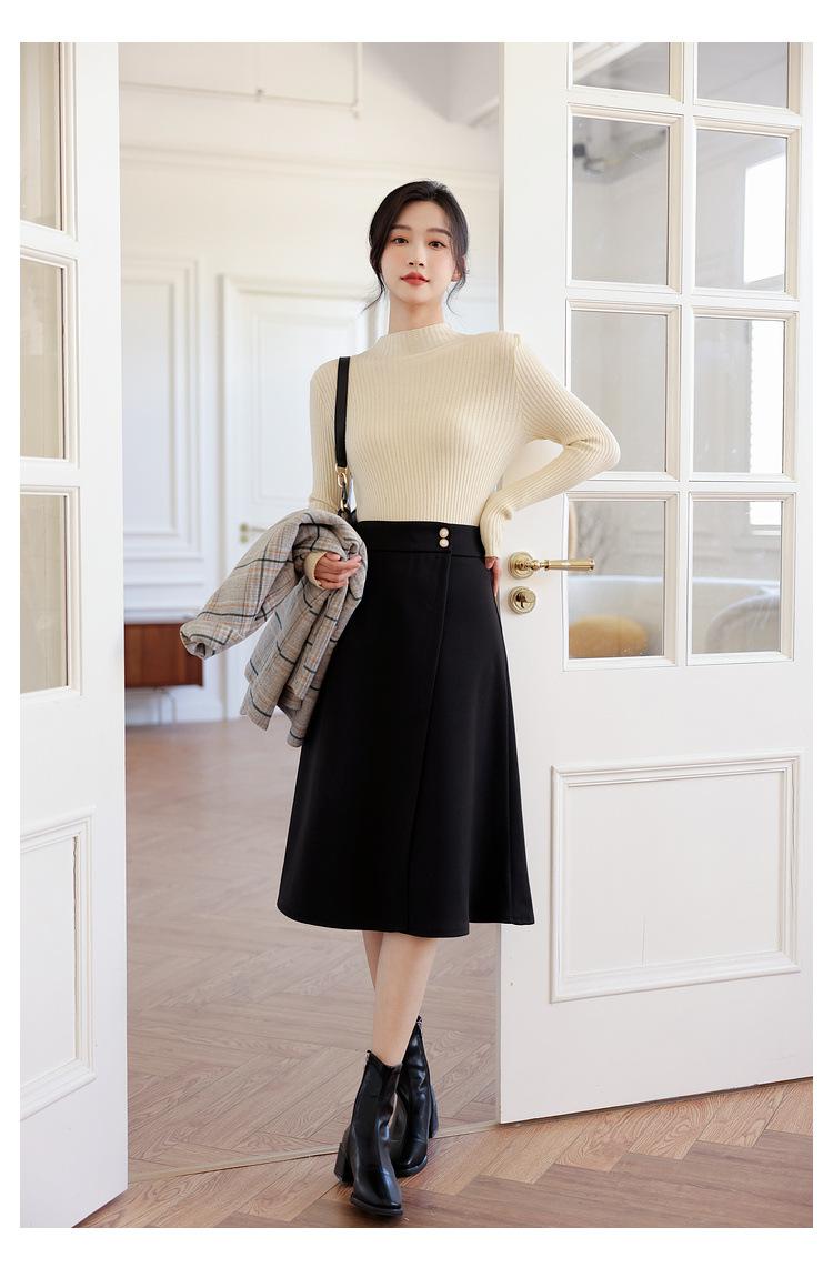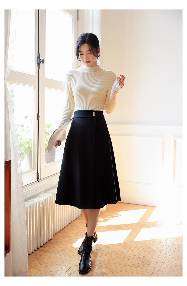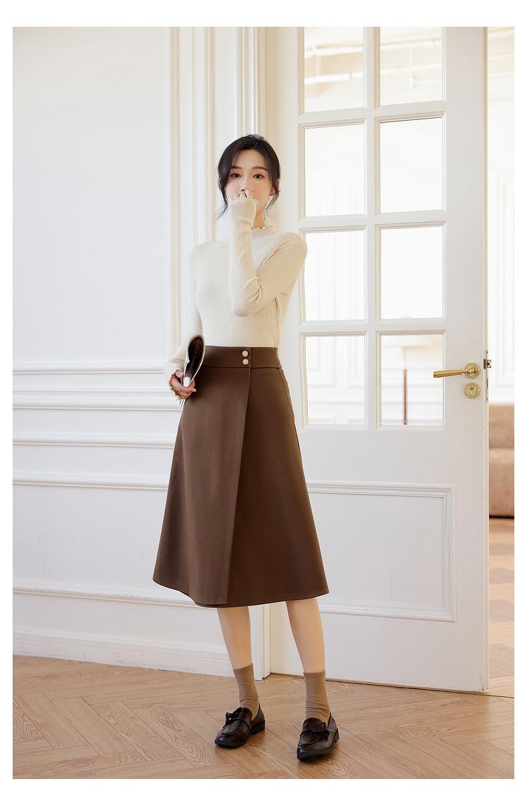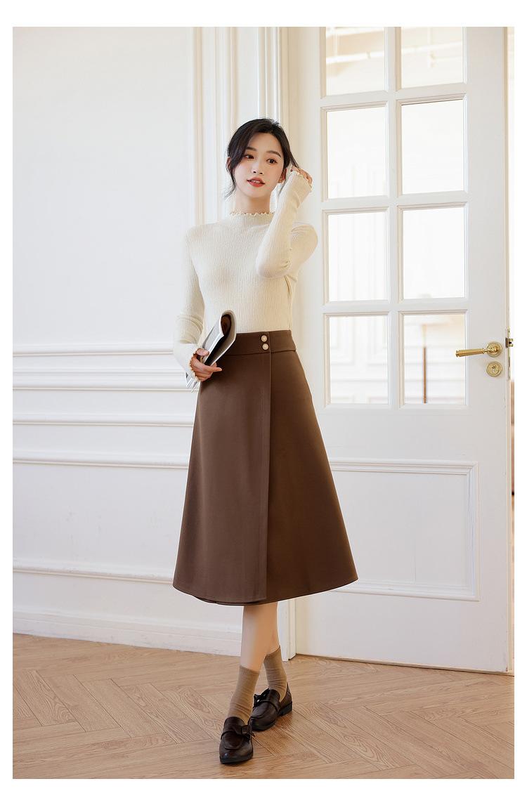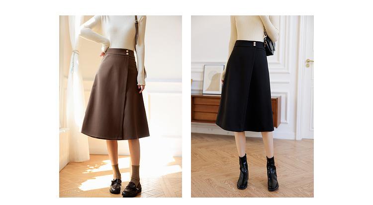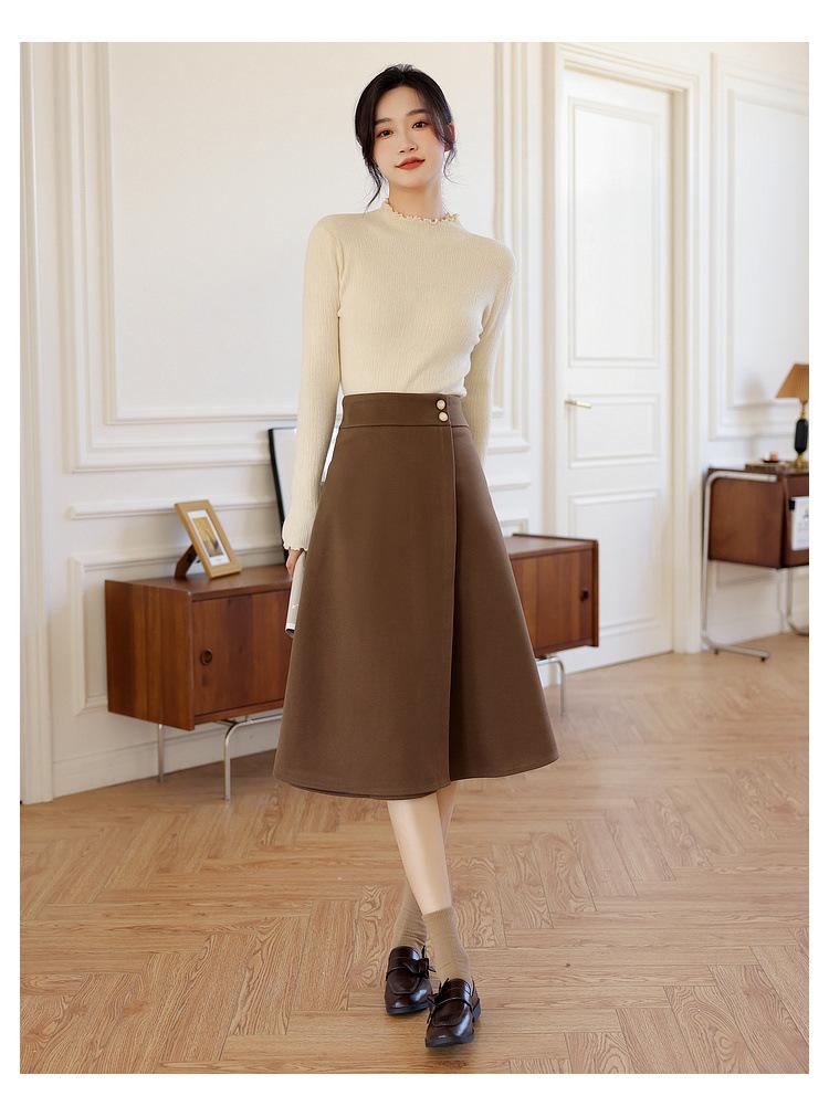 Falda de Lana Midi 2025 Invierno Nuevo Estilo Pequeña Cintura Alta Cubre Imperfecciones Look Adelgazante Línea A Dobladillo Amplio Falda Paraguas
