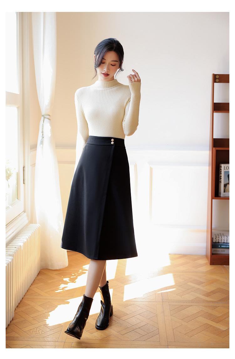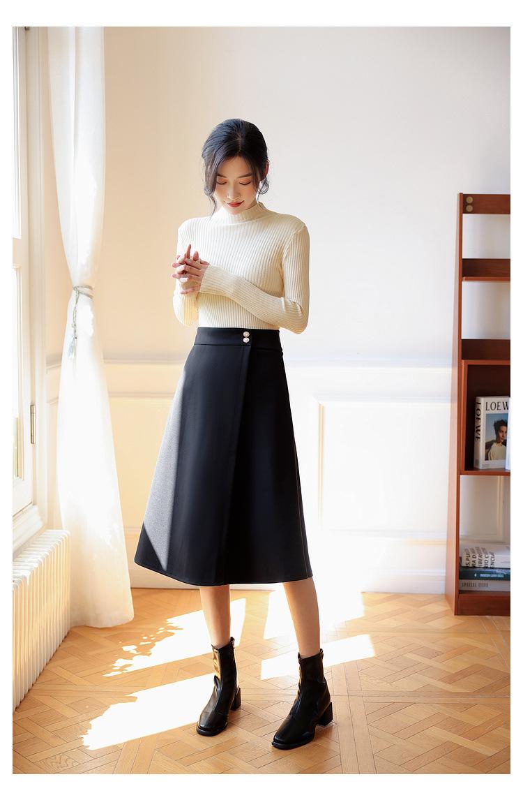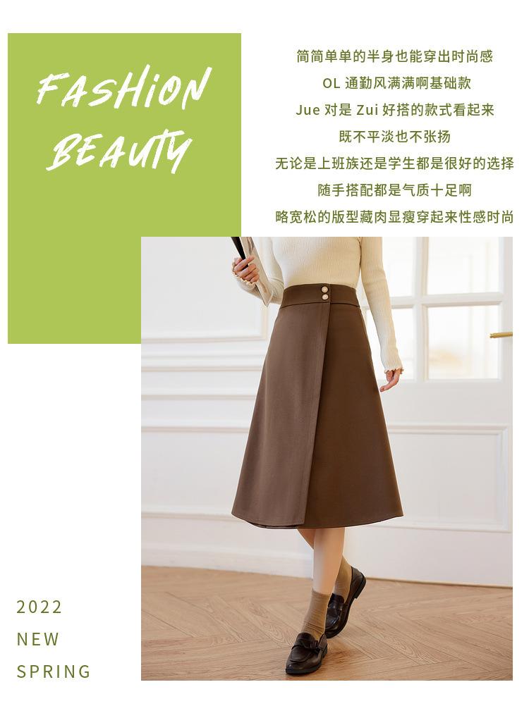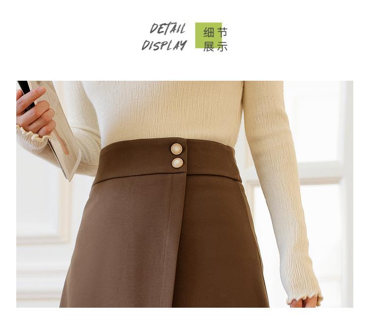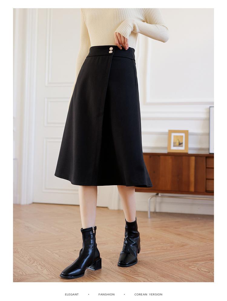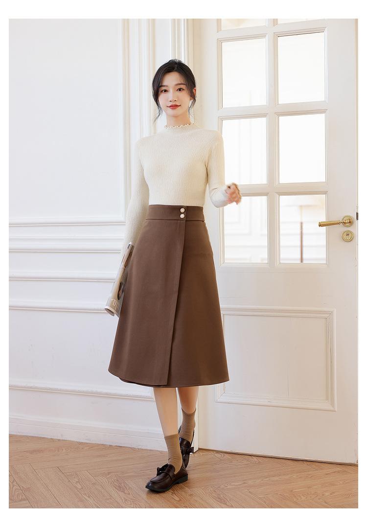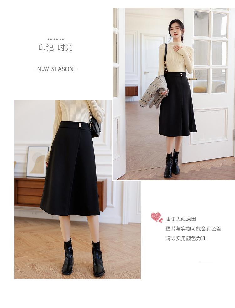 Falda de Lana Midi 2025 Invierno Nuevo Estilo Pequeña Cintura Alta Cubre Imperfecciones Look Adelgazante Línea A Dobladillo Amplio Falda Paraguas