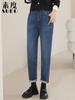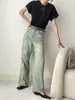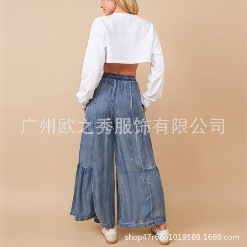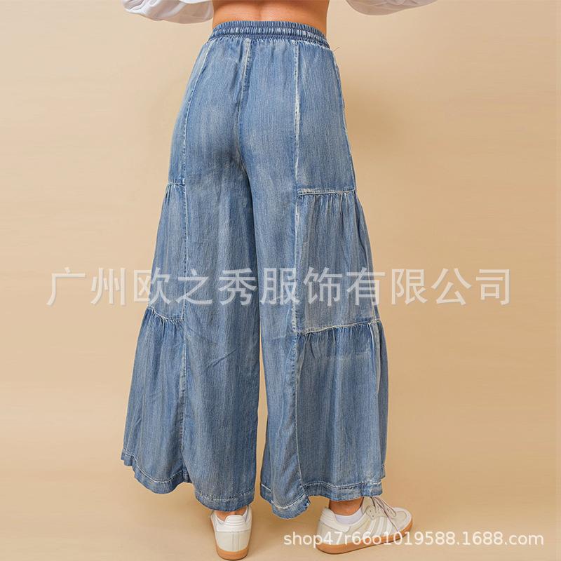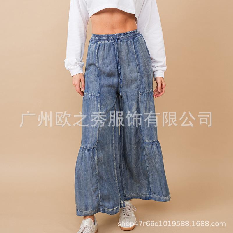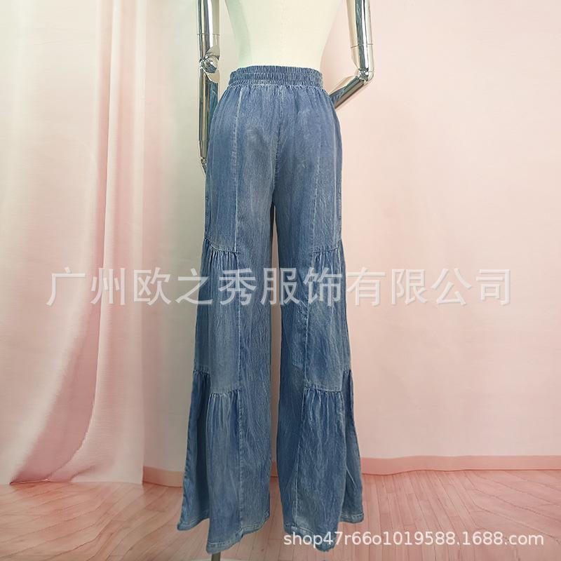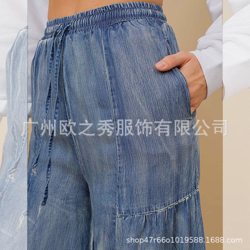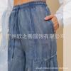 [Ou Zhixiu] Jeans de cintura media para mujer 2023 Nuevo pantalón recto casual holgado cintura elástica pantalones acampanados para mujer
