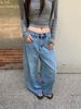 Blue, Washing process, pants will have uneven white spots and snowflake effect, please consider carefully before ordering