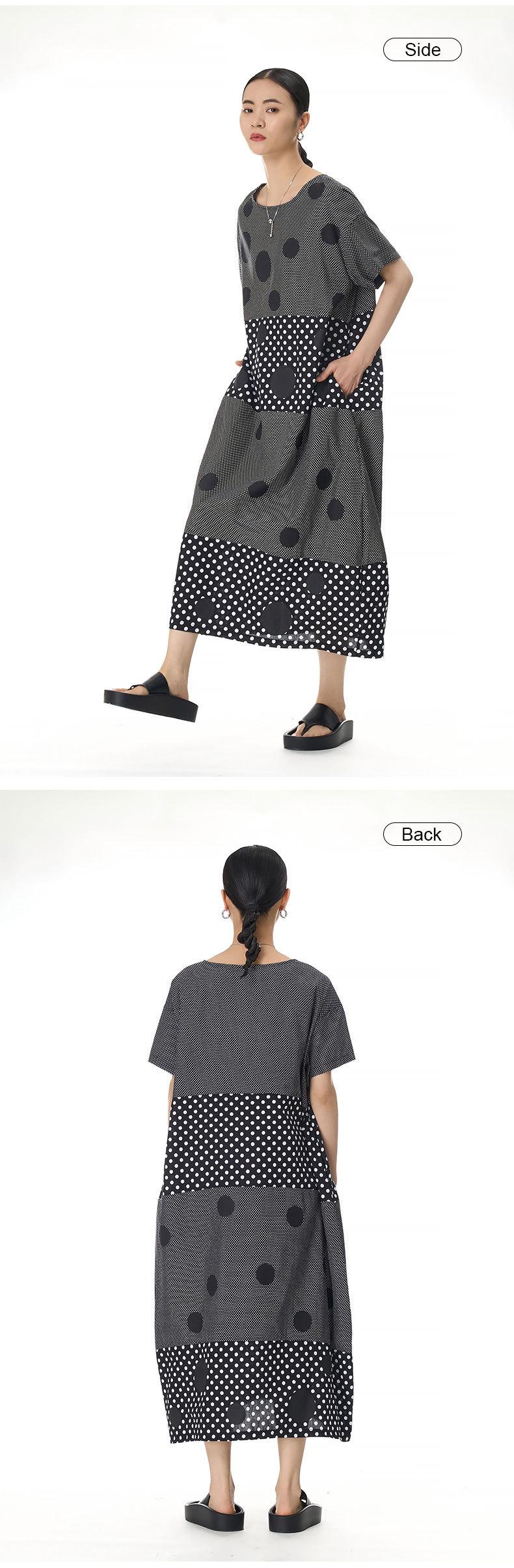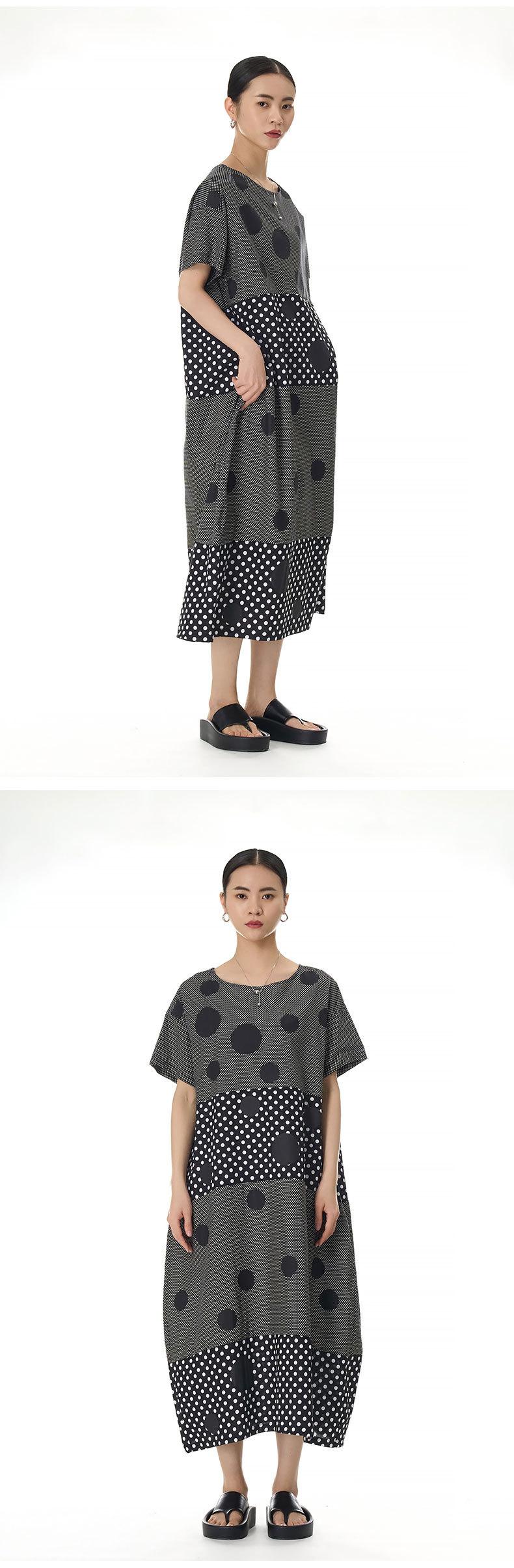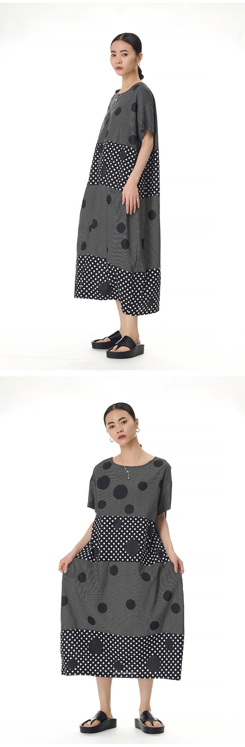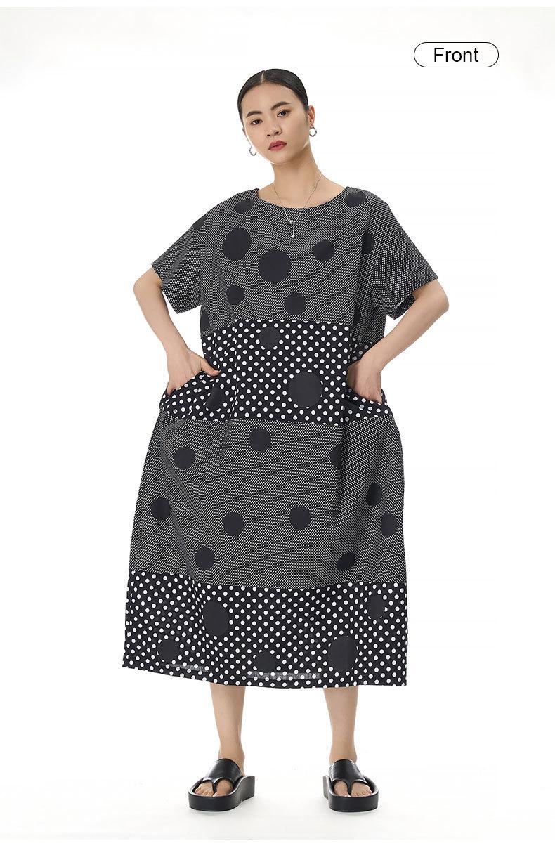 Vestido Estampado Patchwork de Lunares Polares Europeos y Americanos 2023 Verano Nuevo Talla Grande Ropa de Mujer Holgado Adelgazante Vestido Largo 68092