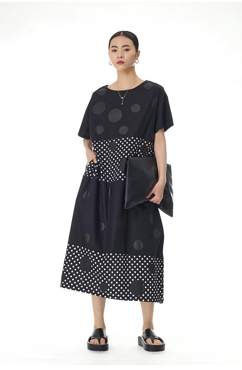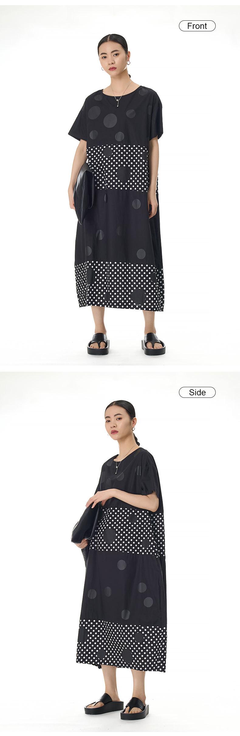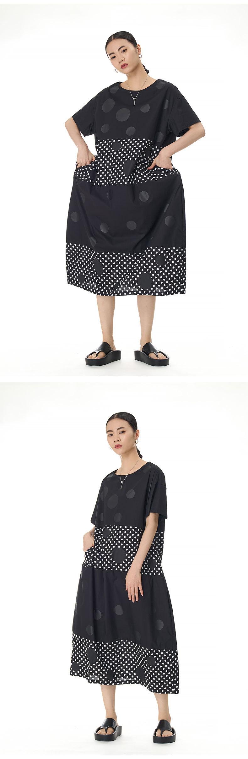 Vestido Estampado Patchwork de Lunares Polares Europeos y Americanos 2023 Verano Nuevo Talla Grande Ropa de Mujer Holgado Adelgazante Vestido Largo 68092