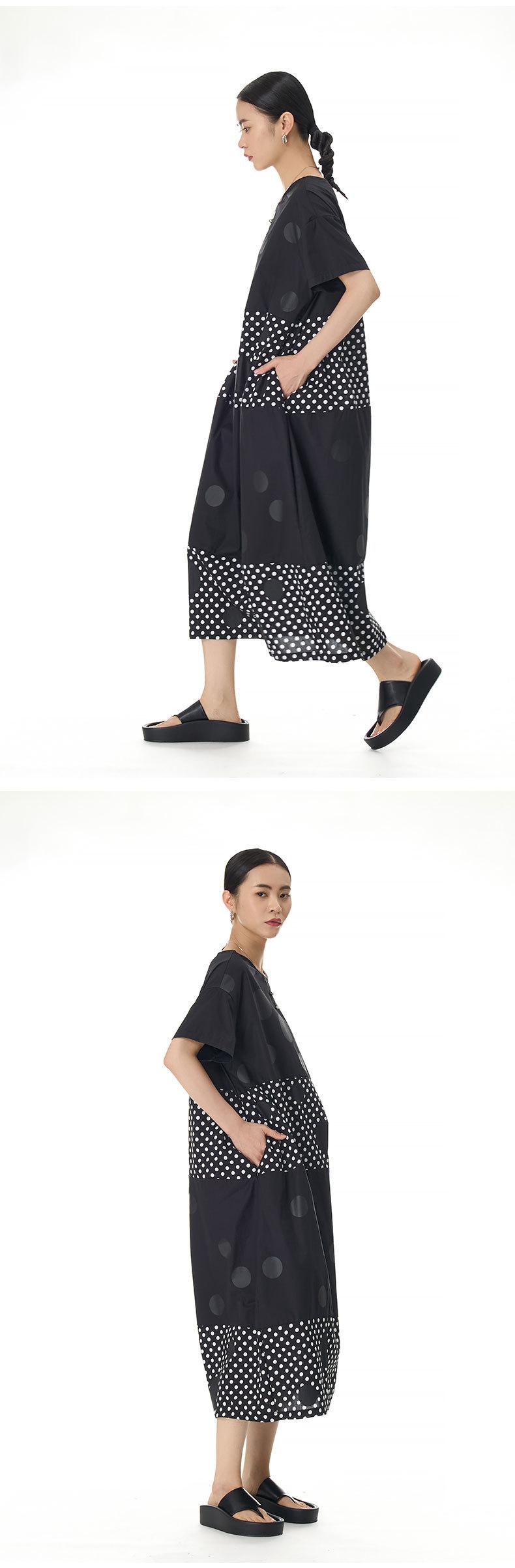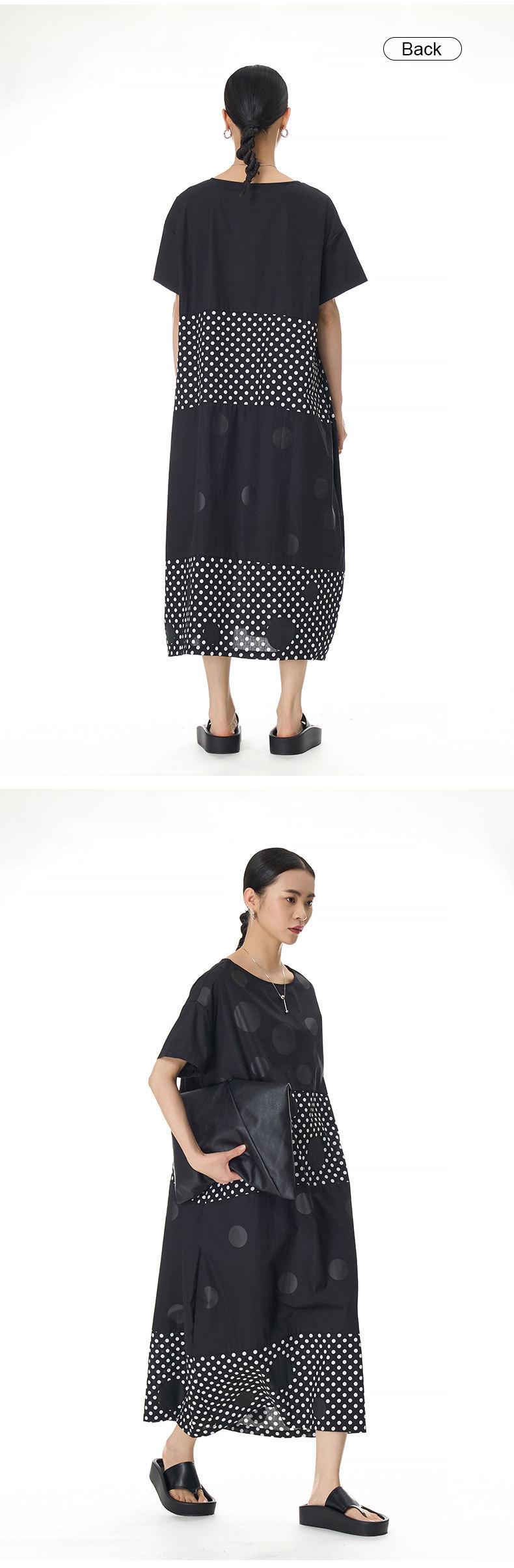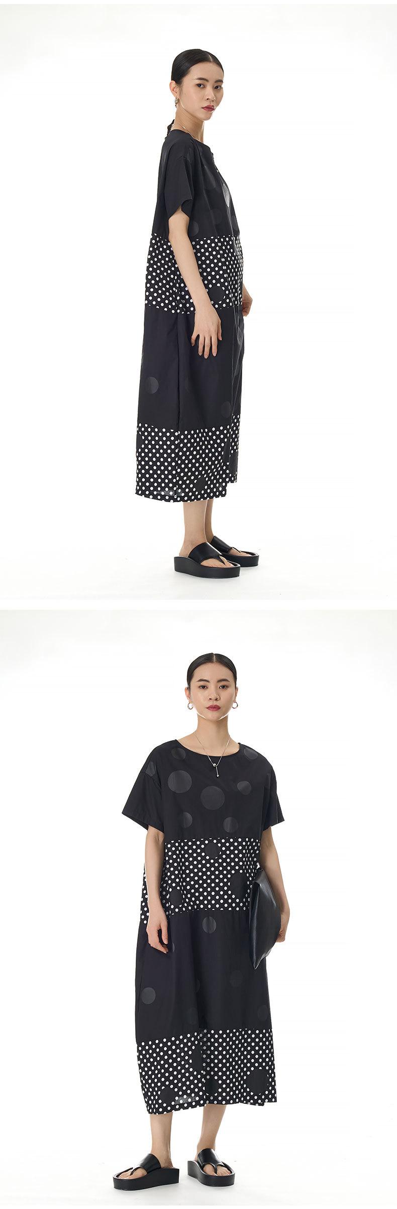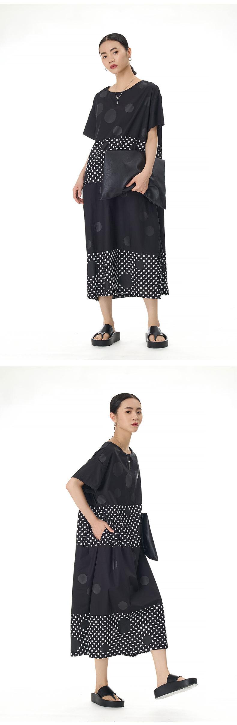 Vestido Estampado Patchwork de Lunares Polares Europeos y Americanos 2023 Verano Nuevo Talla Grande Ropa de Mujer Holgado Adelgazante Vestido Largo 68092