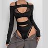 Ropa de Mujer Nueva de Otoño 2022 Europea y Americana Transfronteriza Ins Moda Sexy Sexy Profundo V Slim Ajustado Mono de Manga Larga