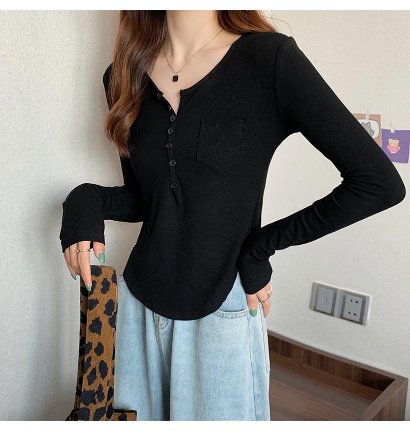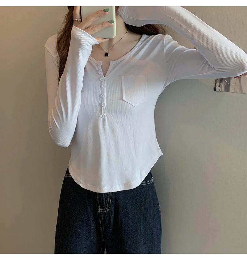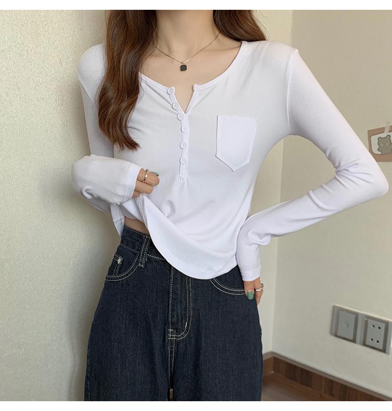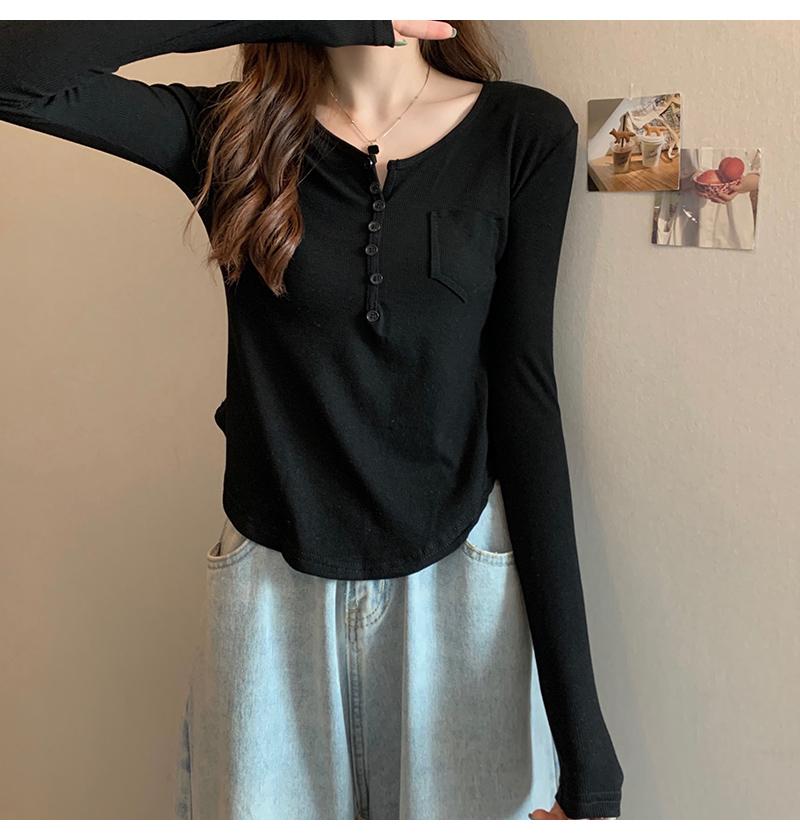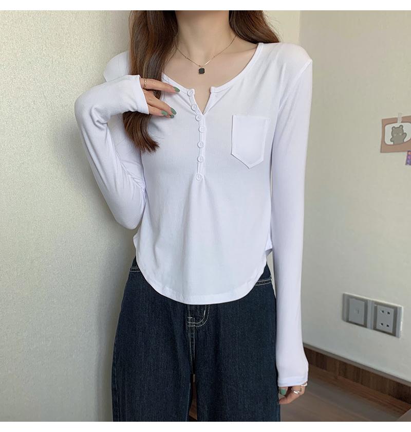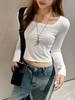 Camiseta de manga larga estilo americano con diseño retro, estilo chic y corto para mujer, estilo Spice Girl, de principios de otoño, nueva camiseta ajustada y adelgazante.