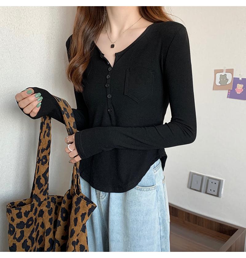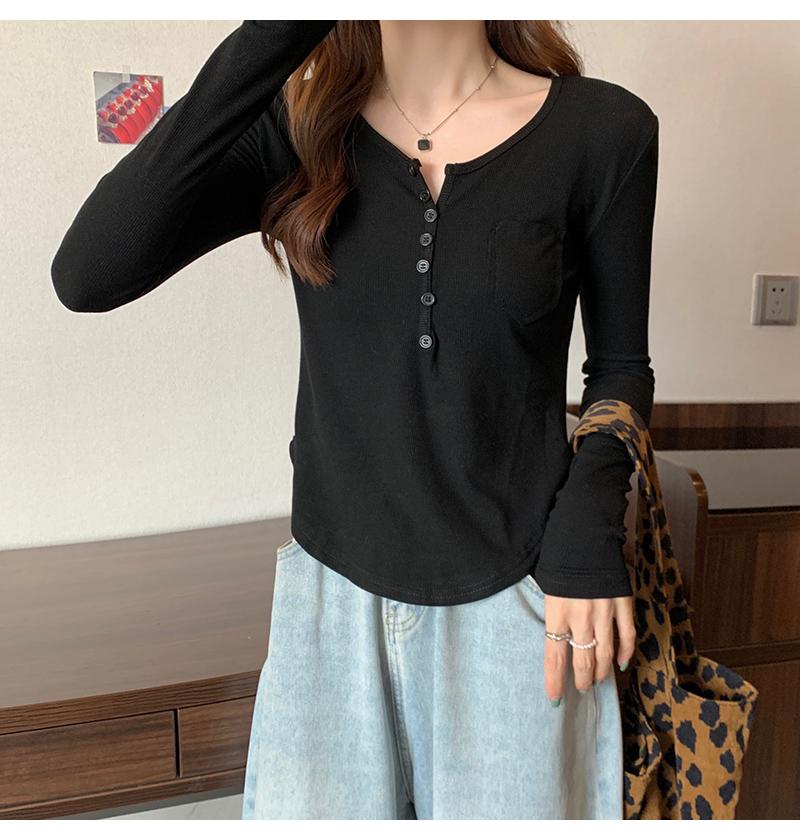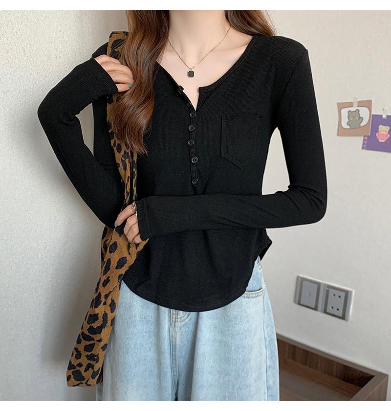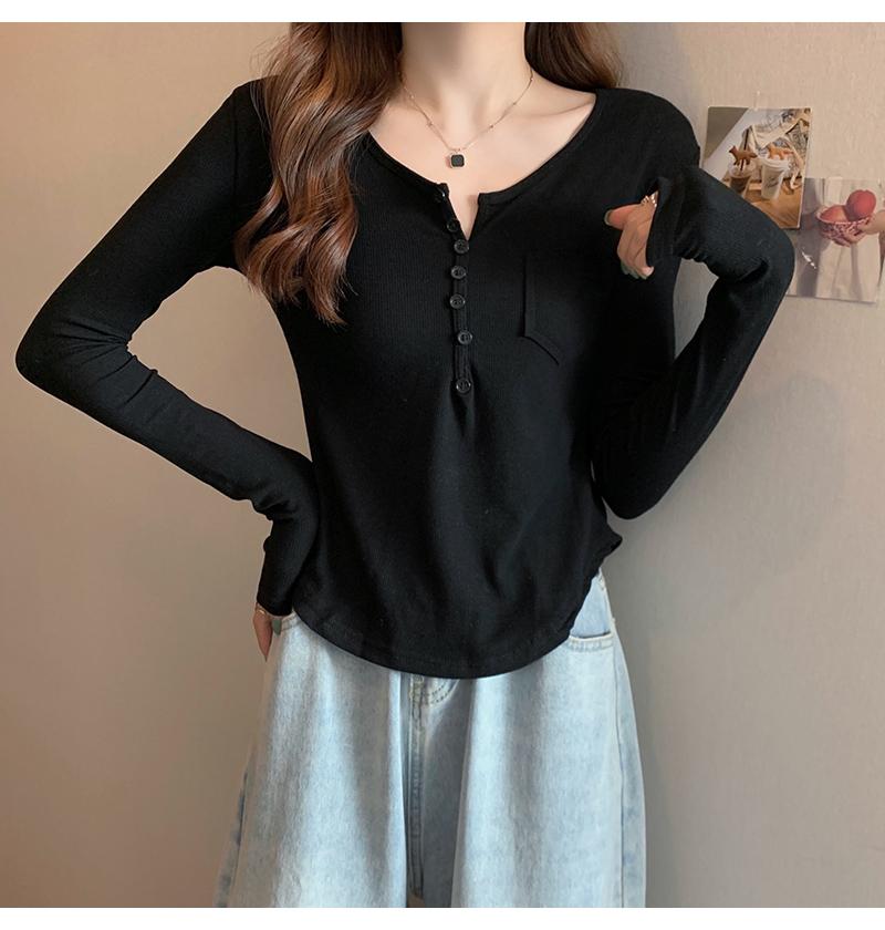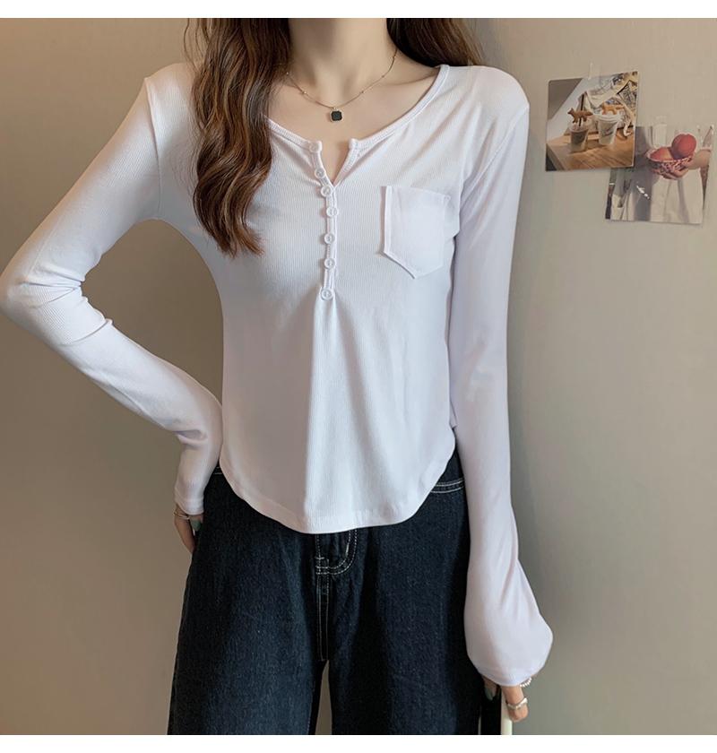Camiseta de manga larga estilo americano con diseño retro, estilo chic y corto para mujer, estilo Spice Girl, de principios de otoño, nueva camiseta ajustada y adelgazante.