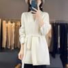 Suéter de Mujer Otoño e Invierno 2025 Cárdigan de Terciopelo de Visón Blanco Suelto Talla Grande Grueso Largo Medio Estilo Relajado Chaqueta de Punto