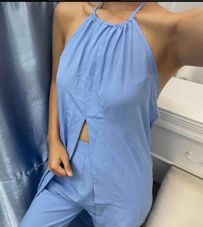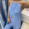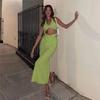 Conjunto de vestido holgado con abertura y pantalones de cintura alta, estilo europeo y americano, verano 2023, sin mangas, cuello sexy, espalda descubierta