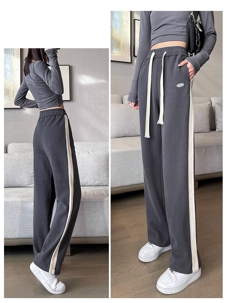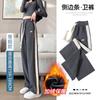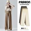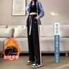 Pantalones de pierna ancha para mujeres embarazadas, ropa de otoño e invierno para mujer, cintura alta con soporte para el vientre, gruesos y cálidos con forro polar, talla grande, ropa de maternidad ajustable