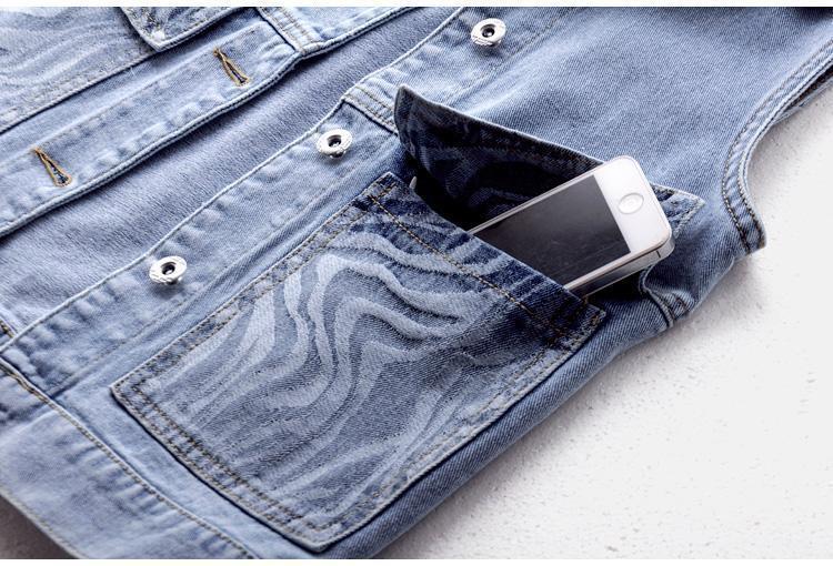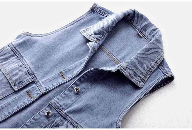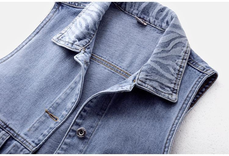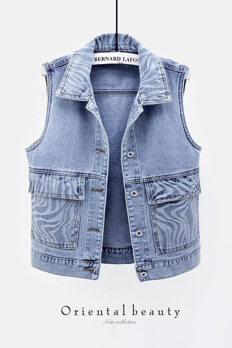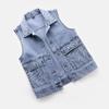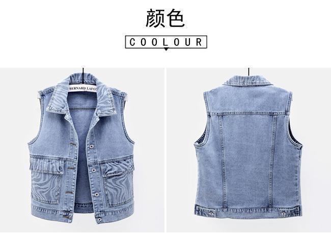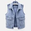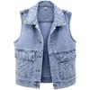 Chaleco vaquero de otoño nuevo para mujer, estilo coreano, versátil, con patrón de costura corta, chaqueta de bolsillo grande, chaleco de moda