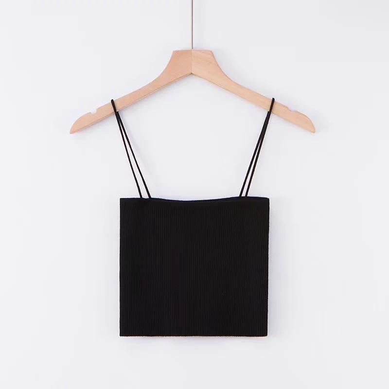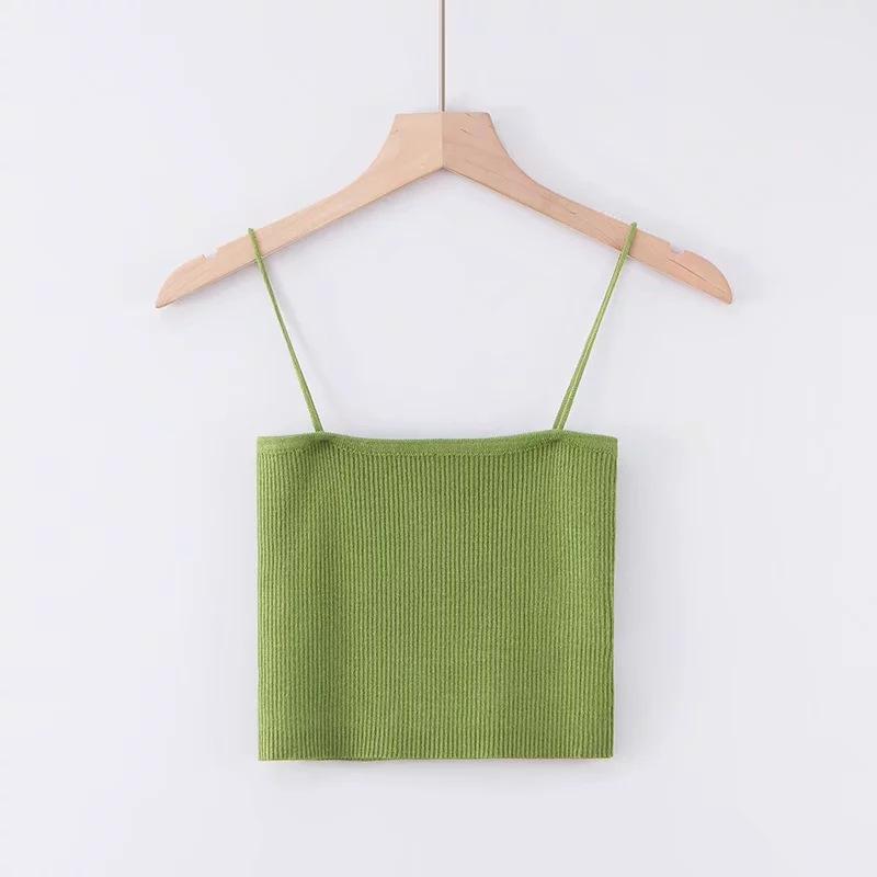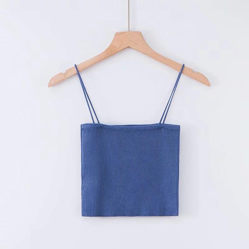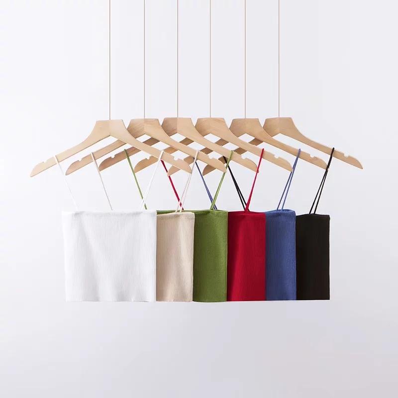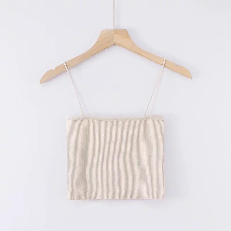 Chaleco de punto sexy sin tirantes para mujer europea y americana, prenda exterior de verano para mujer, escote tipo tirantes pequeño y cuello de un solo carácter.