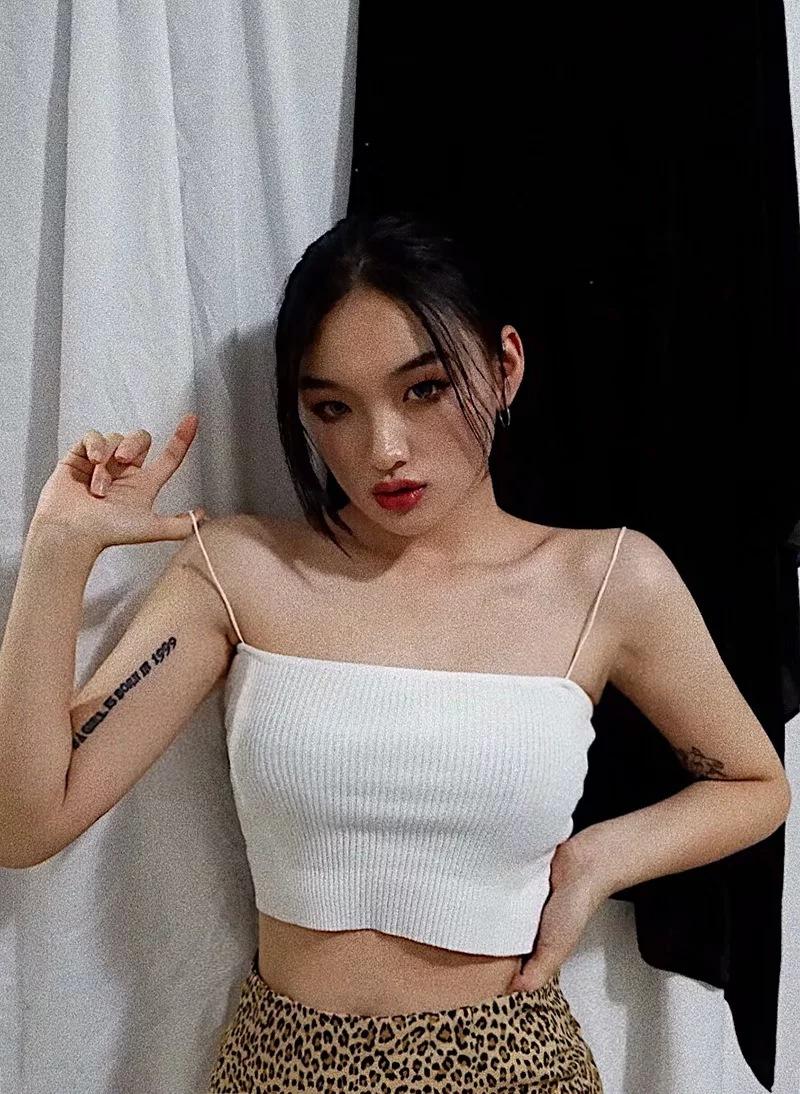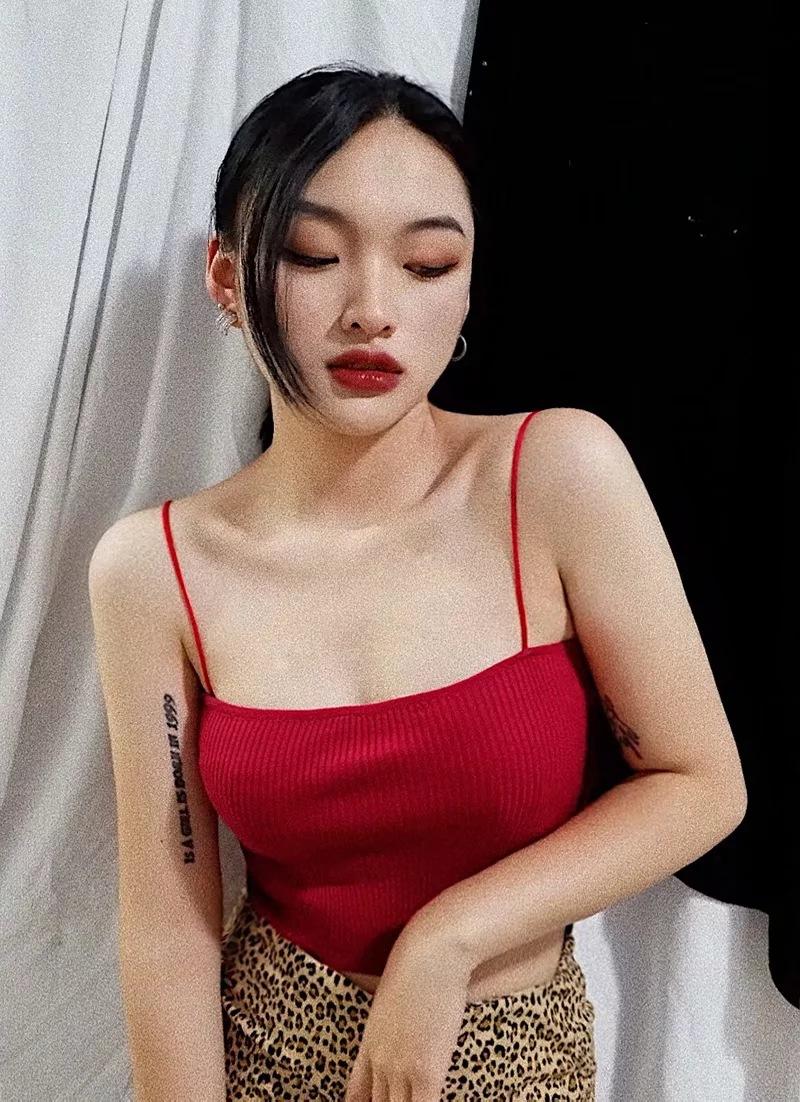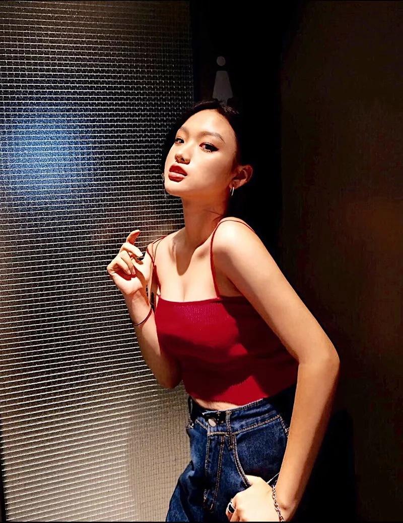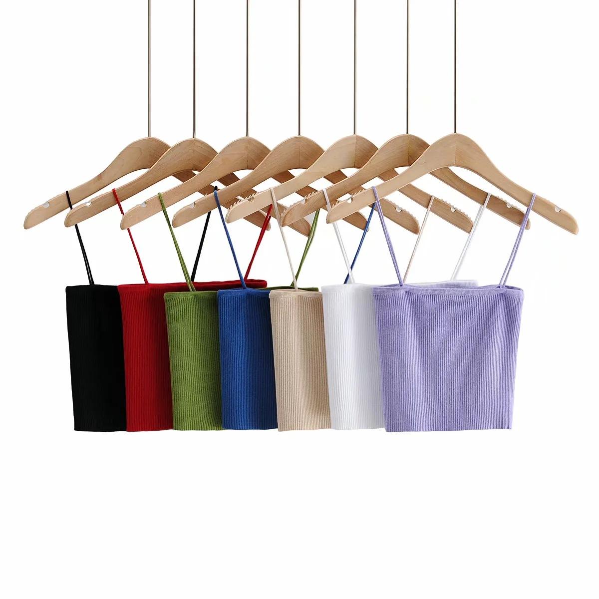 Chaleco de punto sexy sin tirantes para mujer europea y americana, prenda exterior de verano para mujer, escote tipo tirantes pequeño y cuello de un solo carácter.