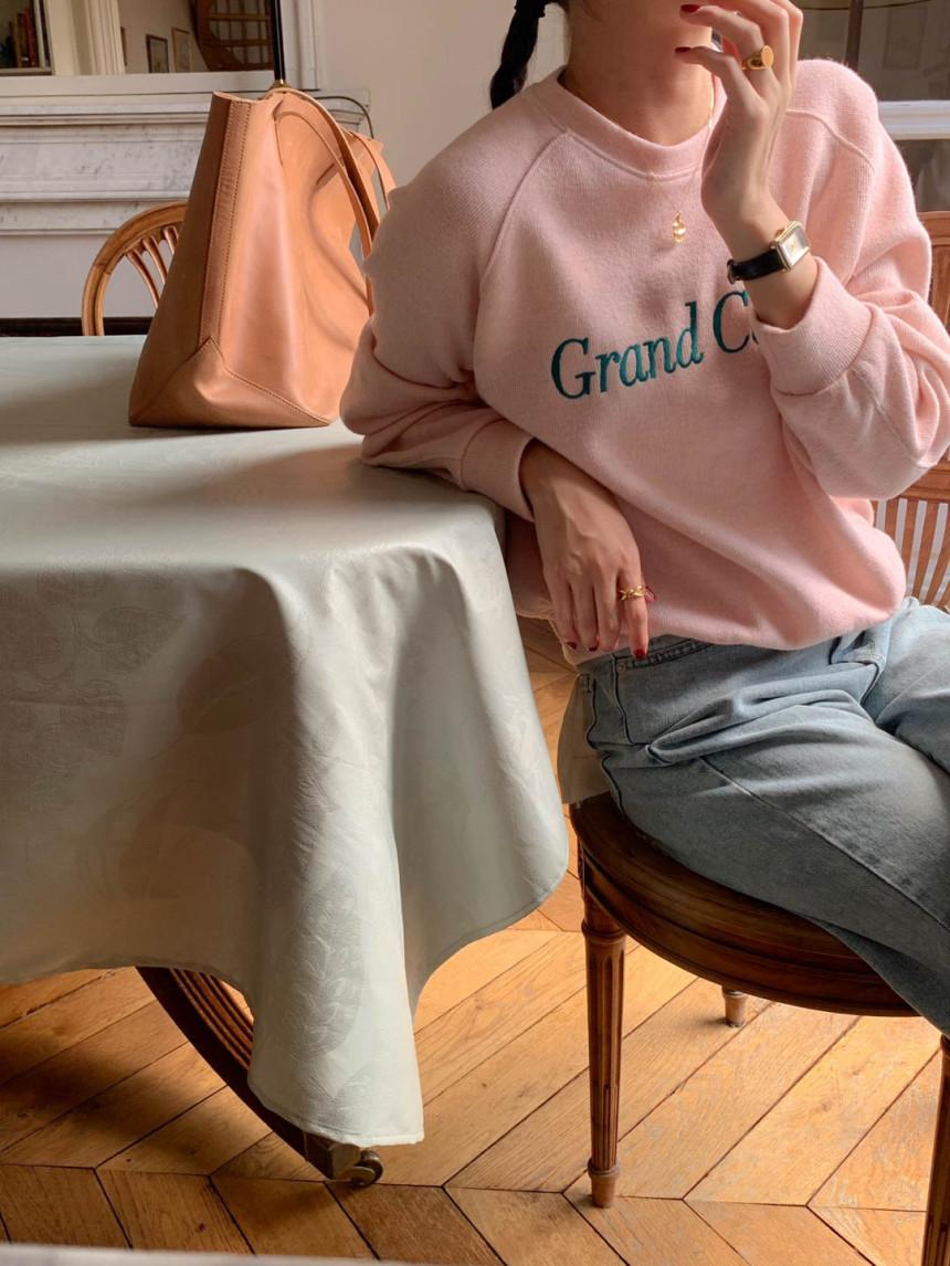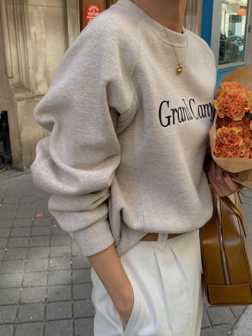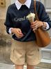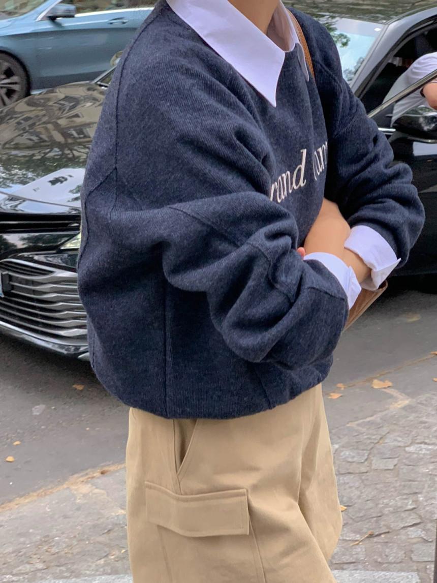 Chic Coreano Otoño e Invierno Nuevo Cuello Redondo Letra Bordado Versátil Casual Sudaderas Tops Sueltas de Mujer
