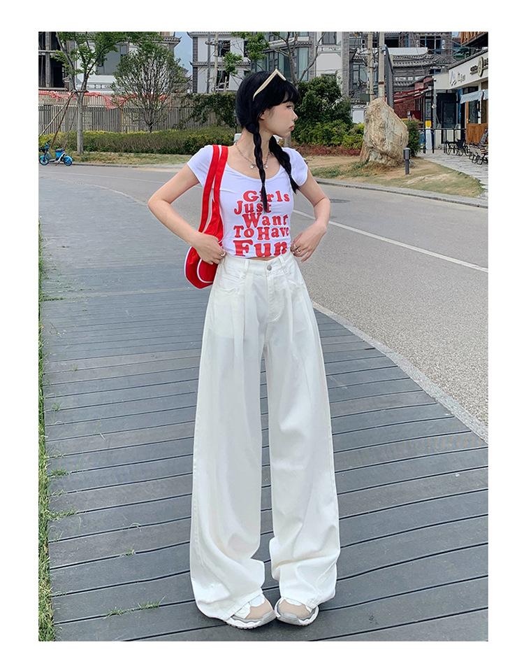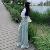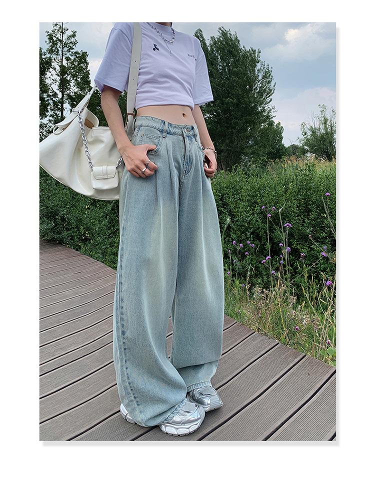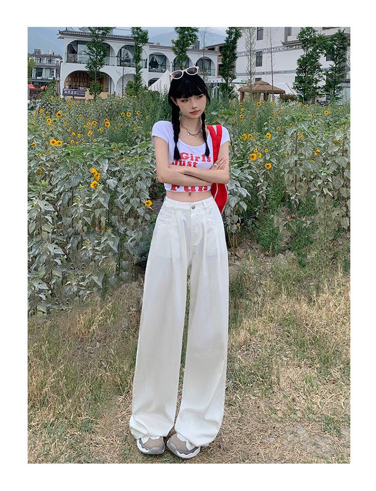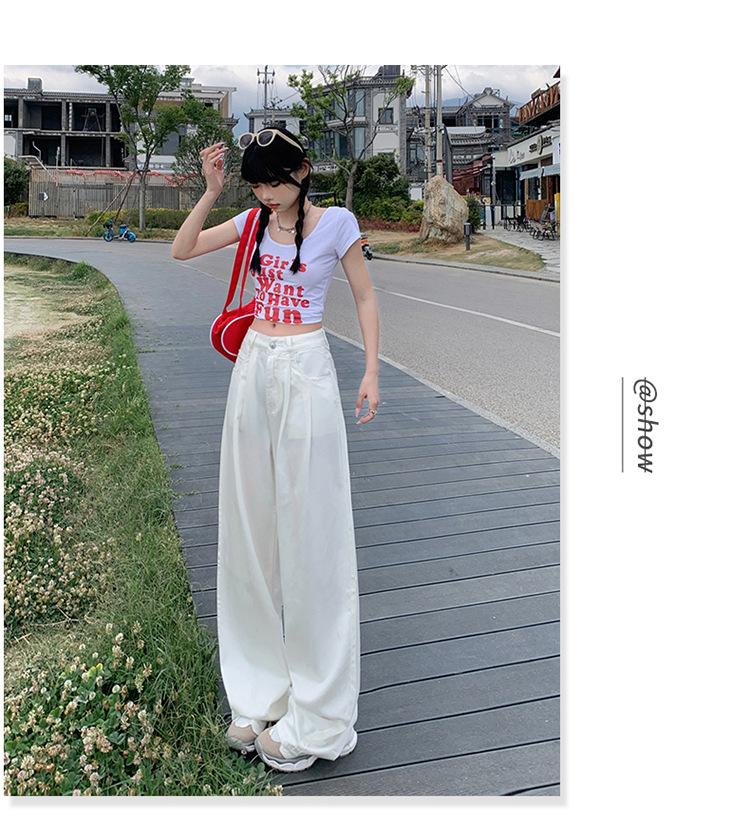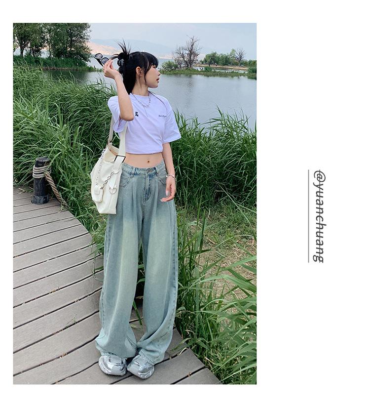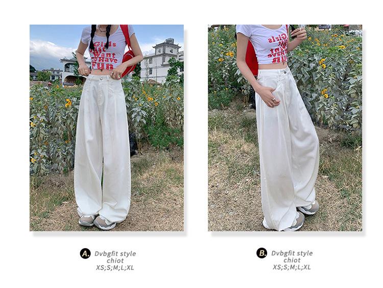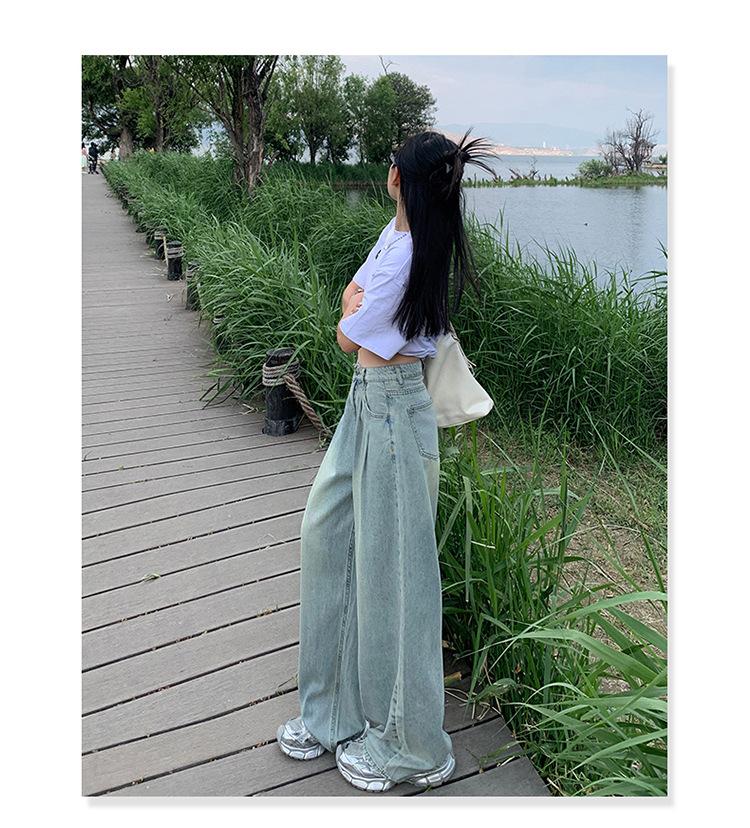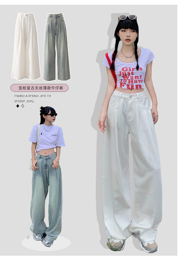 Pantalones vaqueros de pierna ancha informales, transpirables, finos y de verano de Tencel, de estilo infantil, de cintura alta, holgados y adelgazantes para mujer