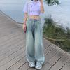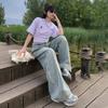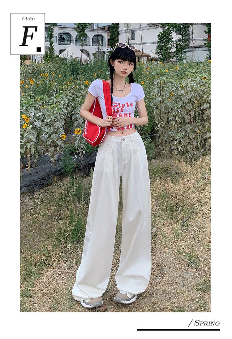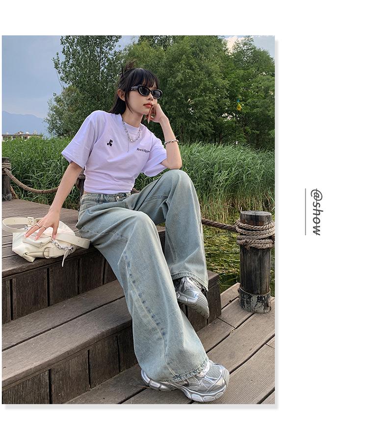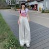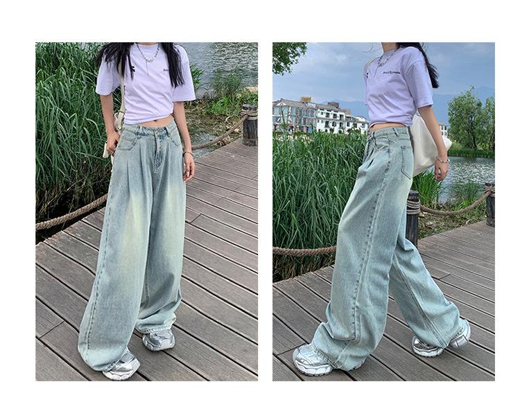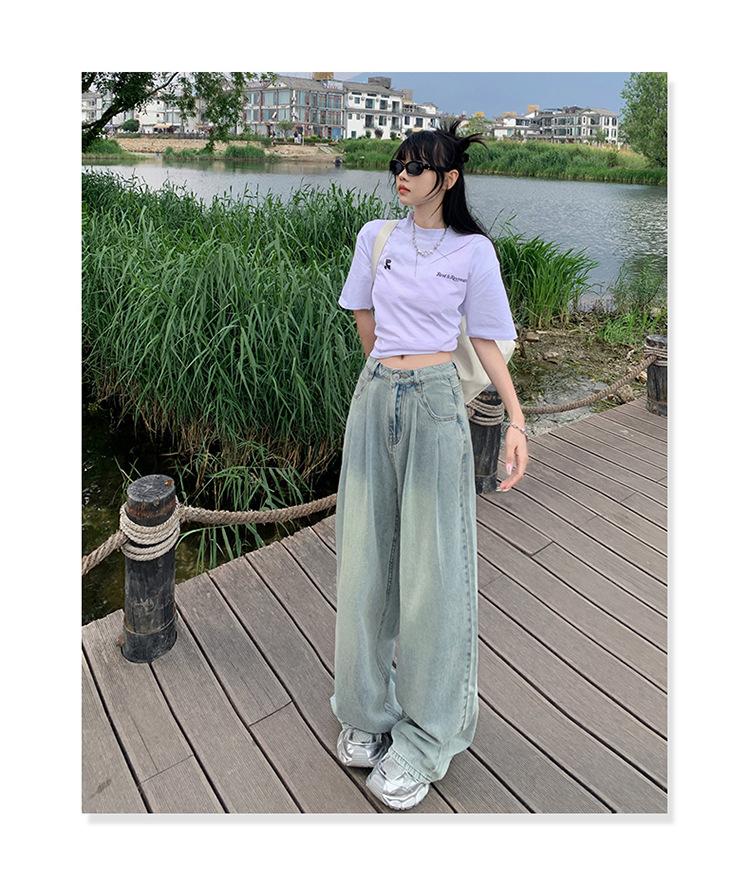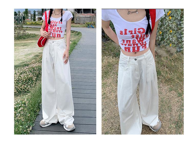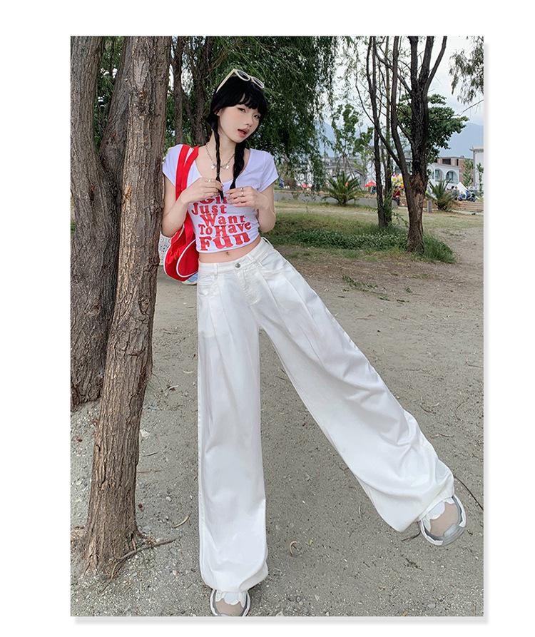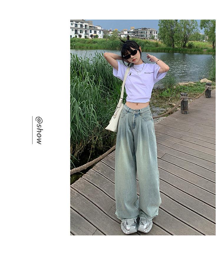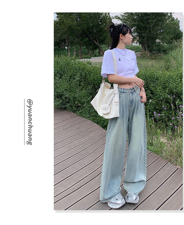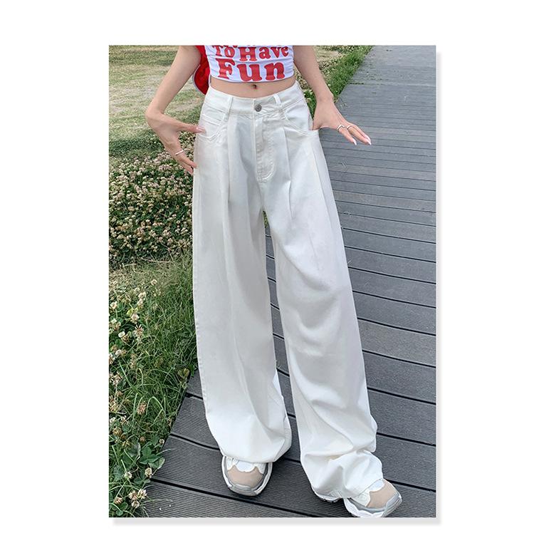 Pantalones vaqueros de pierna ancha informales, transpirables, finos y de verano de Tencel, de estilo infantil, de cintura alta, holgados y adelgazantes para mujer
