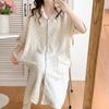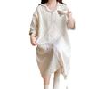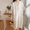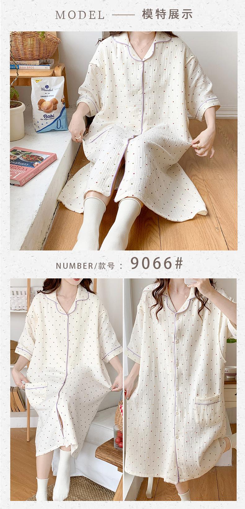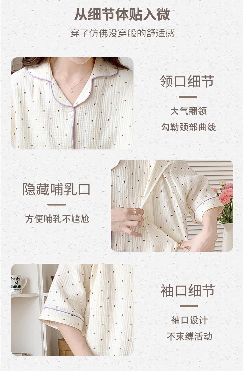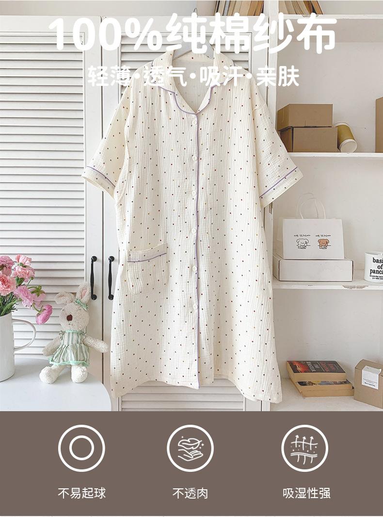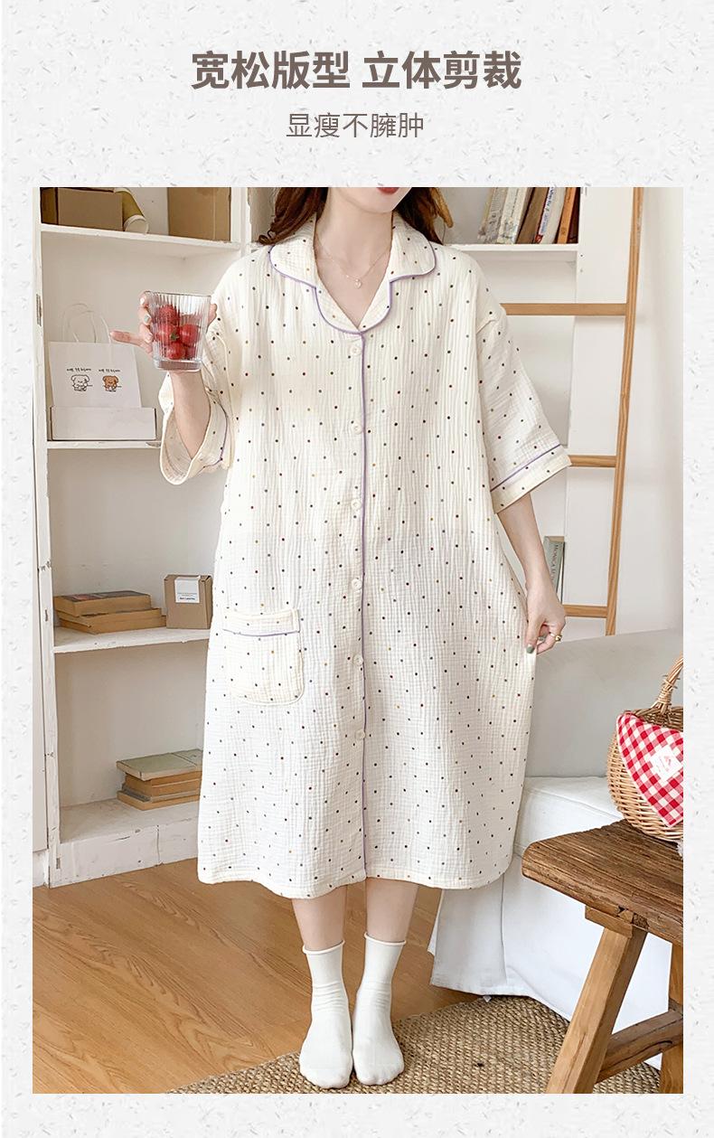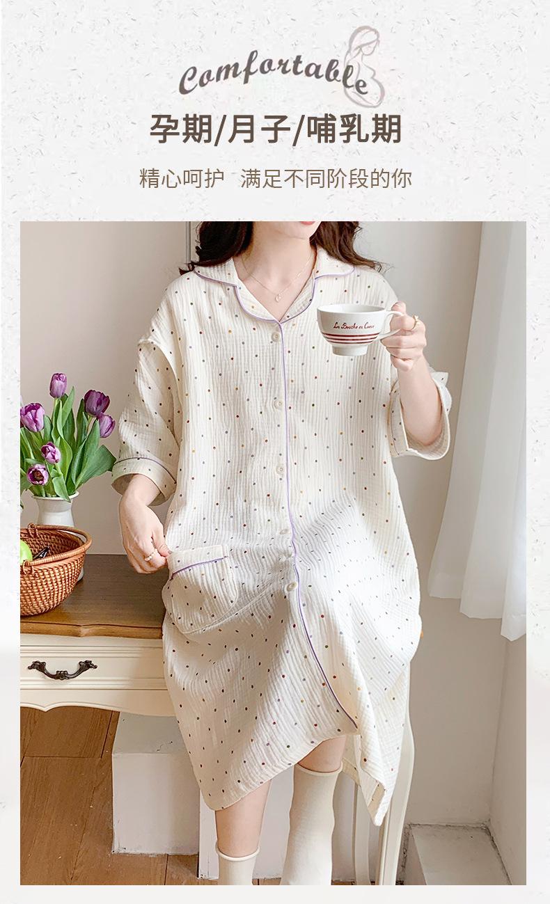 Vestido Luna de Algodón de Verano de Manga Corta Gasa Crepé Doble Capa Vestido para Mujeres Embarazadas Postparto Falda para Casa Lactancia