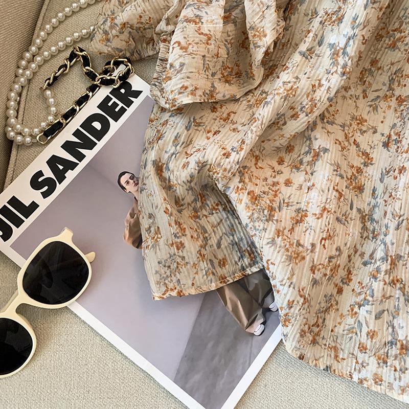 Foto real 3308# verano 2023 nuevo estilo francés reductor de edad retro cuello cuadrado mangas abullonadas sudadera dulce