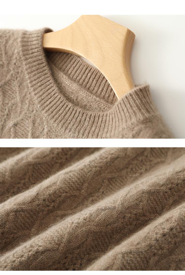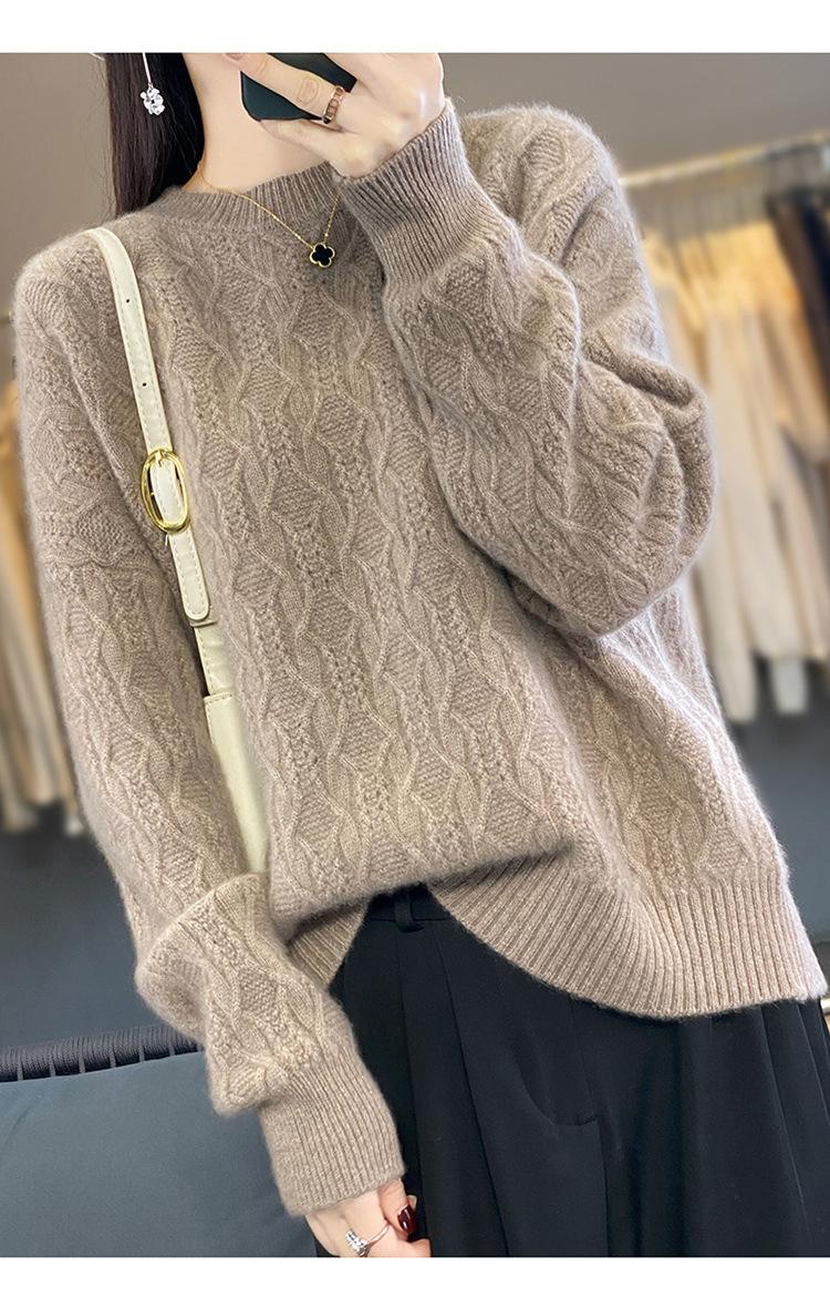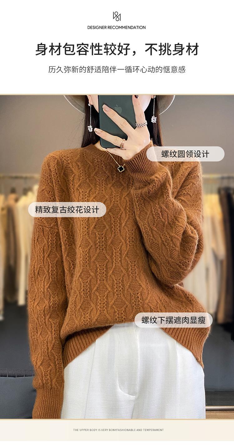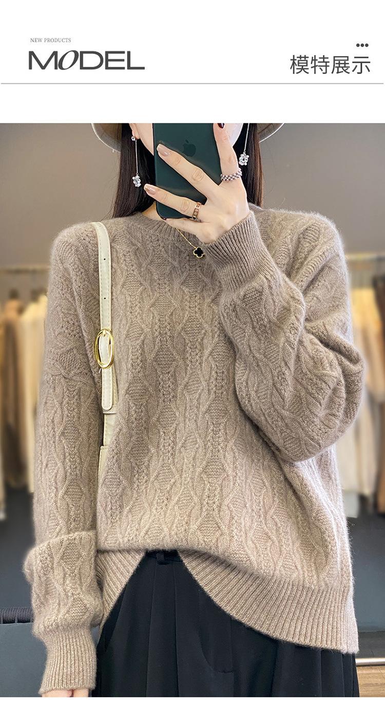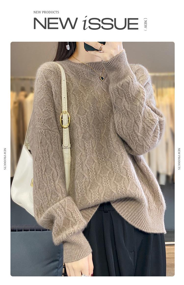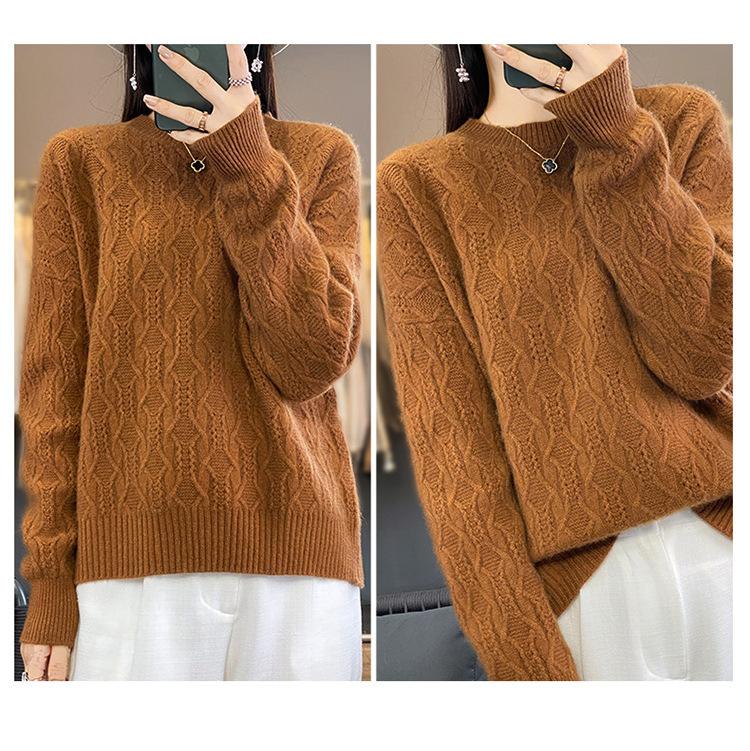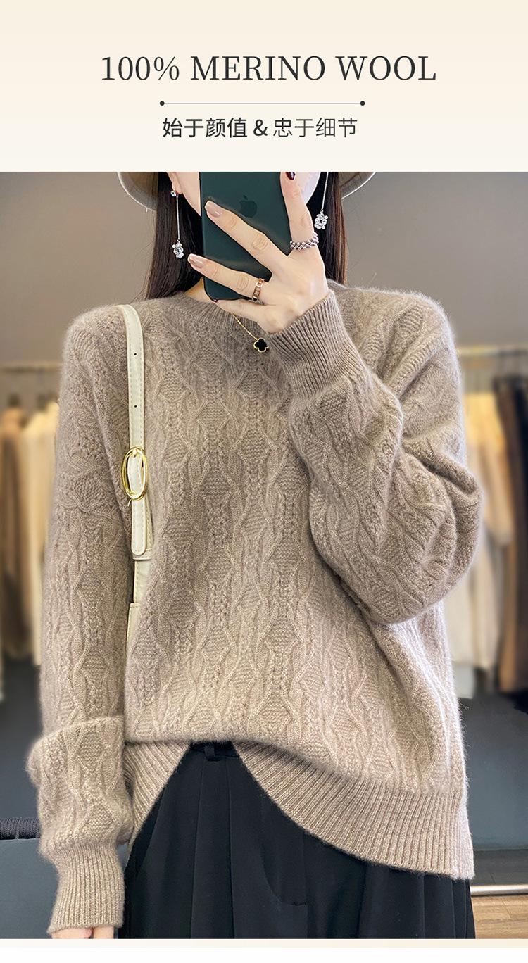 2025 Otoño e Invierno Nuevo Suéter de Lana de Cuello Redondo para Mujer Suéter de Punto para Fondo Nuevo Suéter Grueso con Trenzas y Aberturas