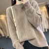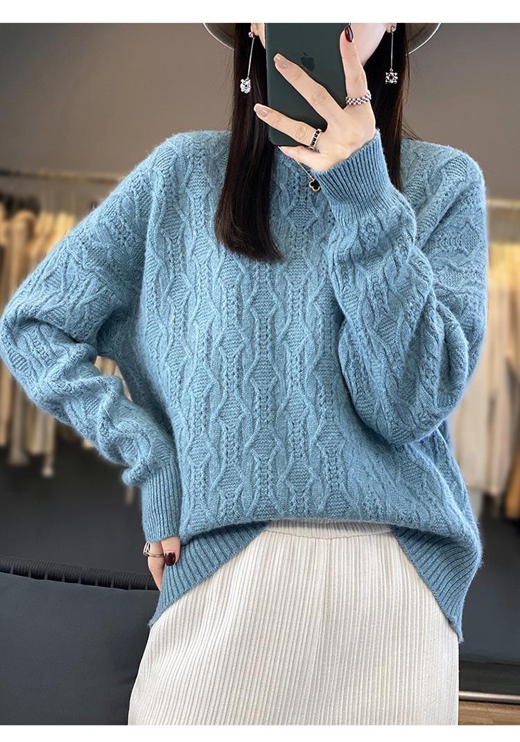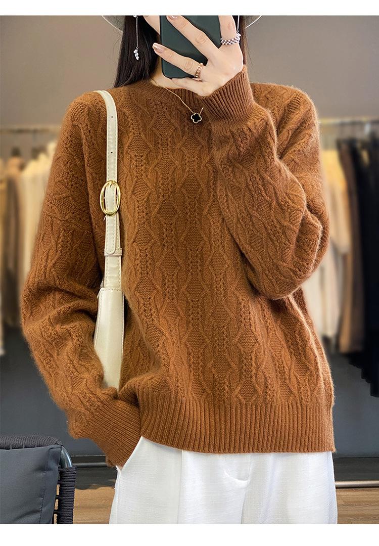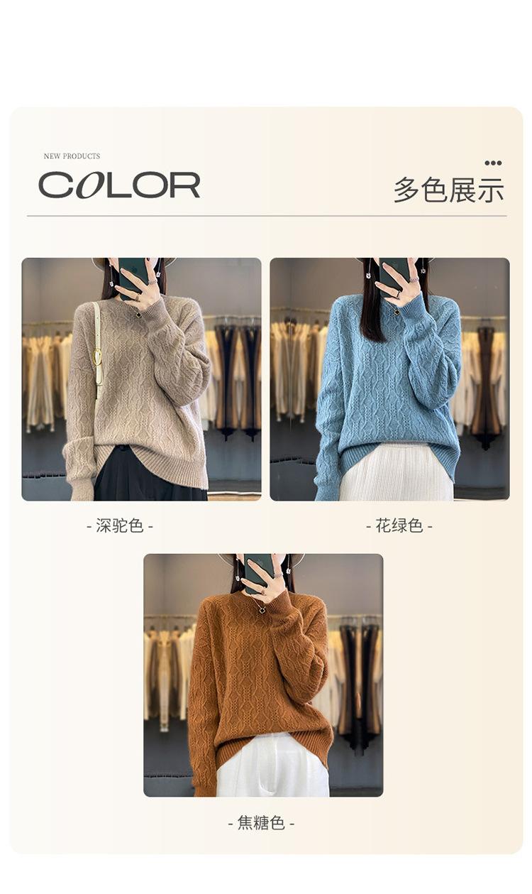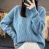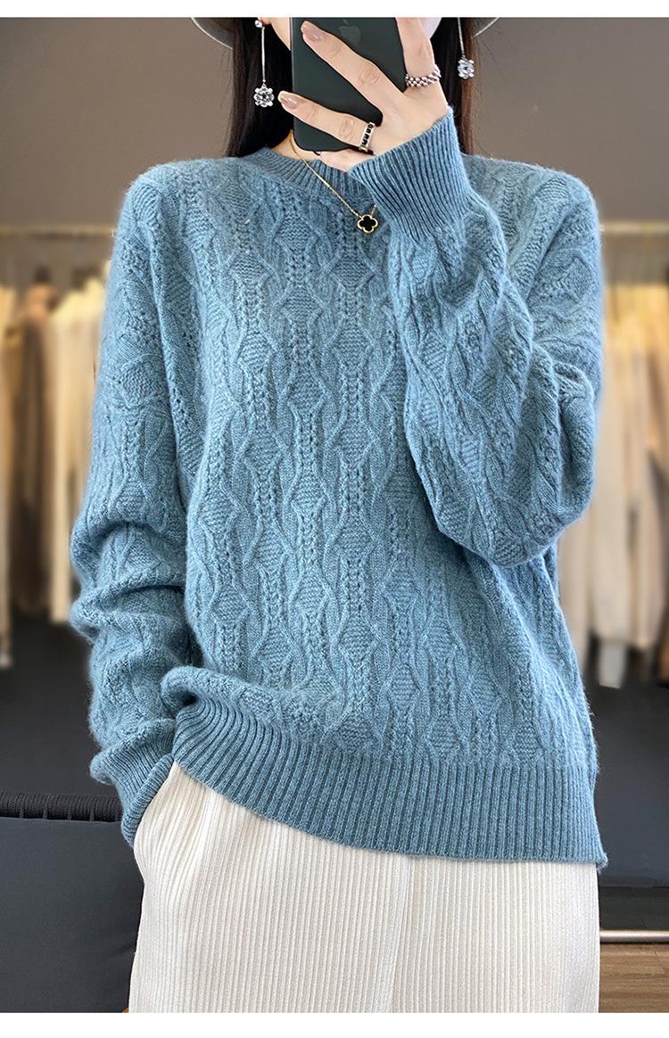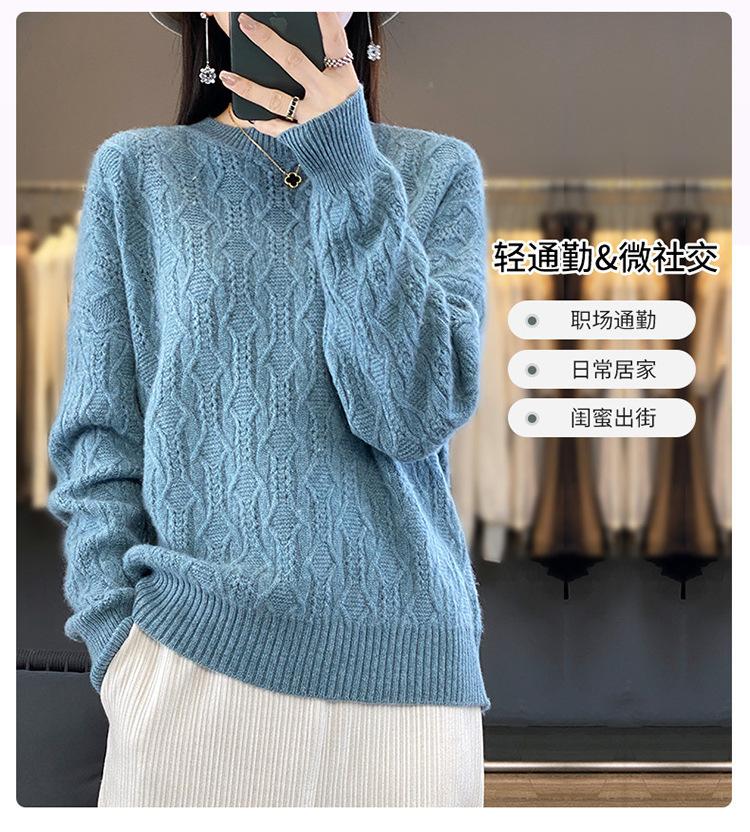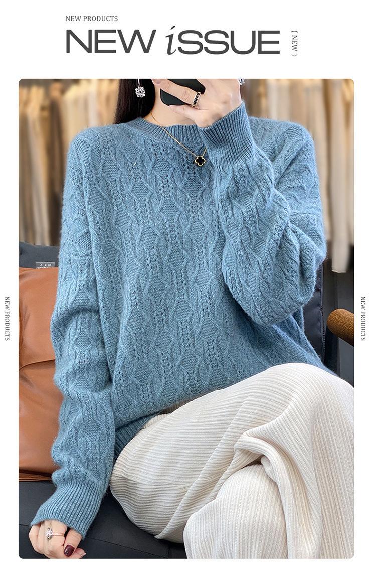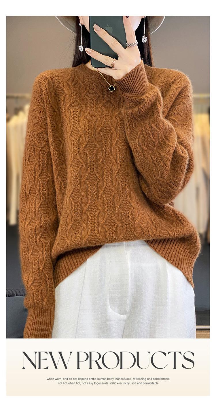2025 Otoño e Invierno Nuevo Suéter de Lana de Cuello Redondo para Mujer Suéter de Punto para Fondo Nuevo Suéter Grueso con Trenzas y Aberturas