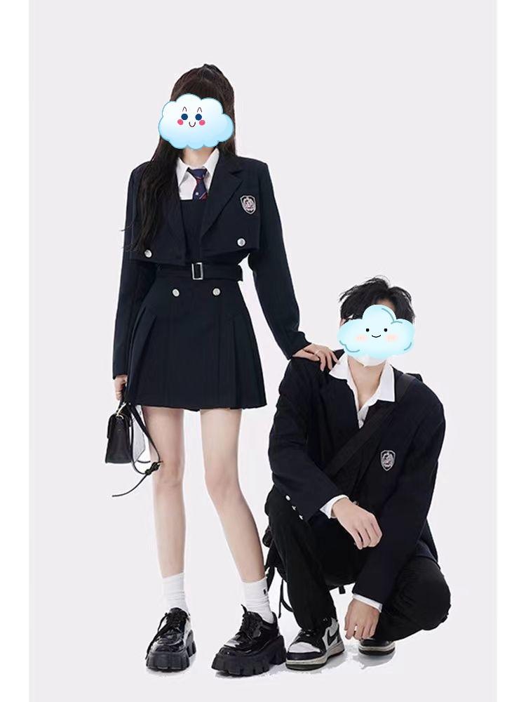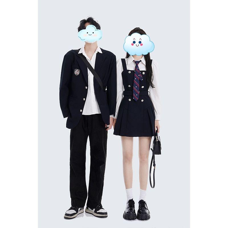 Blazer Estilo Universitario para Mujer Primavera y Otoño Traje Corto Falda con Tirantes Traje de Moda de Dos Piezas
